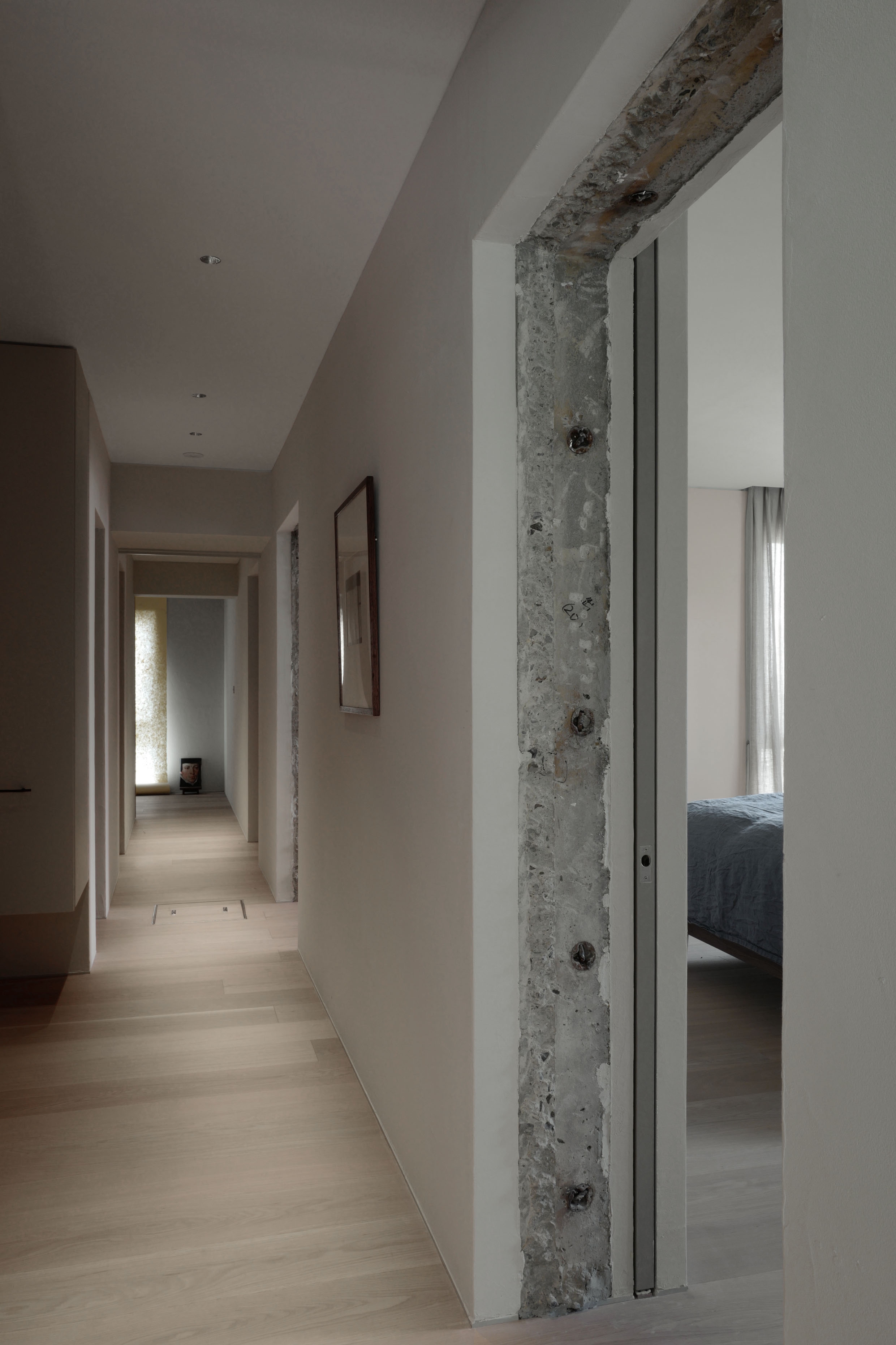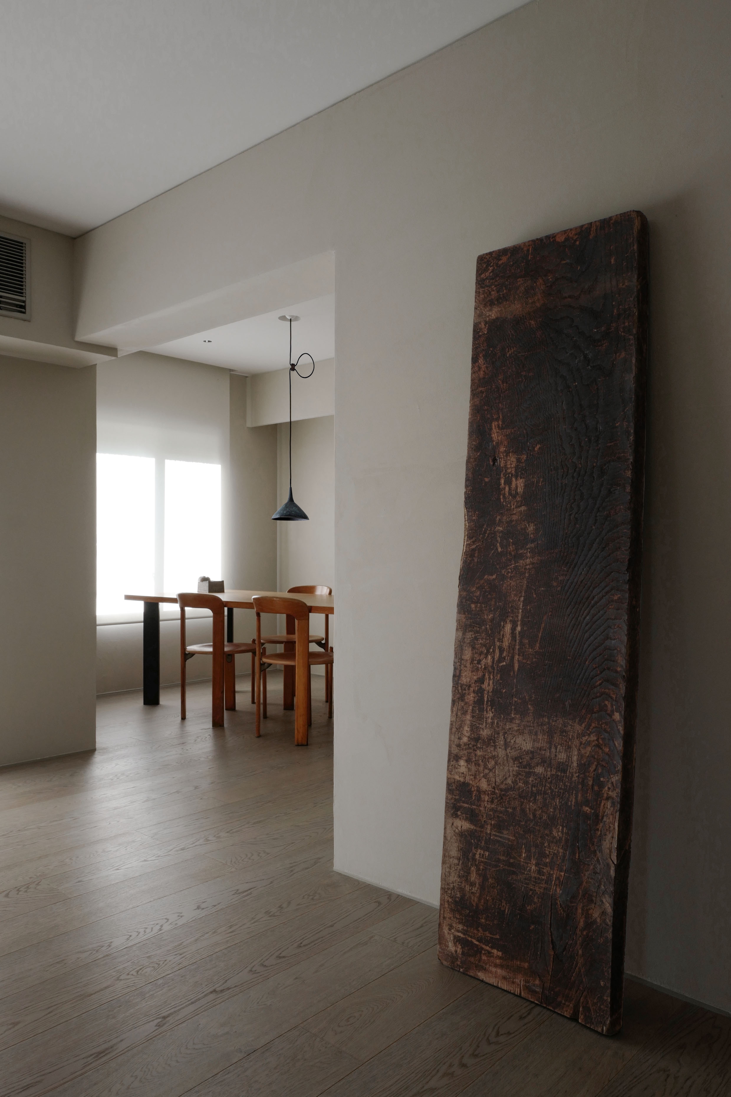 A house for couples who have completely renovated a room in a condominium in Tokyo as a skeleton. Art is a part of our daily lives, and we proceeded with the design based on the concept of "metabolism" from the lifestyle of the owner who desires a lifestyle that changes every day. As a symbol of that idea, in the center of this dwelling, there was no furniture and a room called a "gallery" for decorating art. By placing this "gallery" in the center, I tried a design that leaves room for change in a house that tends to be fixed. Here, instead of decorating the finished space with art, the art work was taken as the finish of the interior. In other words, what is the base and what is the finish? As a result of noticing the ambiguity and thinking about furniture, interior decoration, architecture, and the actions taken there, the opening came to a design that reveals the thickness required for the wall.