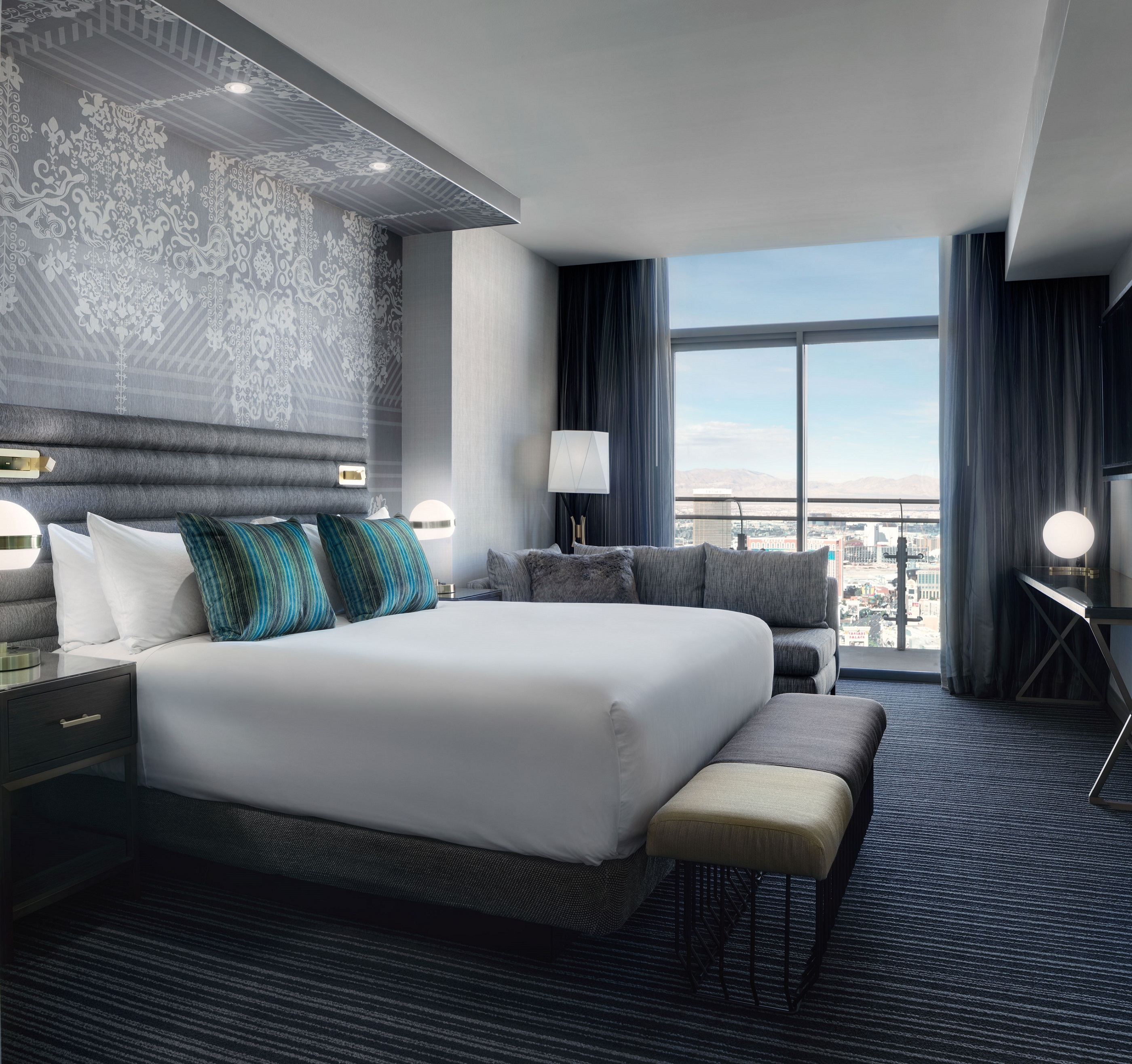 Our concept was a take on The Cosmopolitan of Las Vegas's slogan, "Just the Right Amount of Wrong." The goal was to re-energize and set the hotel apart from all others on the Vegas Strip while keeping its mystique. We wanted to introduce playful elements that straddled the fine line between too little and too much, pushing the envelope but only just so.
