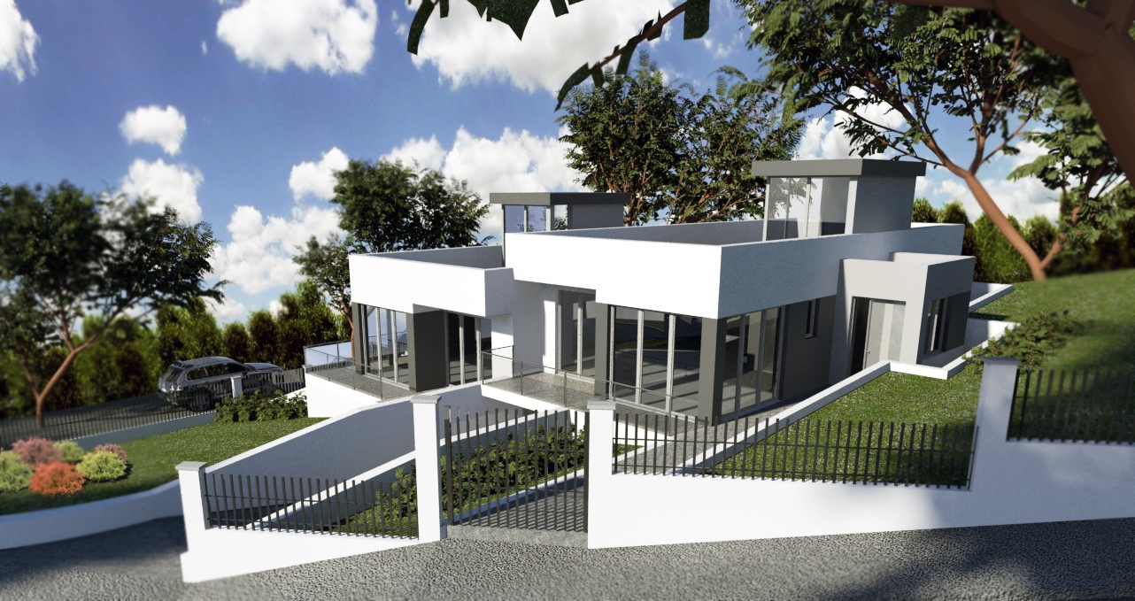 Both apartment has a bulkhead, as the acces to the flat roof terrace, and garage underground. The walls has build from ceramic block and insulation from polystirol and dryvit finishing, the slub ceramic beams and blocks