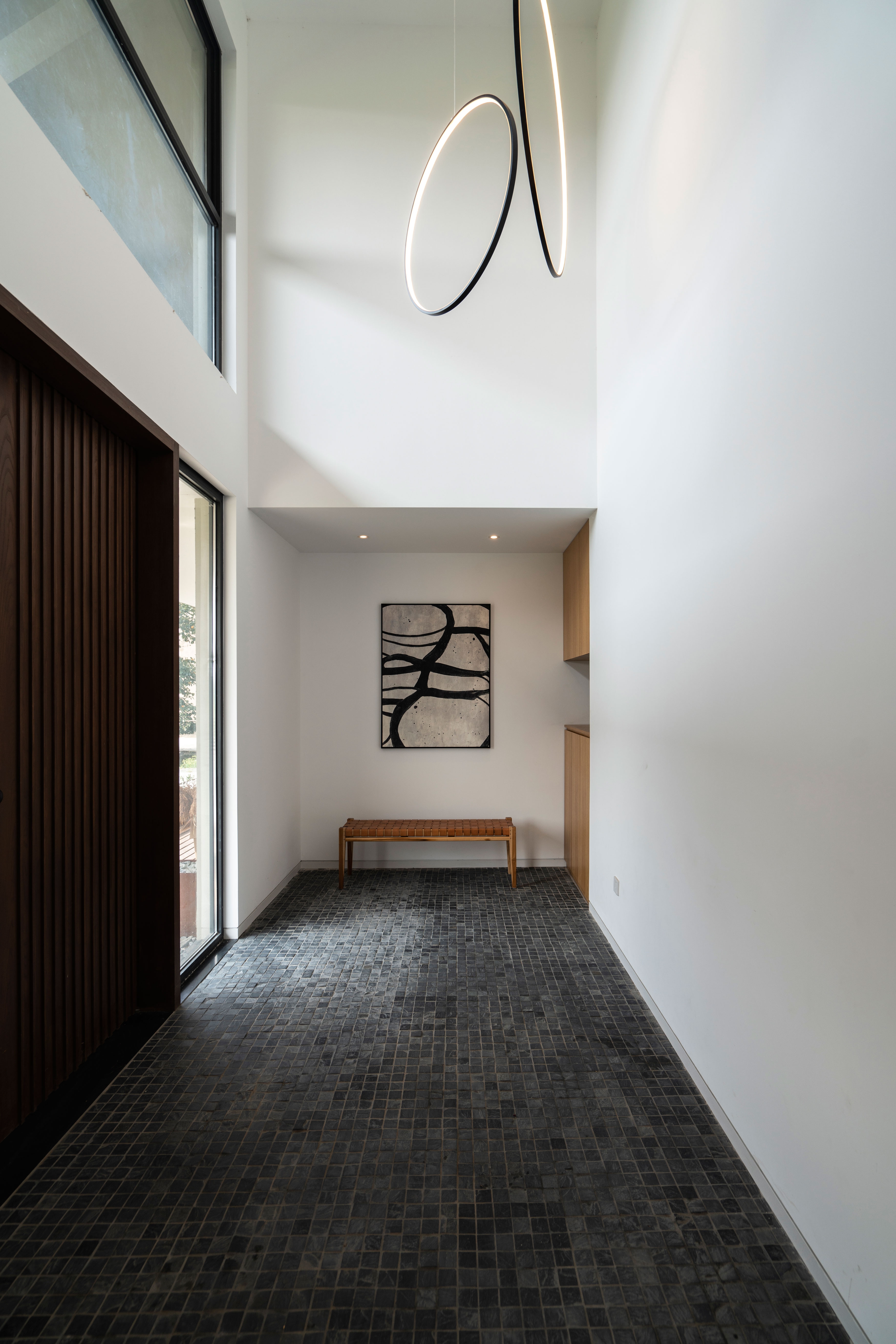 House G is located in a village two hours away from Shanghai. The village has a set of rigid regulations governing the design of the house in terms of areas, height, etc. Local customs such as cultural traditions and building methodologies form another layer of constraints. The two sets of "rules" define the current domestic vernacular landscape in the rural areas of Southern China. As a response to these constraints, the house adopted a form that elegantly and humbly exists in the surrounding as opposed to be an icon imposed onto the landscape.