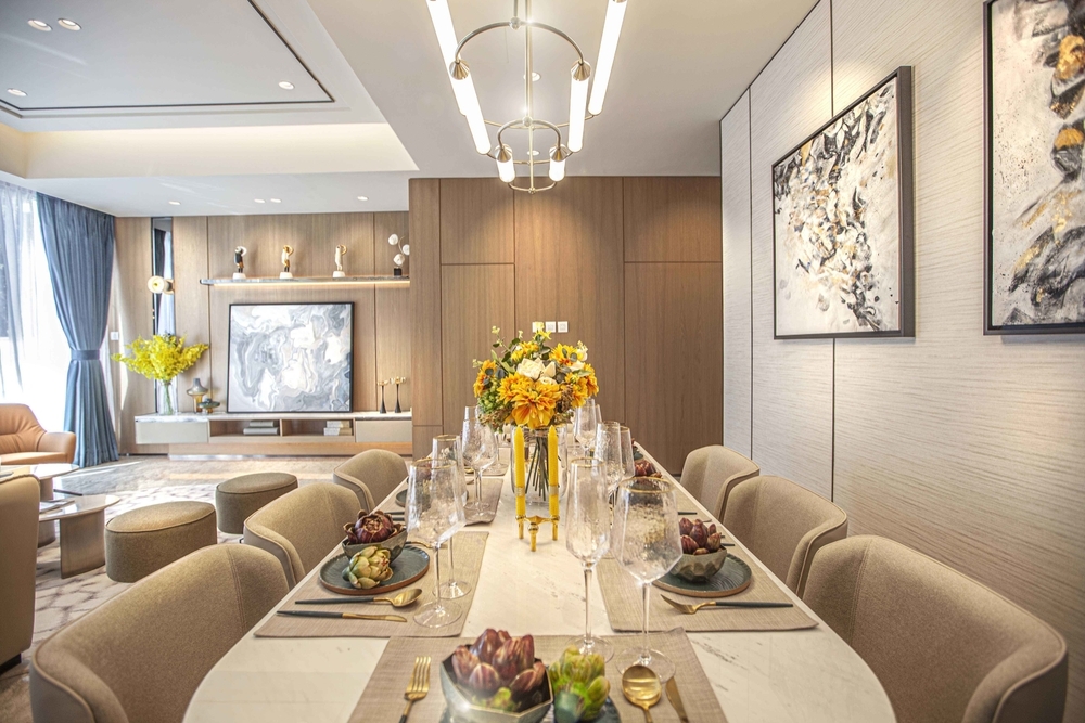 Ultimately, the residence can create an ideal lifestyle for the whole family. In the process of designing, we created a sense of harmony through incorporating the view from the window into the interior space. Unity created through specific selection of material and forms in the space with further connection of garden green view, as well as the warm and cozy design.
