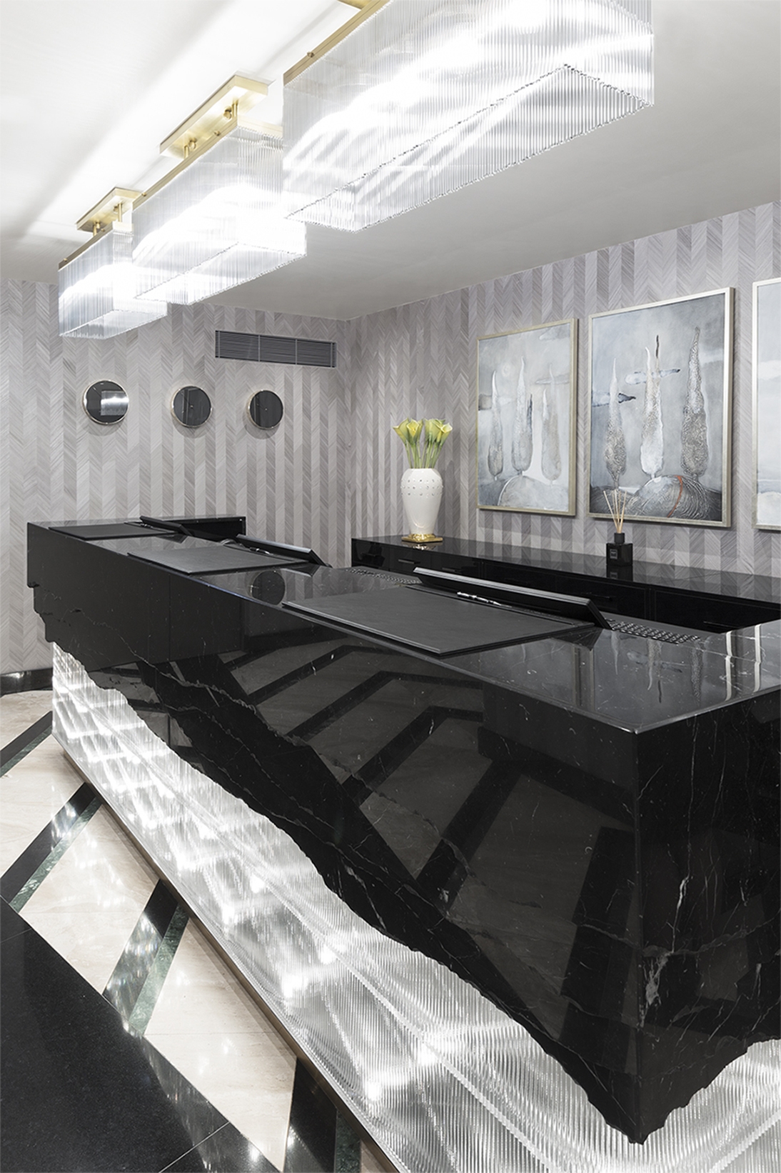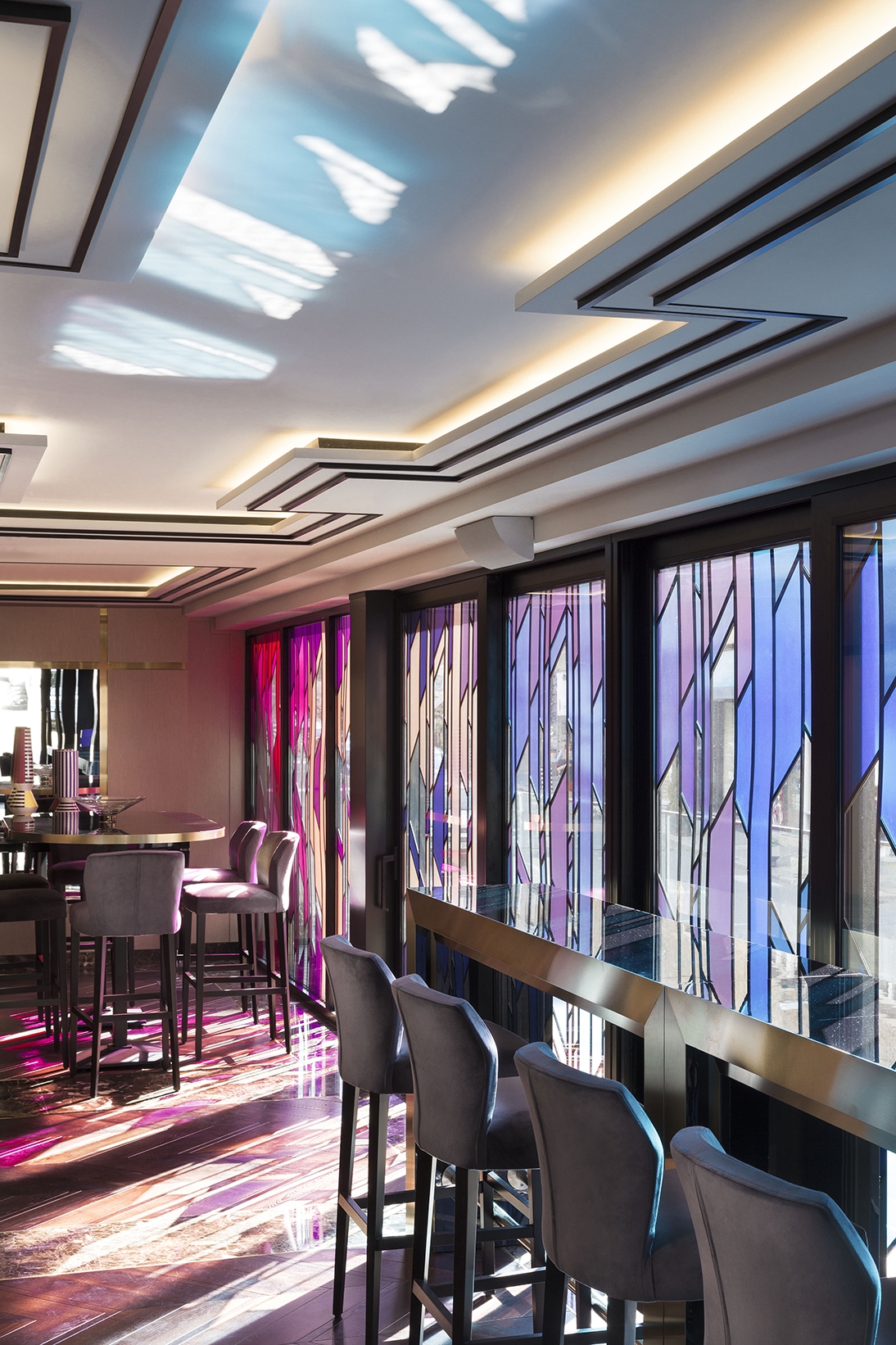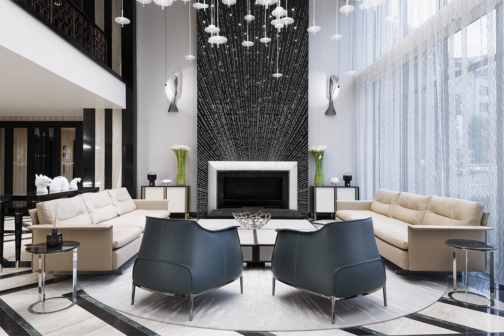 The approach for this project is directed with the scope and depth suggesting this emblematical building for Sofia, situated in one of the most important squares of the city, representing recent history of the country. Alex Kovachev and Studio Idea International direct their focus on the historic meaning of the area, connecting it with the desire of change, hope, youth and free will. The imagination translates that, in the language of interior design, and crates the delicate installation (Harmony or Art and Light), which communicates an emotional veil above the whole foyer of the hotel. The wire sculpture of a girl and the cascade of glass lights, spinning along like soft dandelion petals is a metaphor of harmony and fragility.