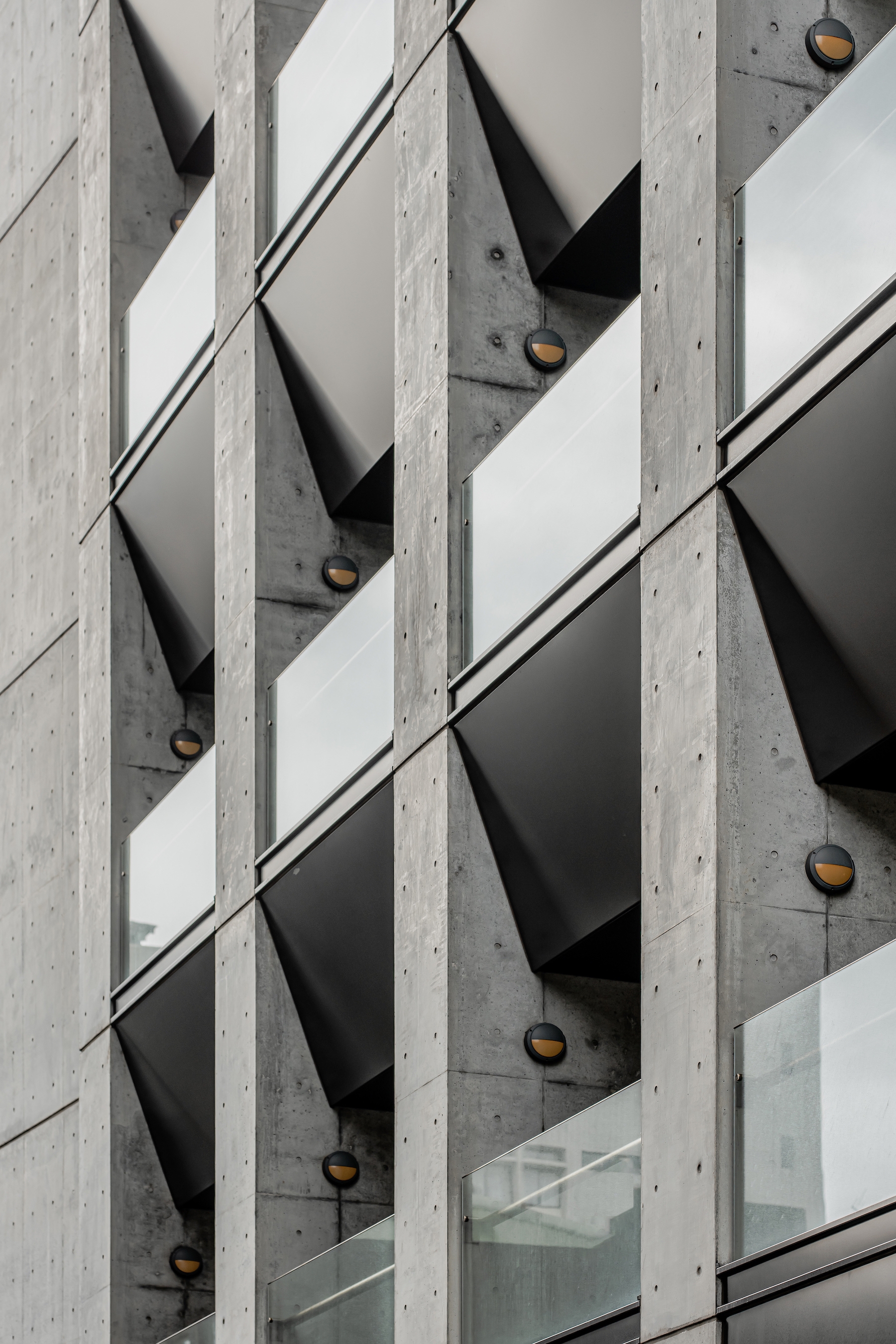 Fading and molds are common issues for fair-faced concrete in humid conditions.We design window cleaning areas and pathways into the building for future maintenance,and apply protective agents on the surface.Structural design and additional lines,plates and ditches enhance drainage and ensure drops dont stay on façade.Fundamental protections in structural design can minimize cleaning and maintenance requirements in the future.Tiles on old buildings in Taiwan often fall off and endanger cities.Fair-faced concrete doesnt require additional processing to increase durability and integrity.