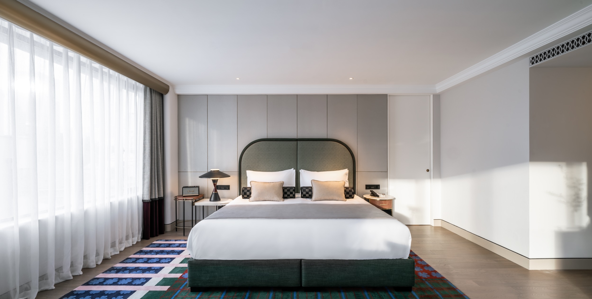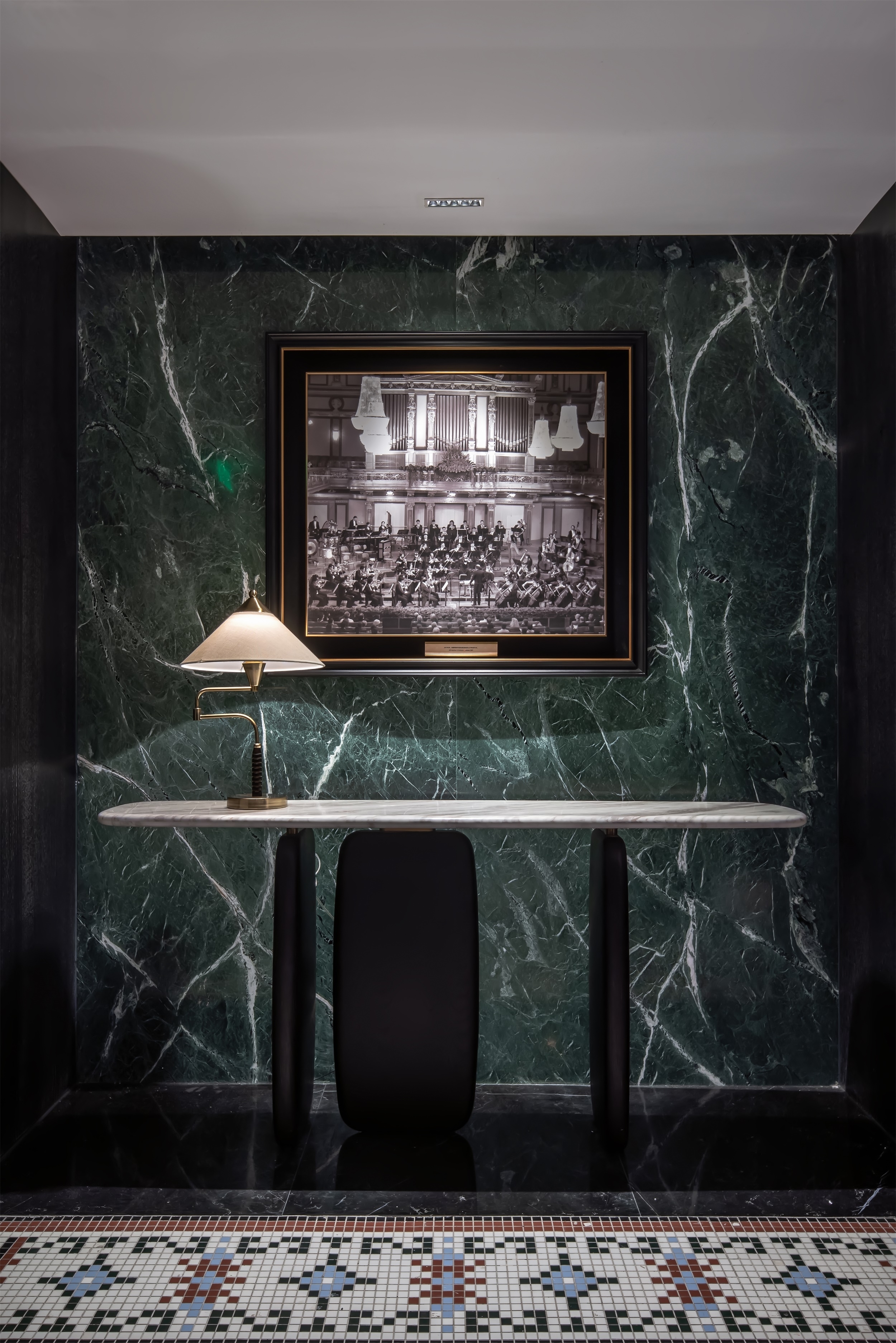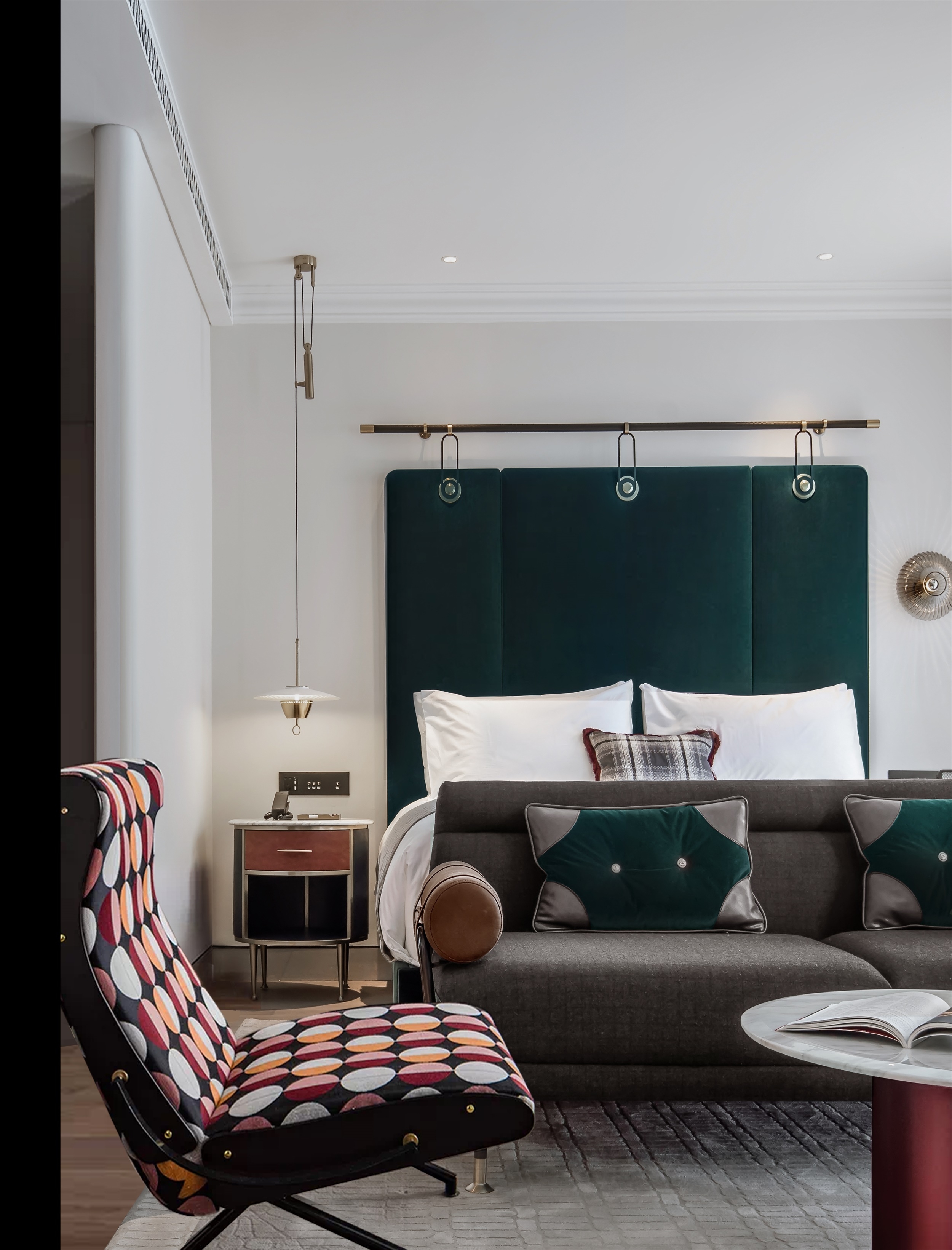 In the guest room, the designer uses dark green, navy blue, wine red, gilt and other bold colors and rich material expression to express the artistic sense of Art Deco and the exquisiteness of Shanghai culture.