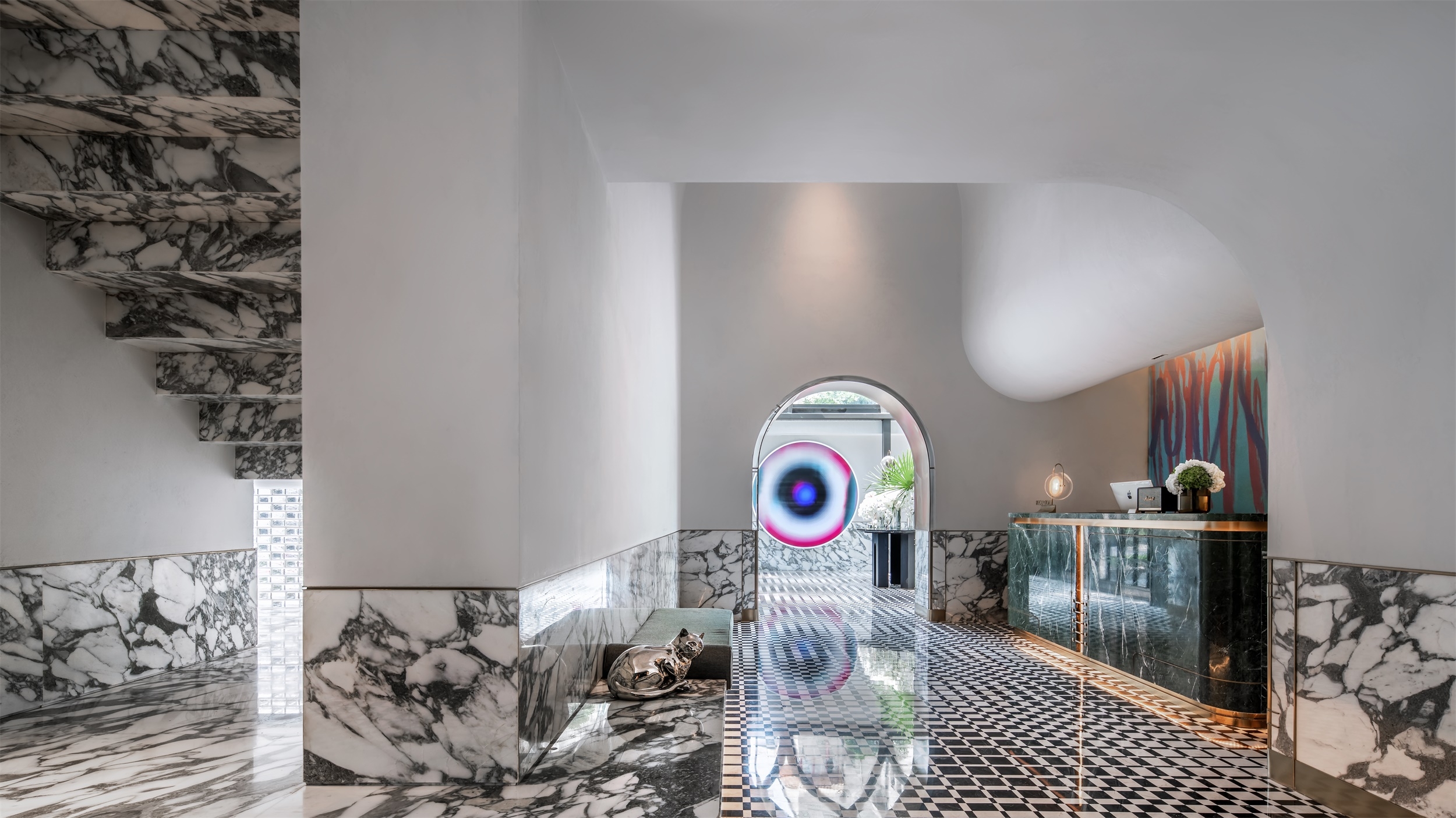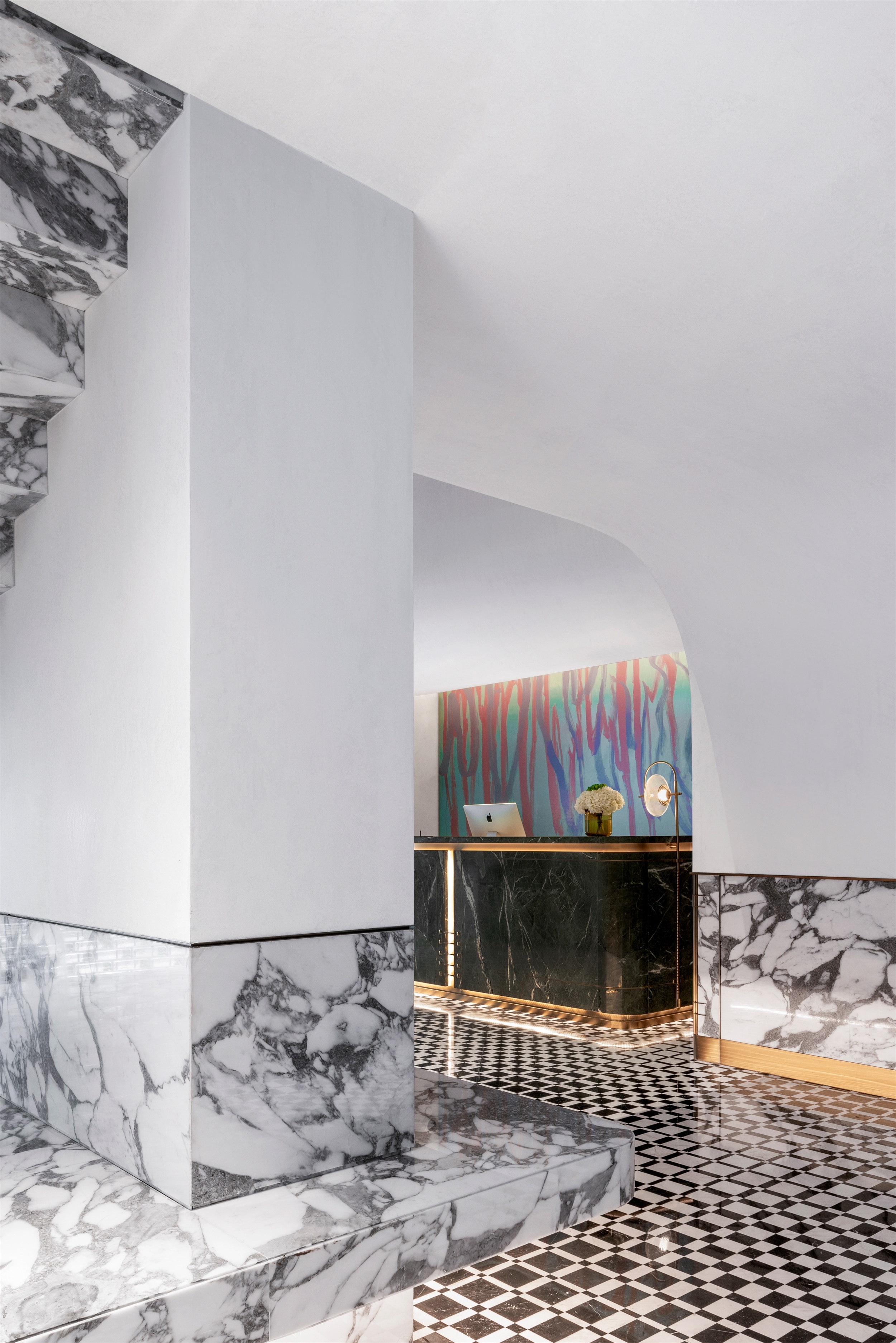 The top of the lobby is integrated into the arched volume, presenting the old Shanghai Shikumen building in an abstract form. The front hall is hung with the artist Yan Lei's "Color Wheel", attracting residents to step into the mysterious interior space.