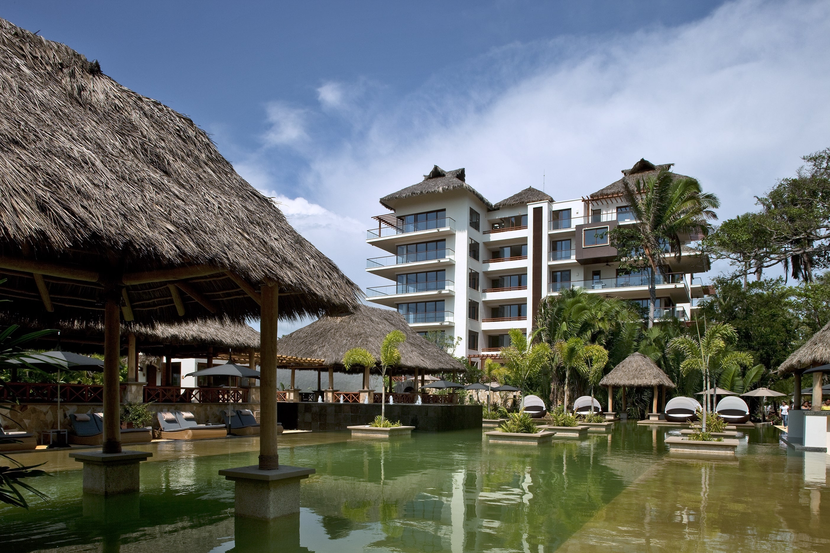 The intervention was respectful, non-invasive: the local vegetation was maintained, and nature and the buildings coexist without detriment to comfort. A six-story complex, around 30 palapas and natural structures blend in with the vegetation: the greater amount of square meters assigned to the facades allows for spectacular views -up to 270 degrees in some cases-, natural light and ventilation, but with privacy. The common areas respect the environment, which includes the endemic species of the site, the flora and fauna of the area.