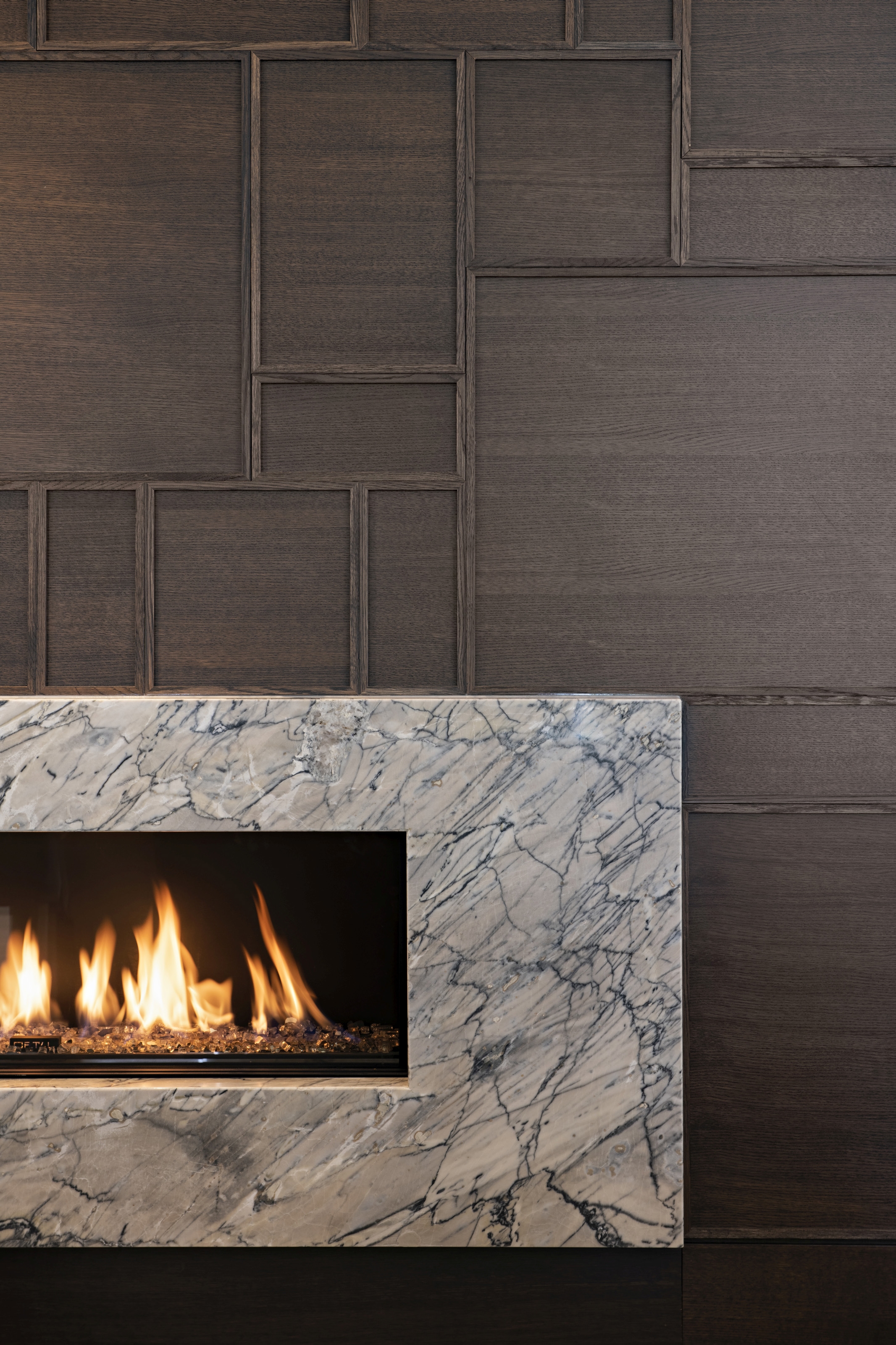 The original open sundeck was adapted to be four-season. Operable glass walls open for summer breezes while heated floors add comfort for Canadian winters. A two-sided fireplace between the custom-furnished patio and dining room is an evocative connection.