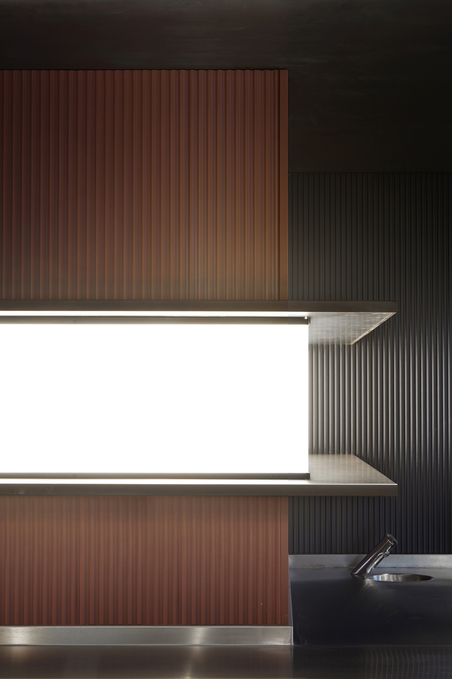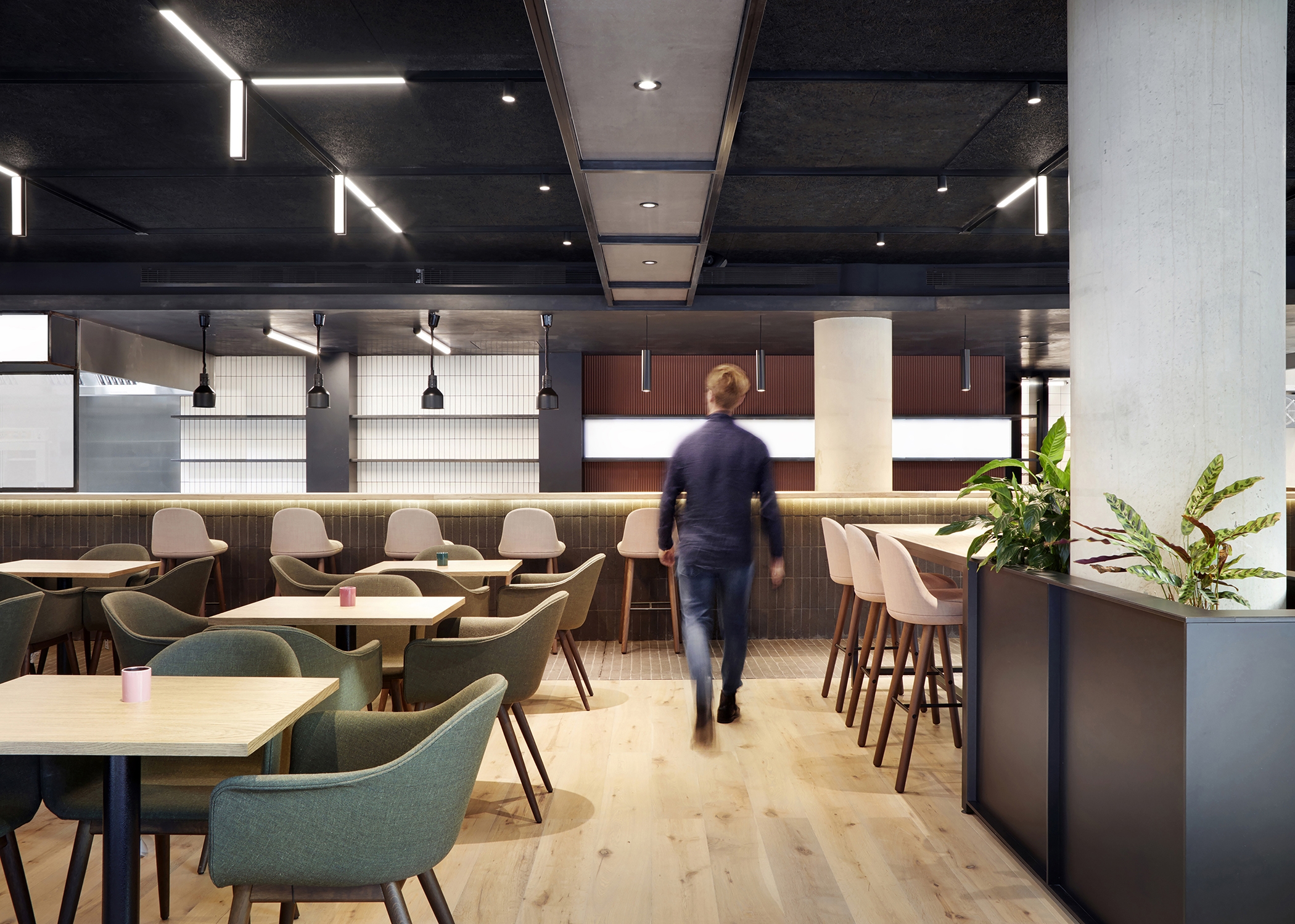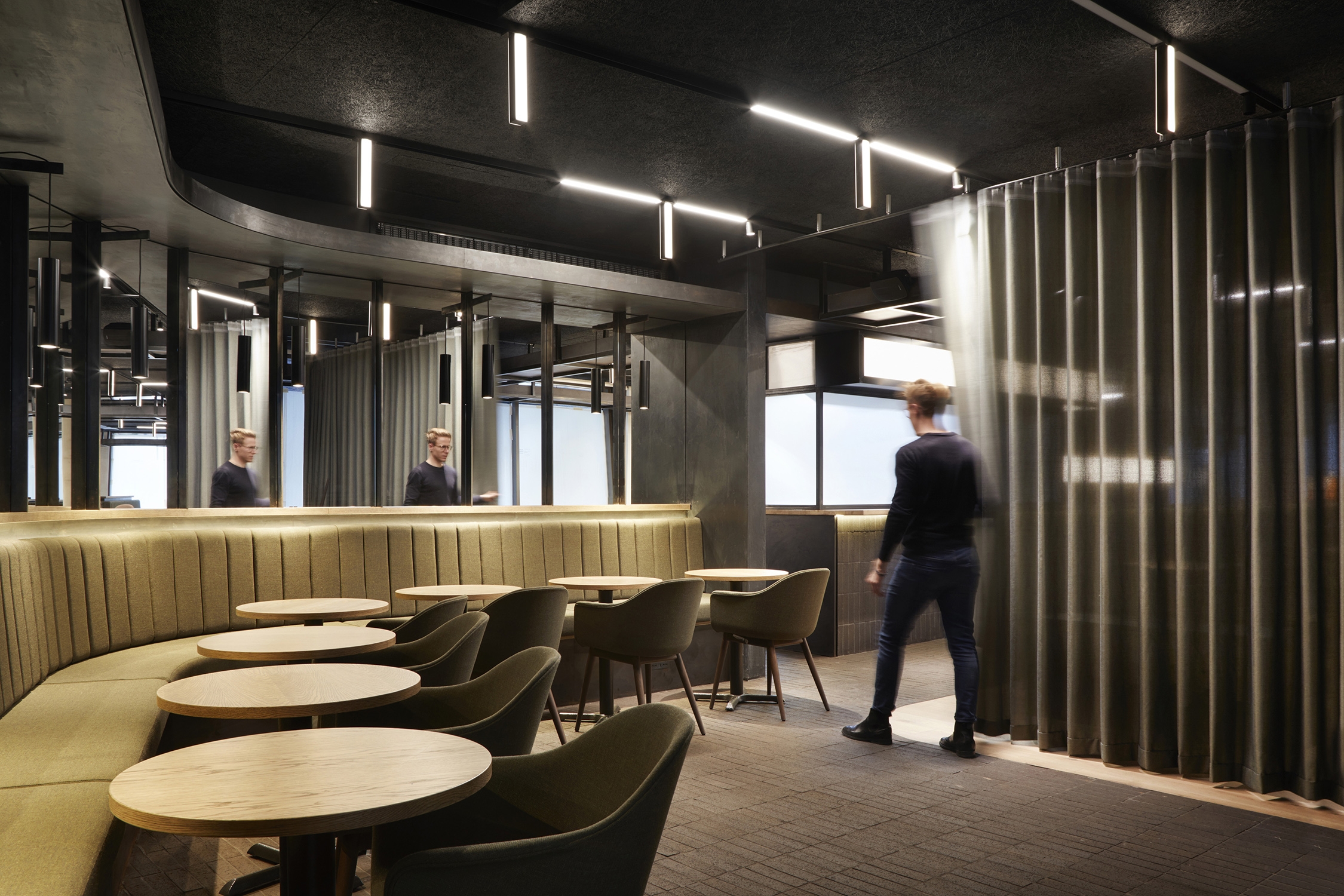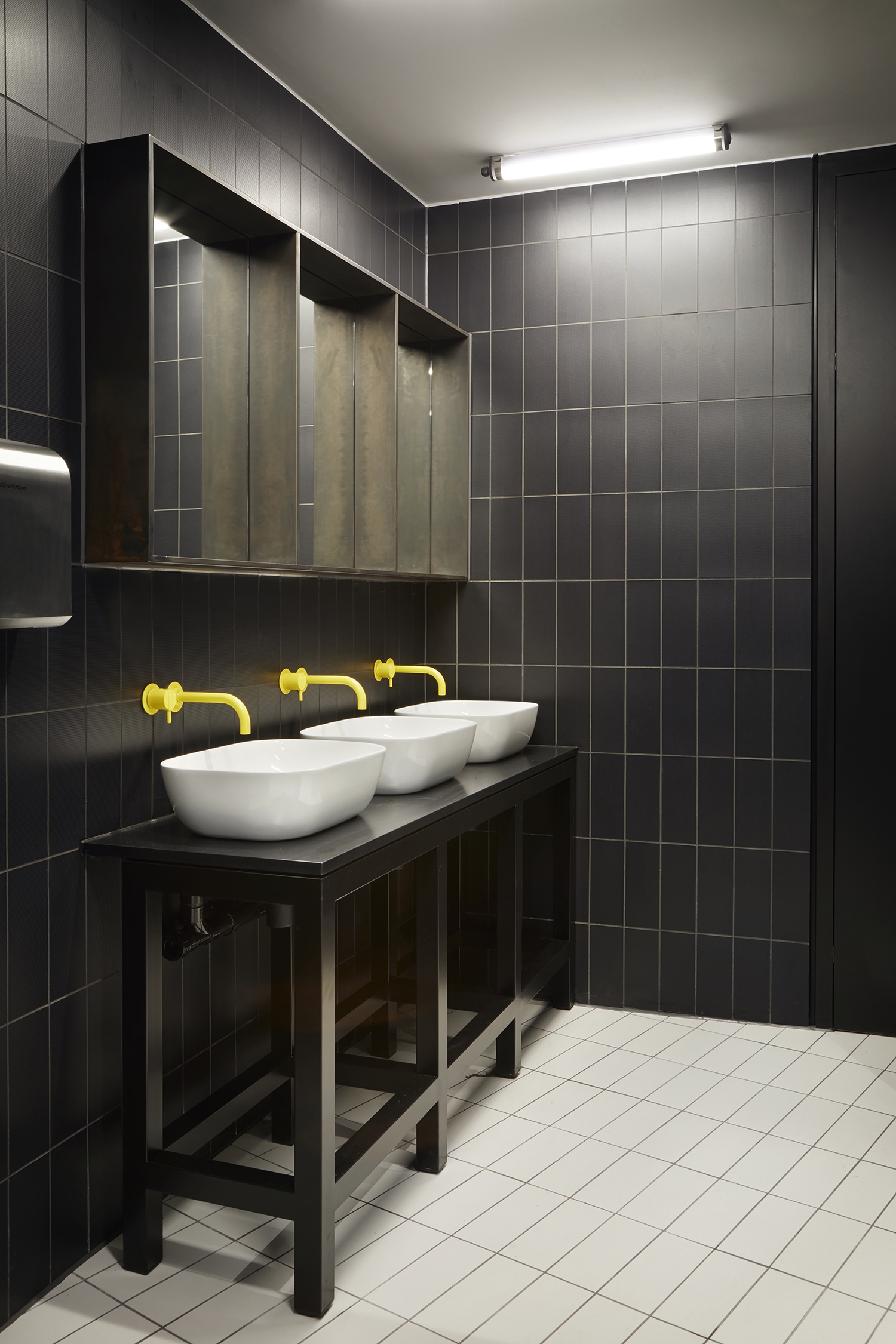 The material language of the space draws inspiration from hard and soft boundaries that are typically juxtaposed within the urban realm: the design is characterised by hard surfaces such as brick, blackened steel and polished plaster set against softer fabrics, planting and warm oak linings throughout.