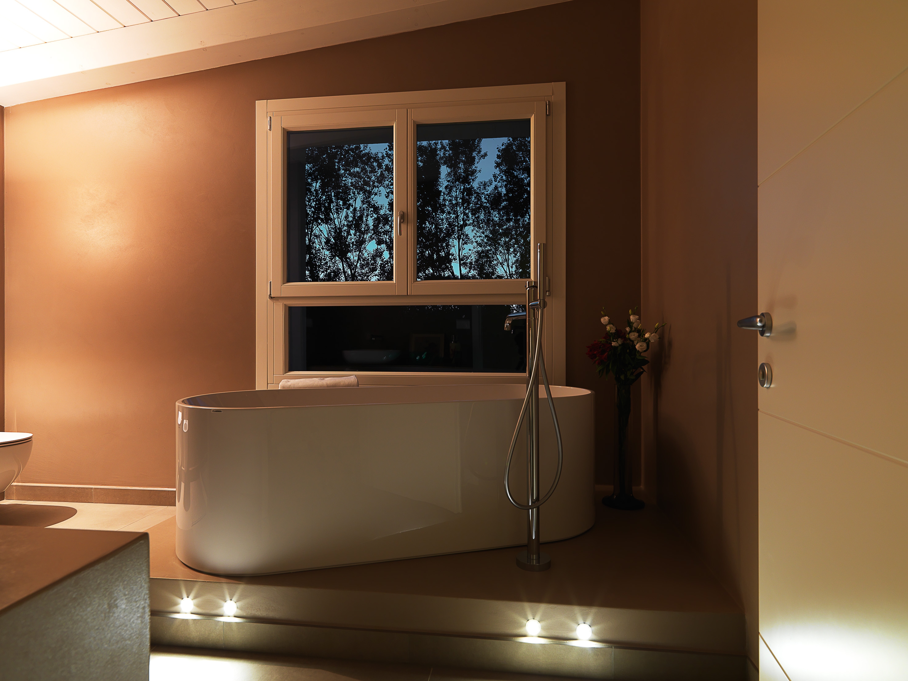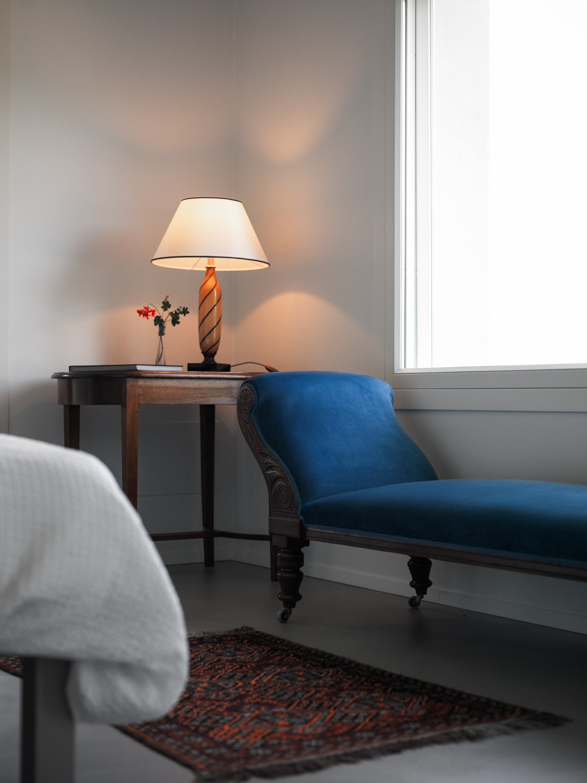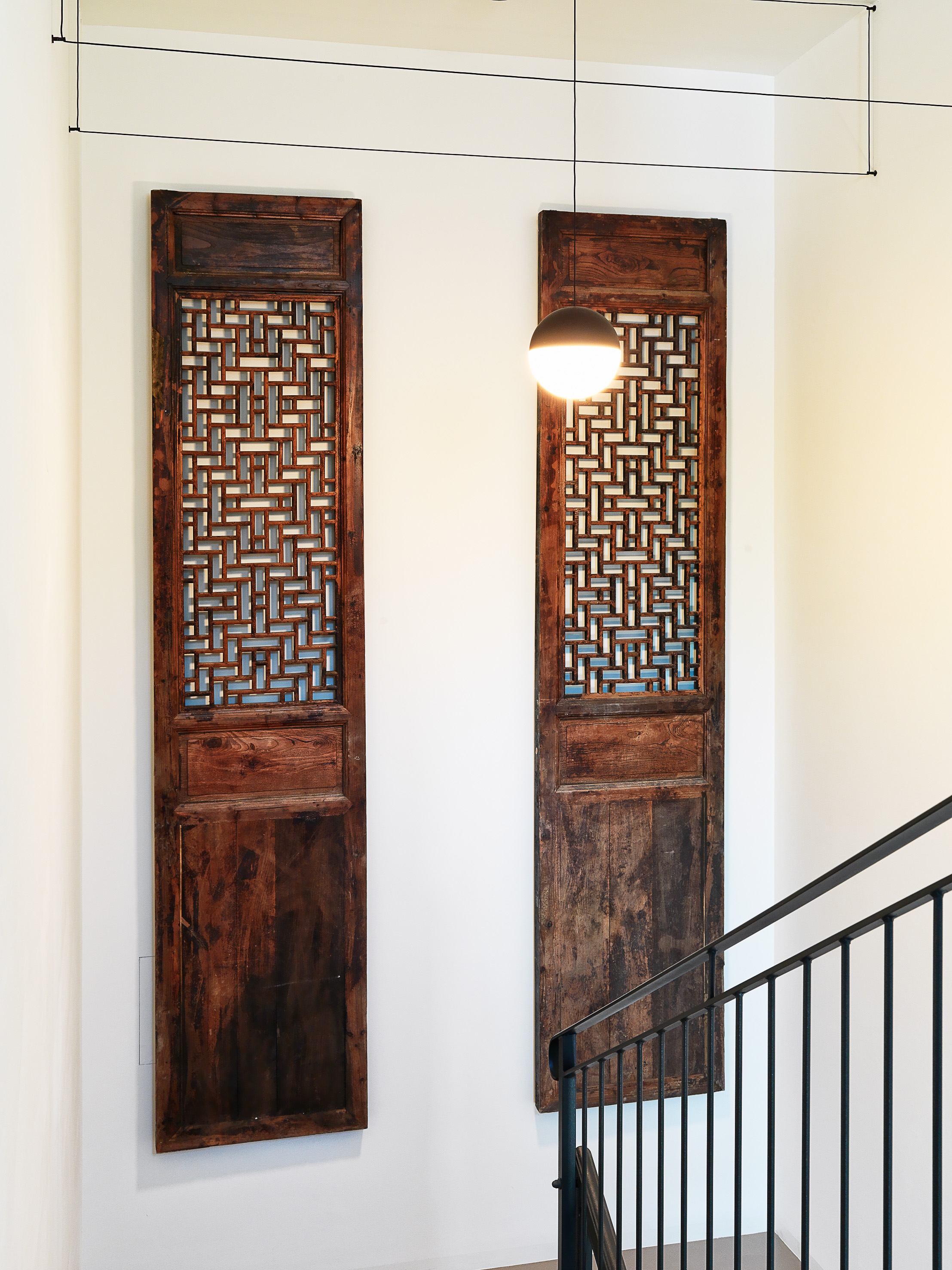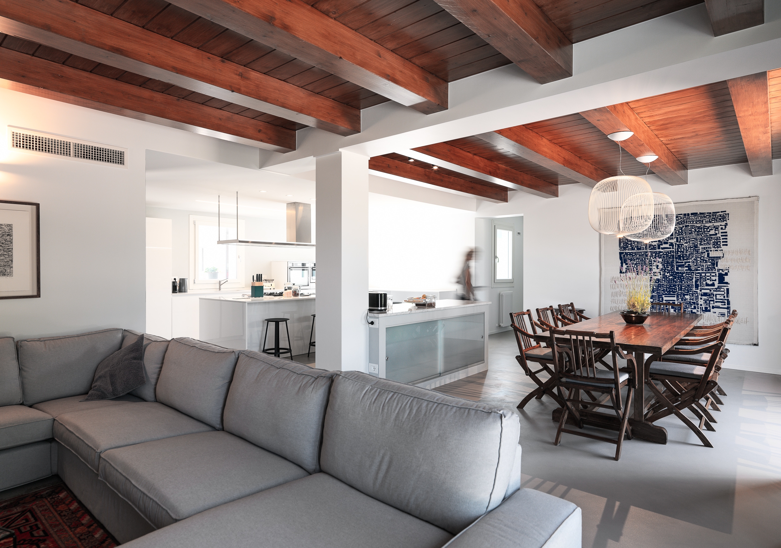 Villa Rivo sits among rolling farmed hills close to the hilltop medieval village of Montottone in the central Italian region of Le Marche. The architects were struck by the seasonal changes of the surrounding farmlands shifting between the lush greens of spring and the golden summer that they chose to create large windows in the bedrooms and bathrooms to frame the views and create strong connections between the indoors and outdoors. Subject to strict seismic and aesthetic planning restrictions the villa occupies the footprint and volume of the old barns and animal sheds that together with the neighboring 1850’s farmhouse (which serves as the owners private family home) were a working farm up until the 1960’s. To contrast the two buildings the decision was taken to clad the house in greyish/blue tinted thermal insulation inspired by the original colors still extant on the outdoor pizza oven. Flexibility was a key design consideration to meet the functional needs of creating a space that could hosts groups of up to 10 people for both pure house rental and also yoga / wellness retreats & culinary courses and also to act as a home for the owners' Asian art and antique collection.