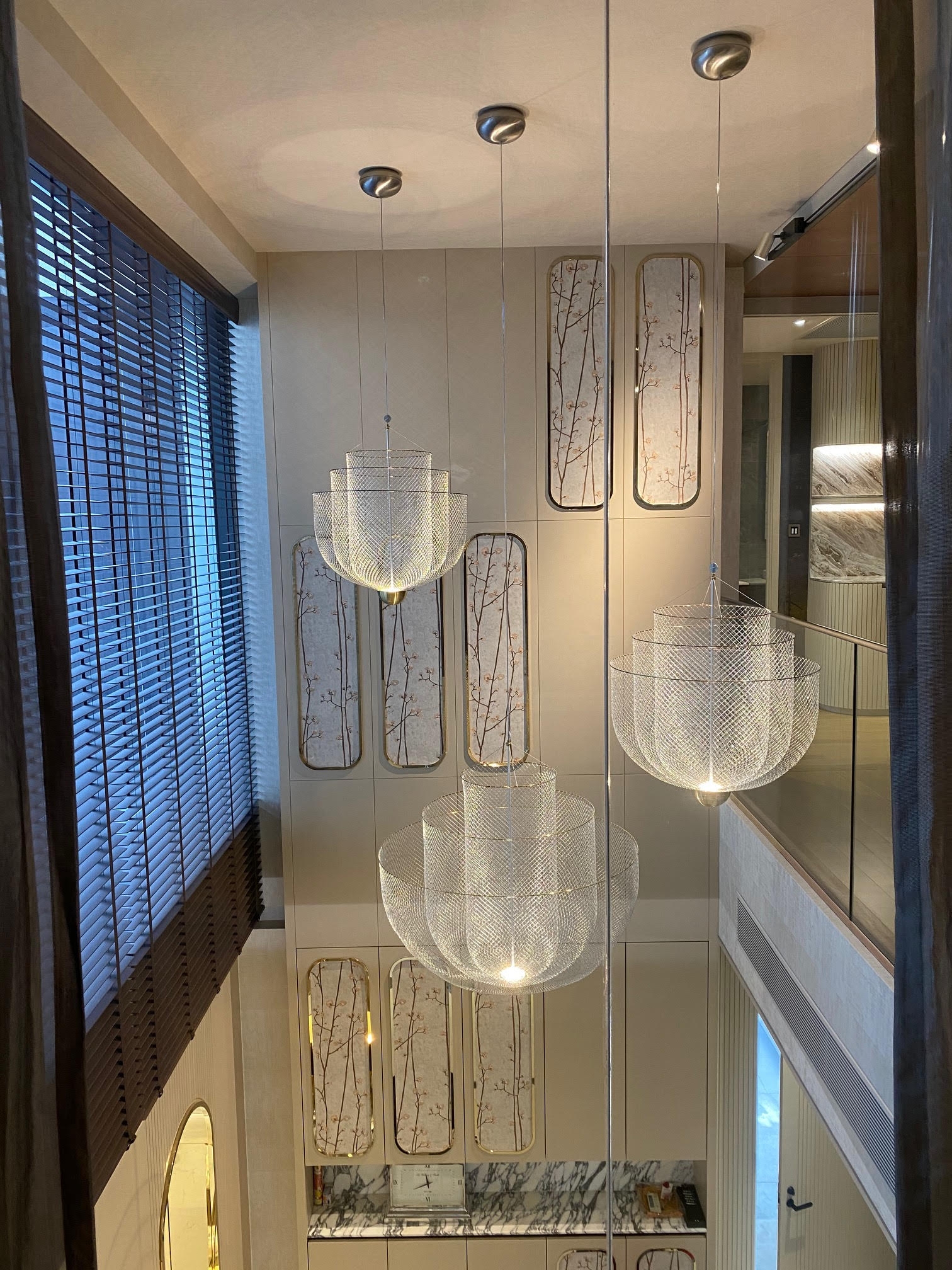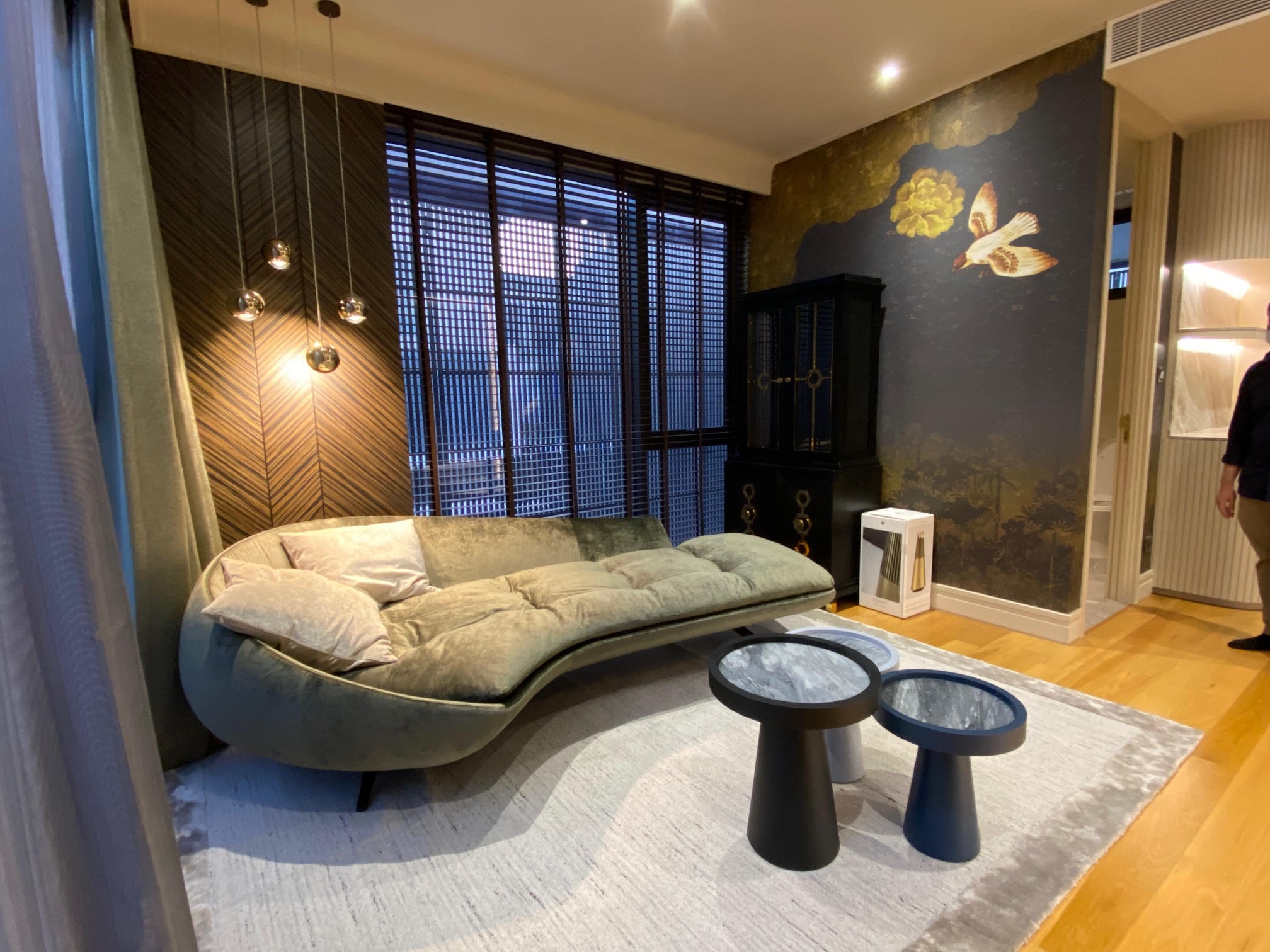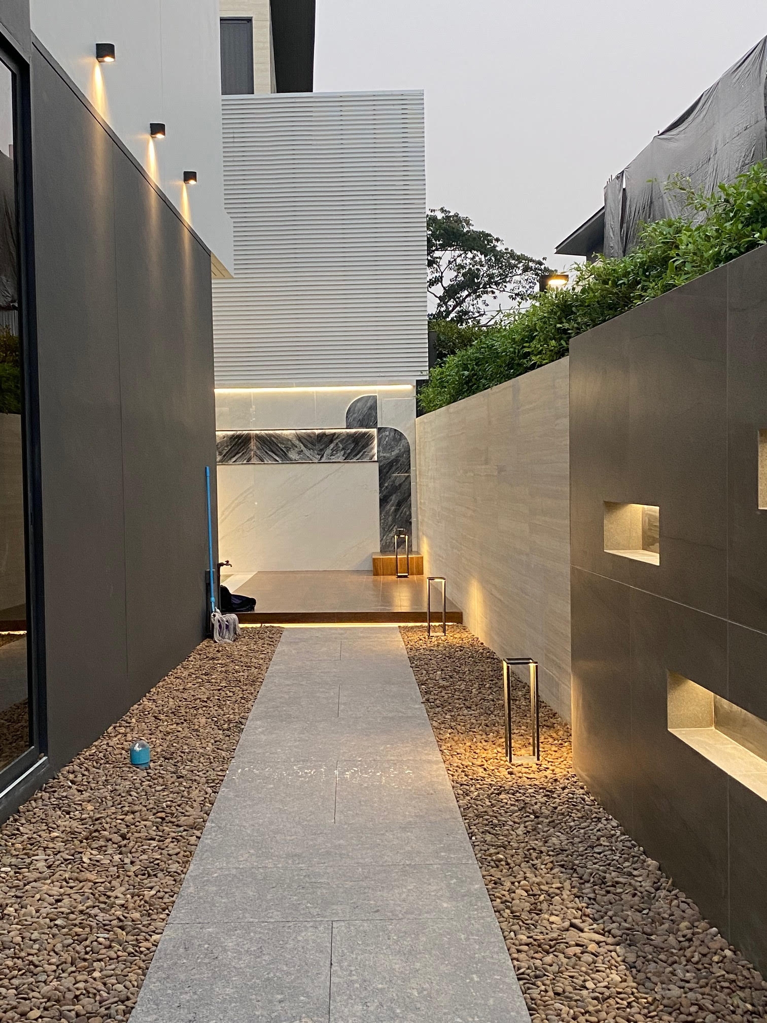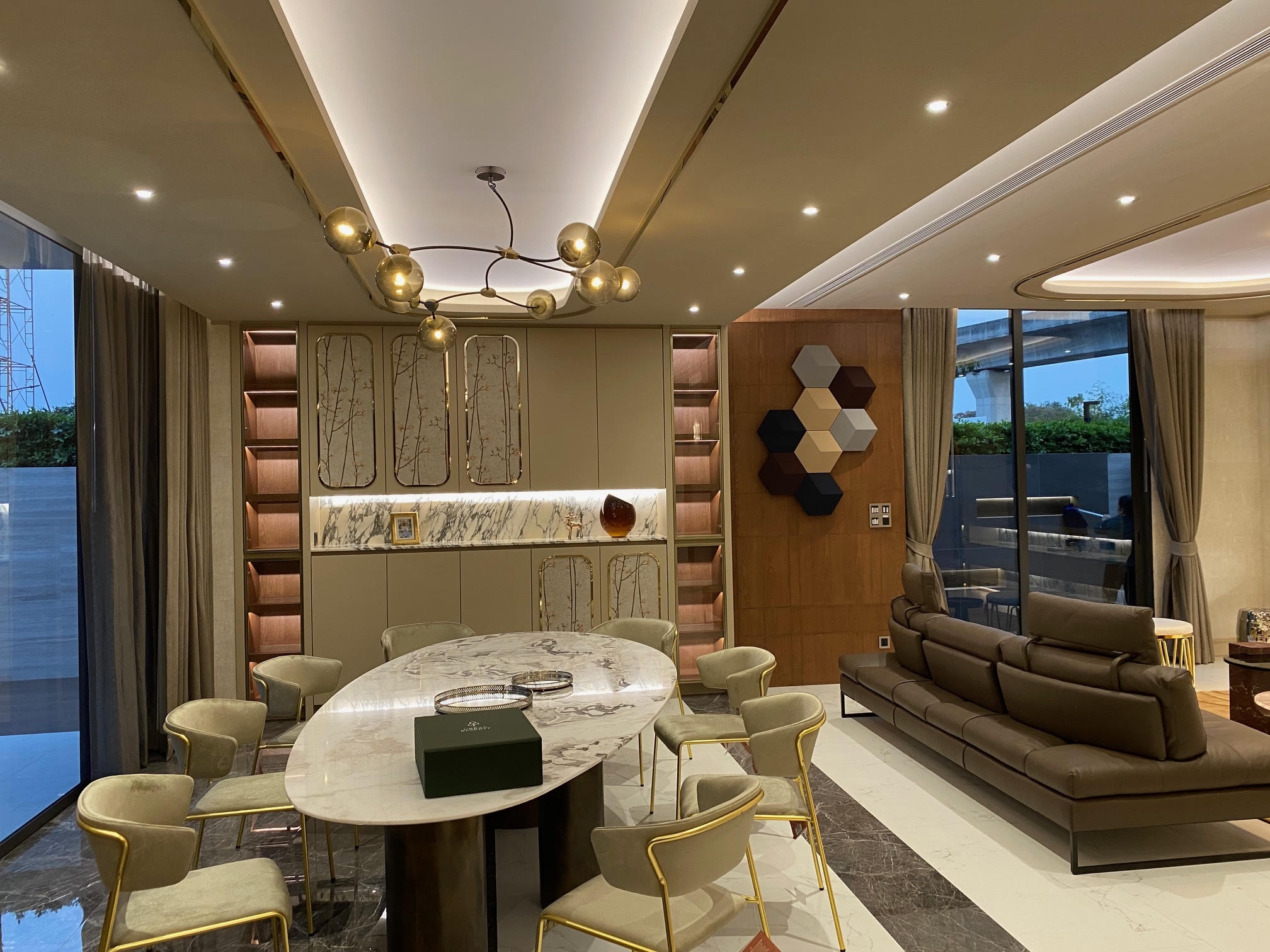 In which the house has a living room, pantry area, kitchen room, guest room, lounge room and 3 bedroom . We talk about the smoothness of the decoration, emphasizing the geometric form, which the customer wants to add more curves inside the space and glossy material , but the designers pefer the texture like craft work, so it fits perfectly with the combination of materials such as matte and glossy tiles, rose gold stainless steel, matte furniture spray paint As well as marble that matches the color of furniture, as well as wall paper with a craft-like texture, the designer calls this event "simply east luxury style".