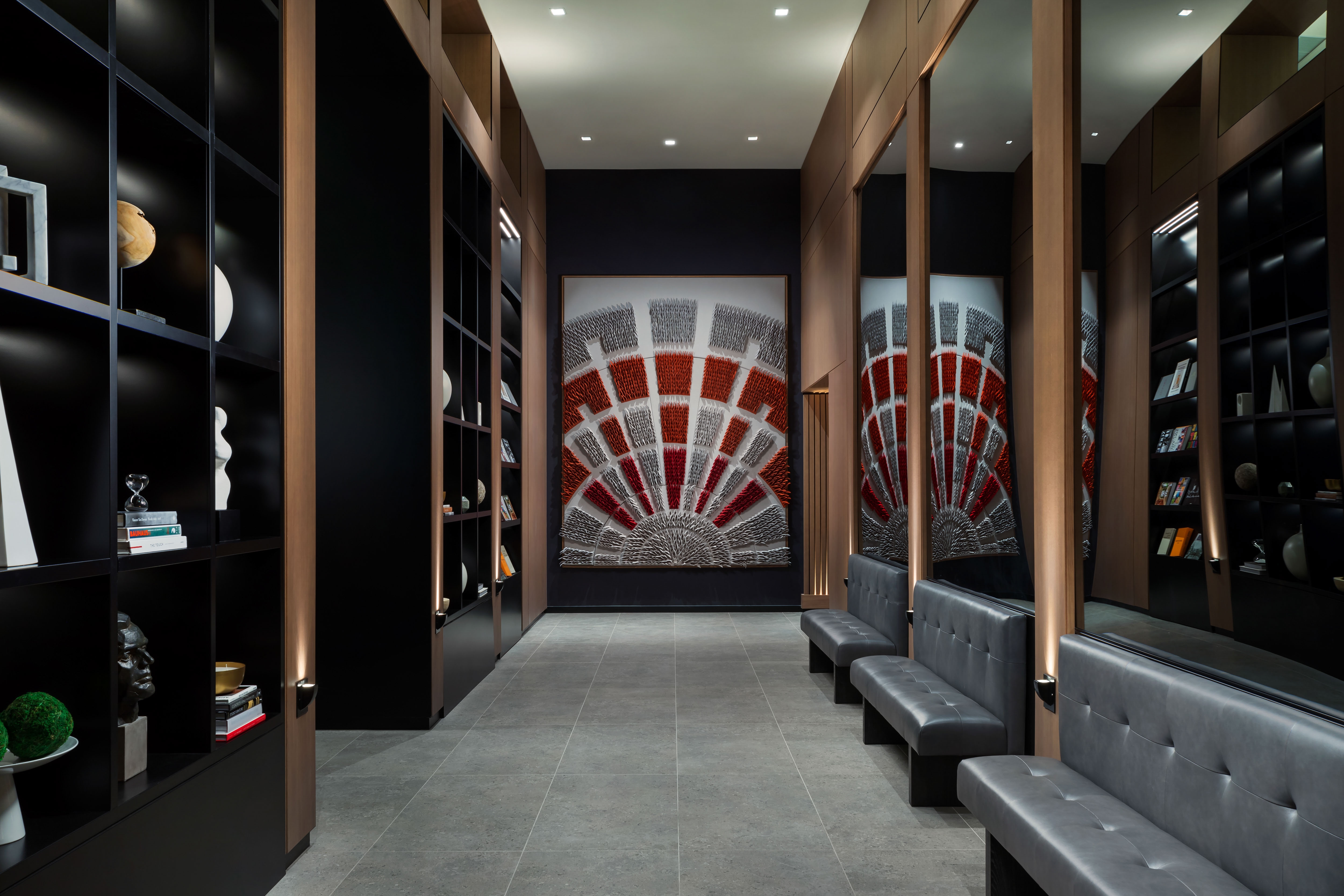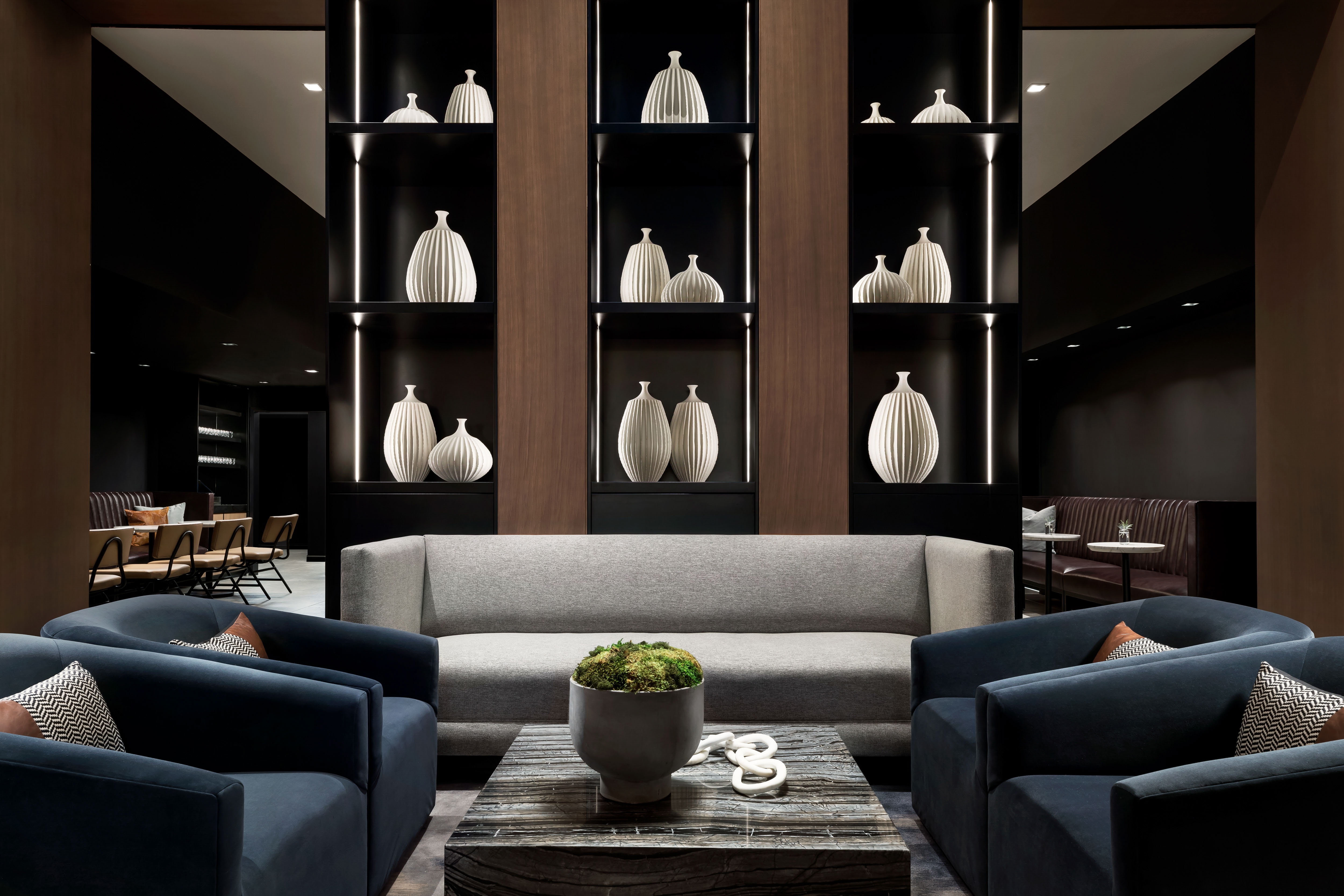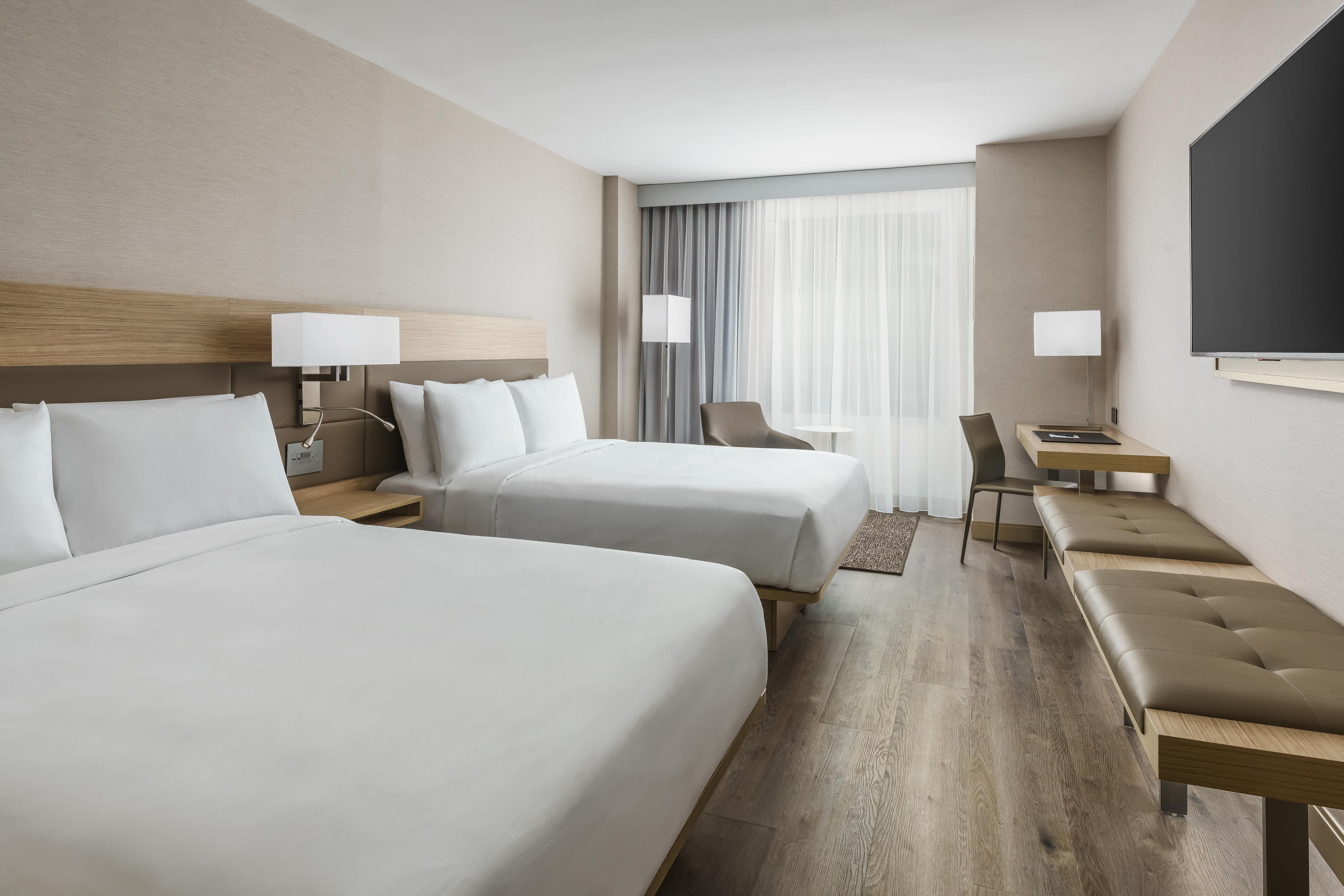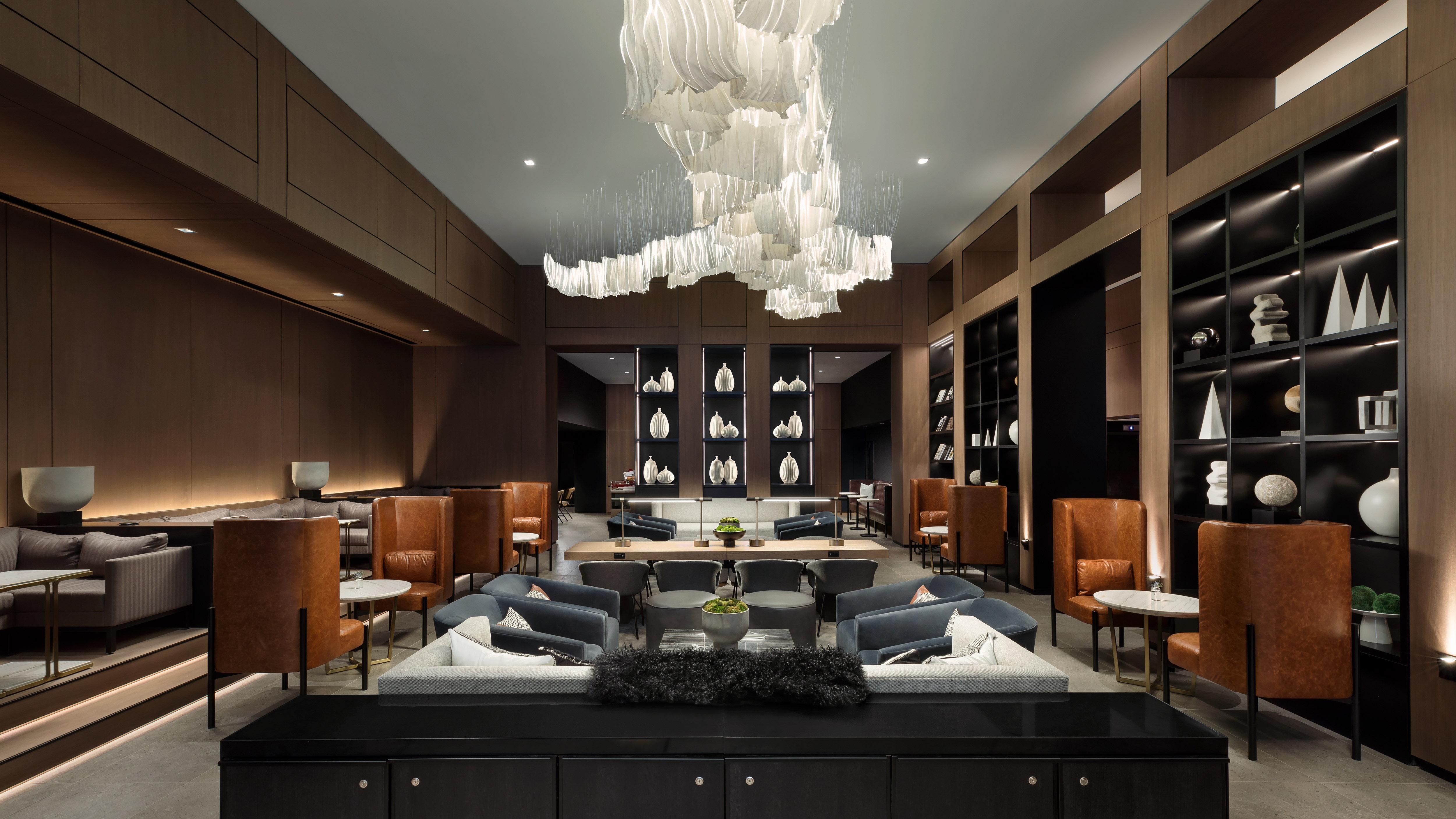 The AC Hotel is a 219 key luxury hotel located in the Golden Triangle Business District near Dupont Circle with 106,000 square feet of guest rooms and amenities. At fourteen stories high and located on a narrow rectangular site, the project serves as a vibrant addition to the rich history of 19th Street. The building’s main façade features a shingled curtain wall system on a two-story module to create a delicate textural expression for the public right of way while also providing daylighting and spectacular views for the adjacent guest rooms. The building’s overall C-shape and closed court creates an efficient floor plate while completing the mid-block urban wall, a difficult arrangement on such a narrow site. On the ground floor, an open-plan lobby and lounge engages the bustling sidewalk with full height glass storefronts and outdoor seating. The closed court also allows for guest rooms throughout the building to have access to natural views and light in addition to conference programming. The project is tracking for LEED Silver with significant energy savings and stormwater innovations, reducing its carbon footprint substantially while building for resiliency.