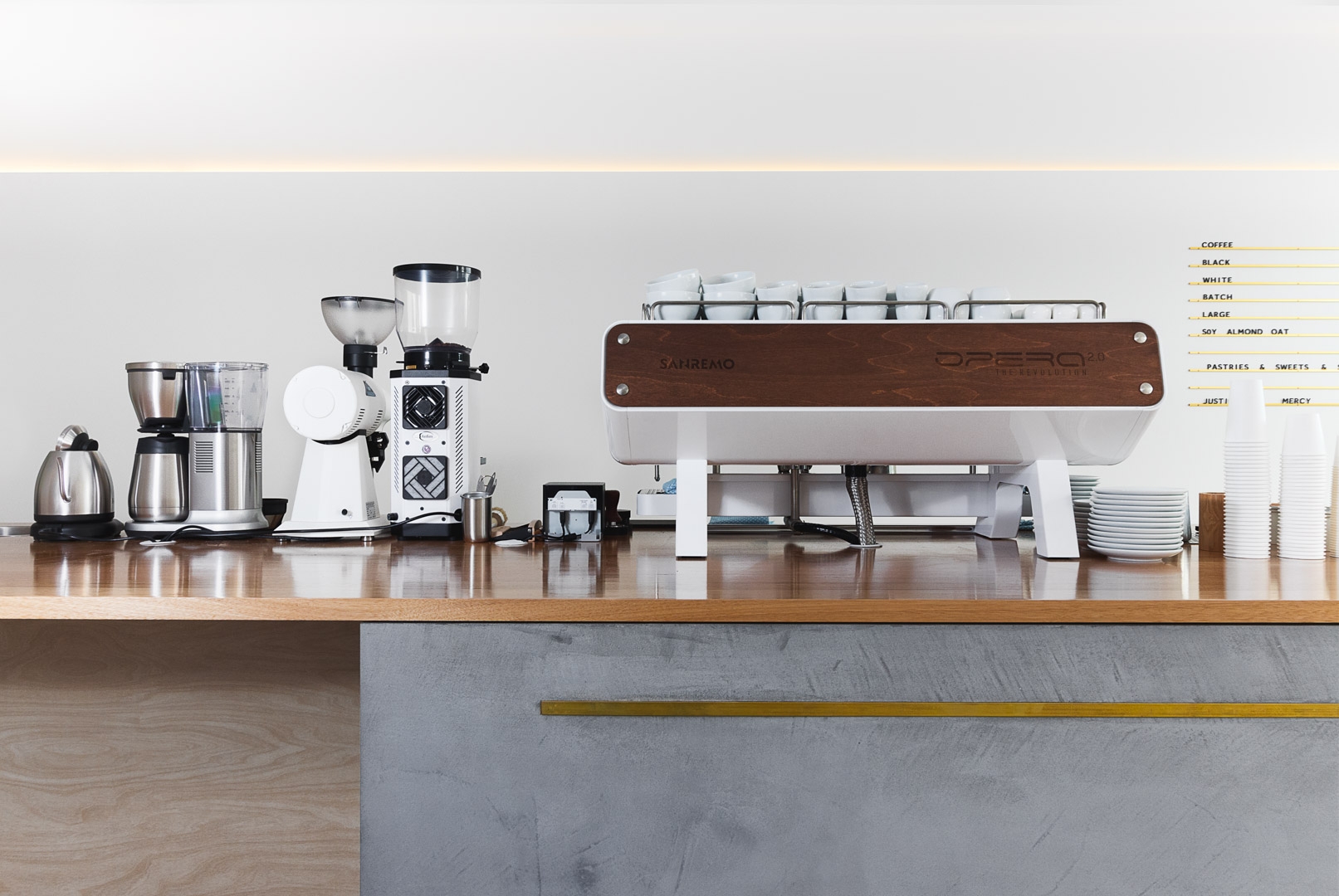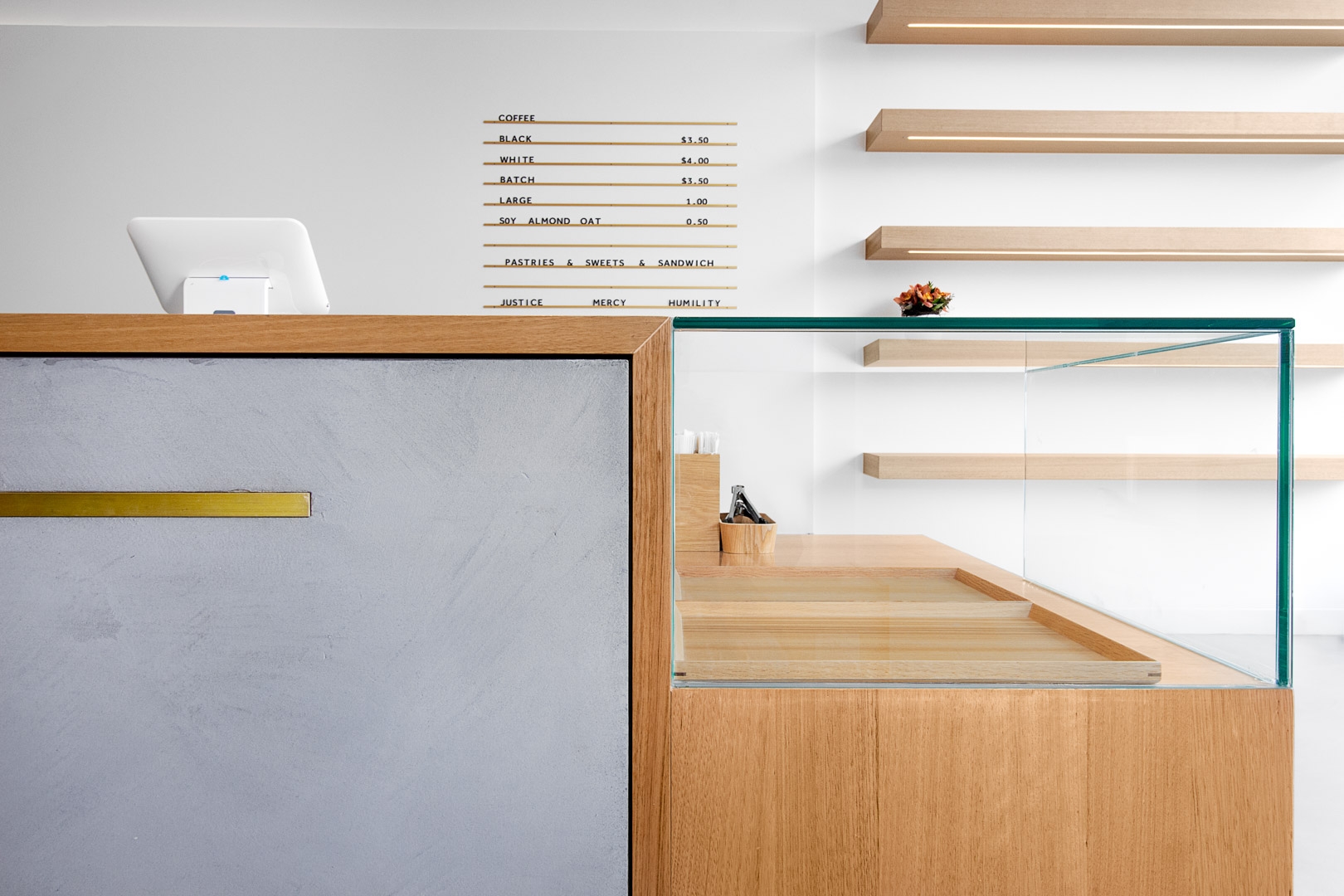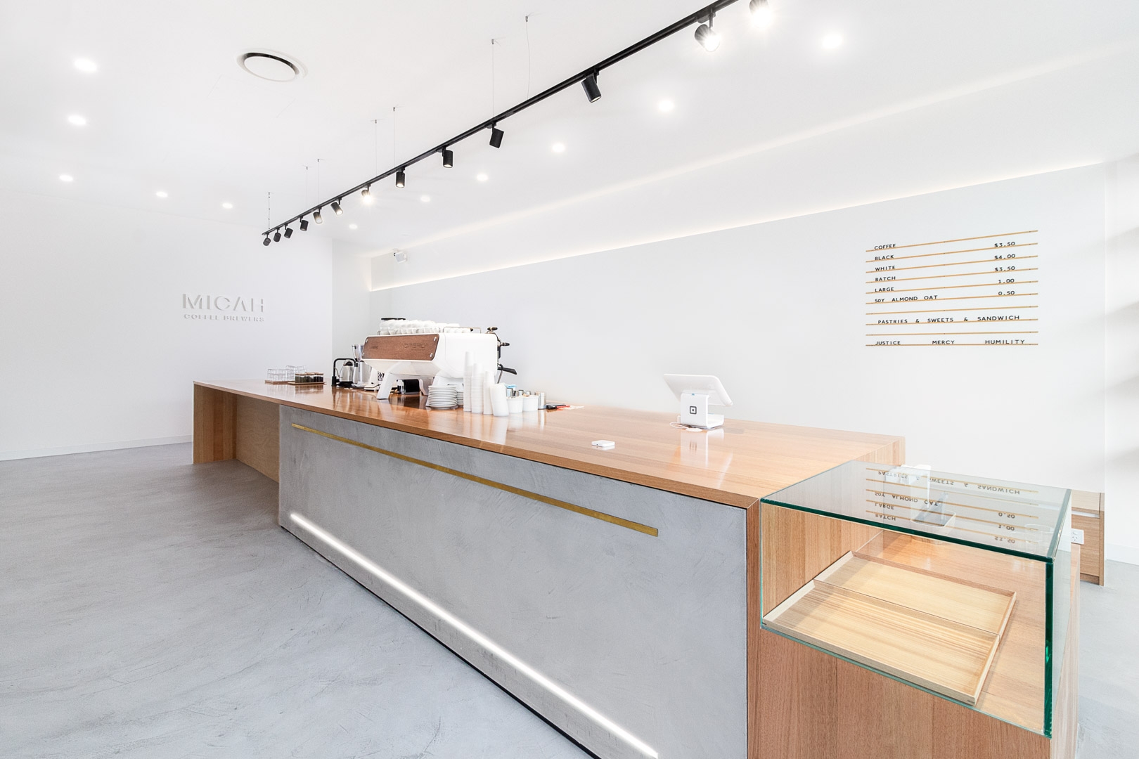 The minimalist cafe designed by RPtecture, creates a sense of warmth for all users with an aesthetically pleasing environment. The small elongated rectangle-shaped building is transformed into a new way of café dining with the integration of minimalist architectural elements of a muted colour palette with clean, sleek lines and smooth textures of timber, concrete and glass within the contrast of the colourful and vibrant sandwiches, sweets, and pastries to offer. Whether it is a place of gathering, a coffee break or even to enjoy the space, MICAH’s café design will achieve it all. In compared to a traditional café style, RPtecture designed a modern, new café approach, which provides the market with an exciting way of receiving coffee. This new innovation enhances the connection between employers and their customers. To optimize the minimum space, this open plan design, consisting of only bench seating on either side of the room, with no tables and a centrepiece island bench, brings a sense of connectivity with one another, creating a community feel. Whether it is on-the-go express coffee or social catchup, the finishing design layout creates a sense of Contentment.