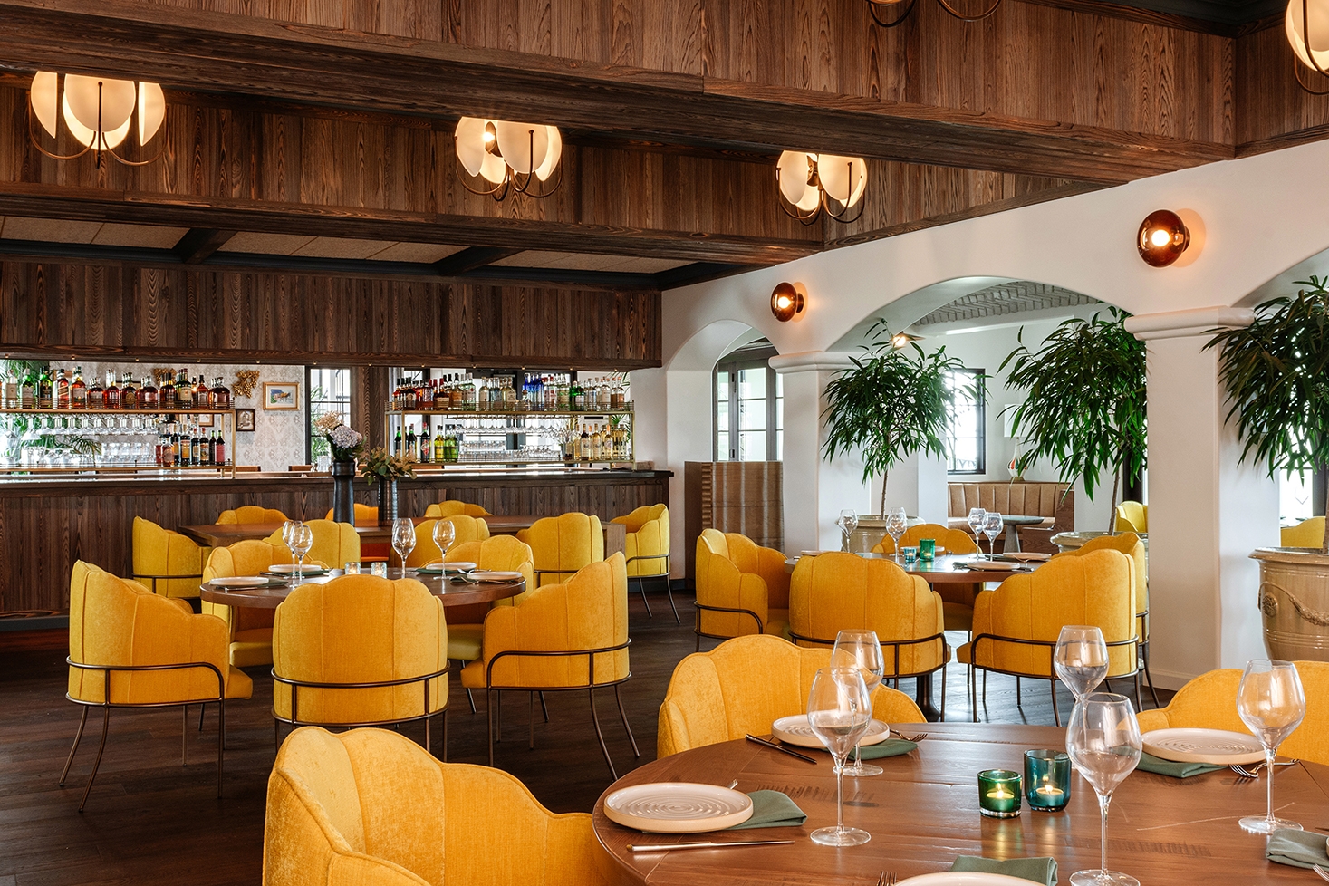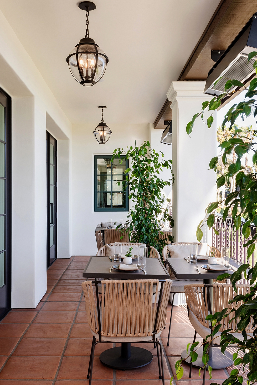 The restaurant occupies a historic space that originated as a dining room in the 1930s. Over time, the space was expanded and reconfigured, creating a disjointed experience for the guests. The space was reorganized to create difference dining zones and opened up to connect the different areas. Part of the interior was transformed into a patio to connect the restaurant to the views of the Pacific Ocean.