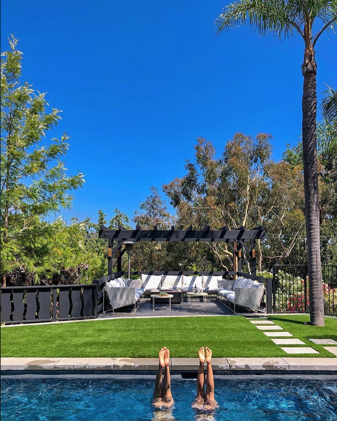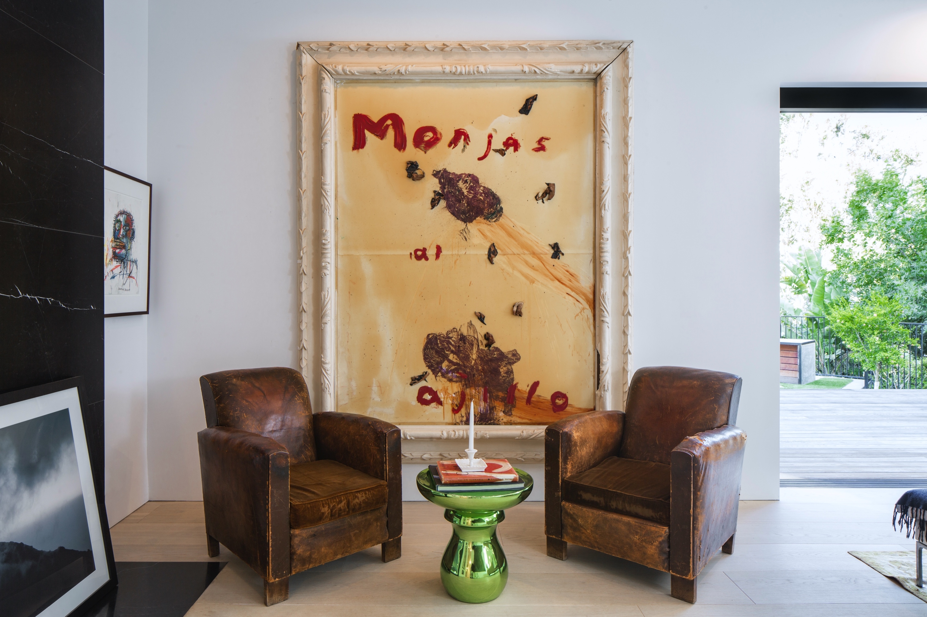 A wall of disappearing glass panels open to a lavish terrace featuring a tile installation from Cuban-American artist Jorge Pardo, a swimming pool, built-in barbecue and loggia with a fire pit. Upstairs, the sophisticated and serene master suite includes a private balcony and additional en-suite bedrooms, each with their designated outdoor space and a generous library. Created with the environment in mind, drought-resistant landscaping and reclaimed wood this home offers an ideal flow of indoor and outdoor living.
