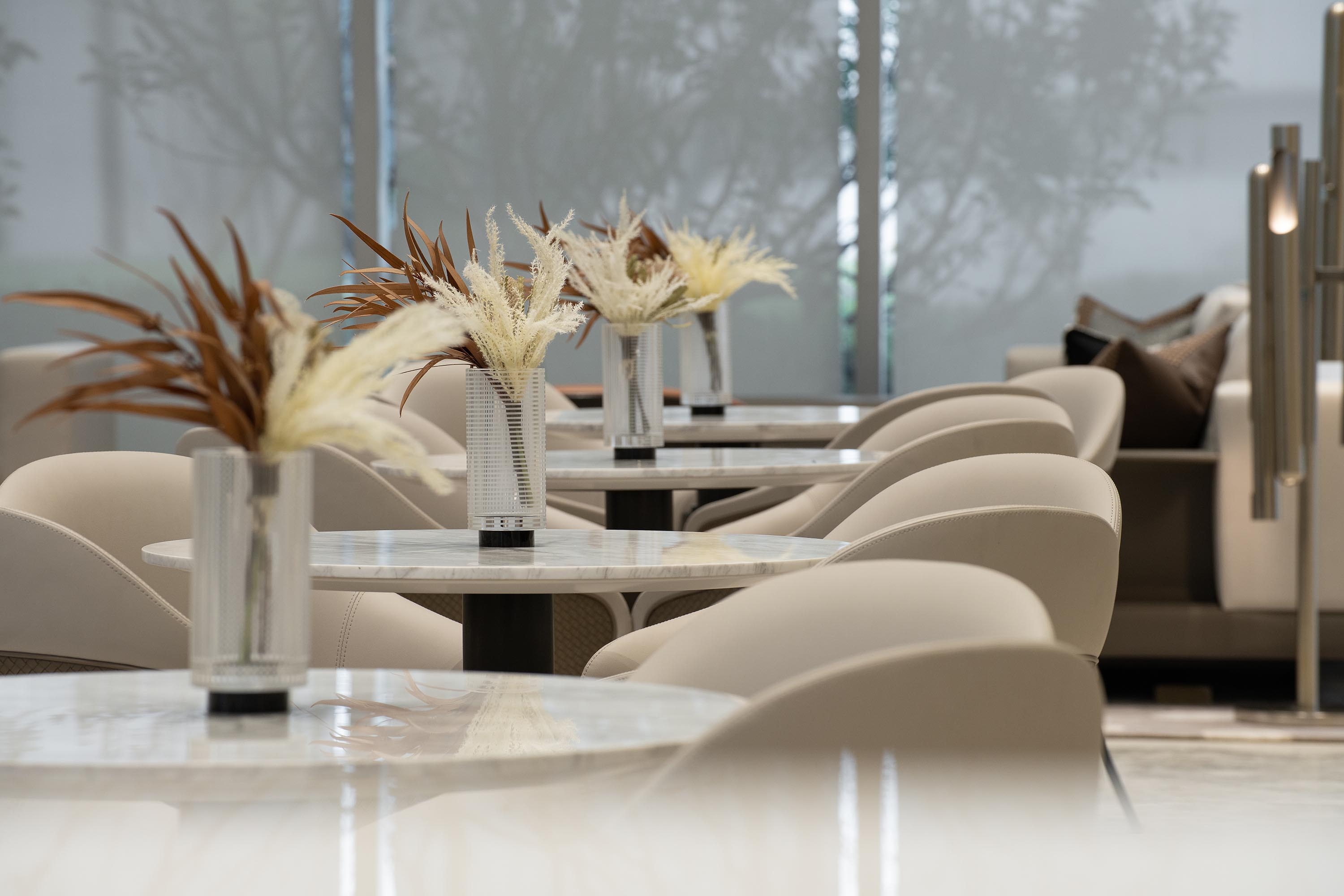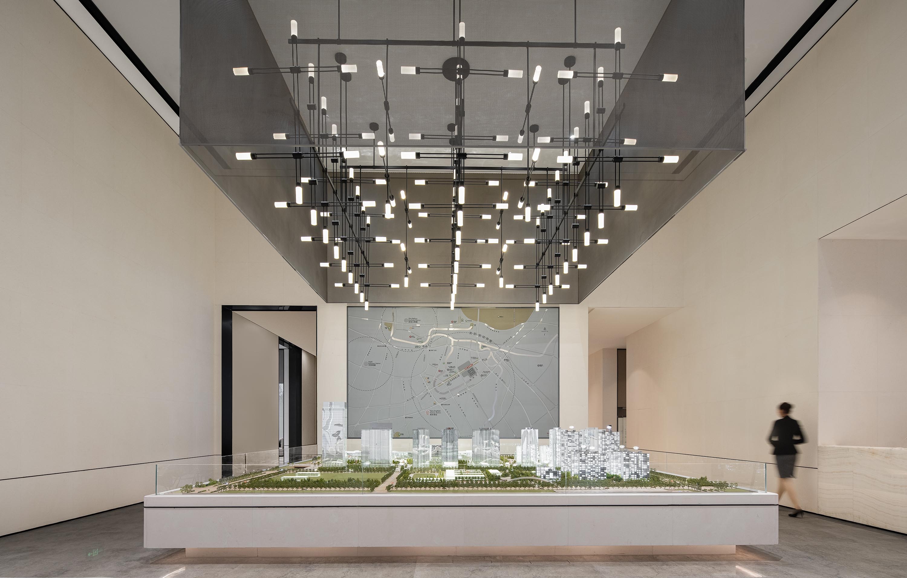 Stepping into the space hall, the background tone of beige and wood color will spread out the elegant and fresh atmosphere. The ornament of orange, lit up the visual center, with a trace of dynamic taste into the main space. The uneven and orderly body of the art installation, combined with the background curtain wall of the front desk and the modification of natural texture, enriches the overall sense of visual hierarchy.