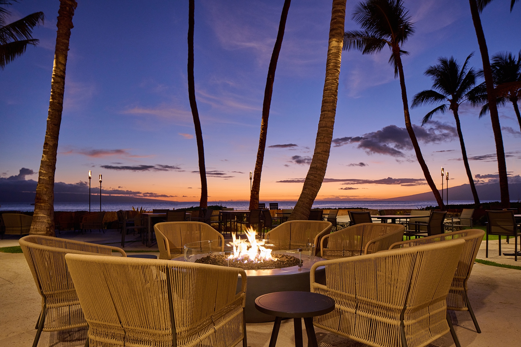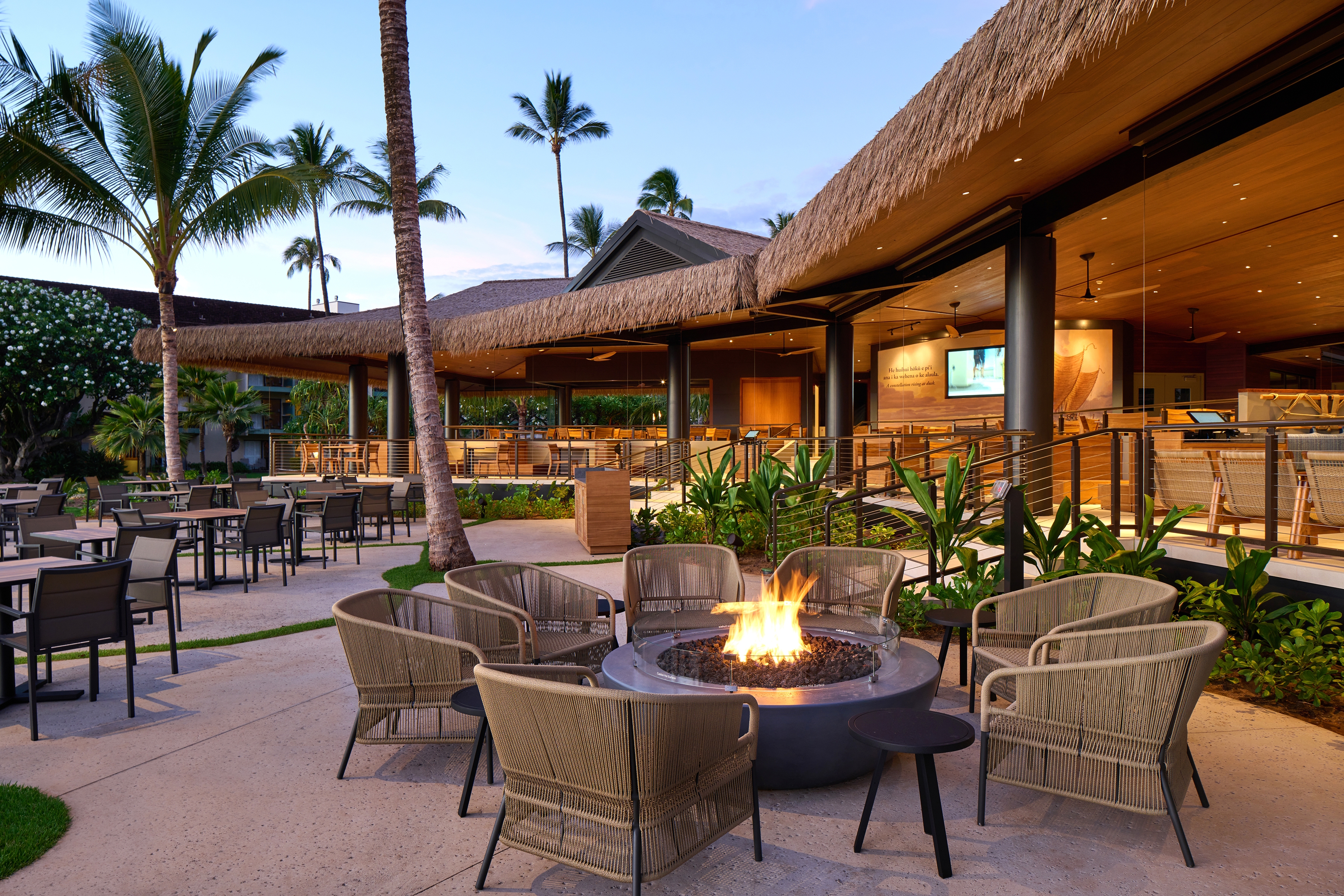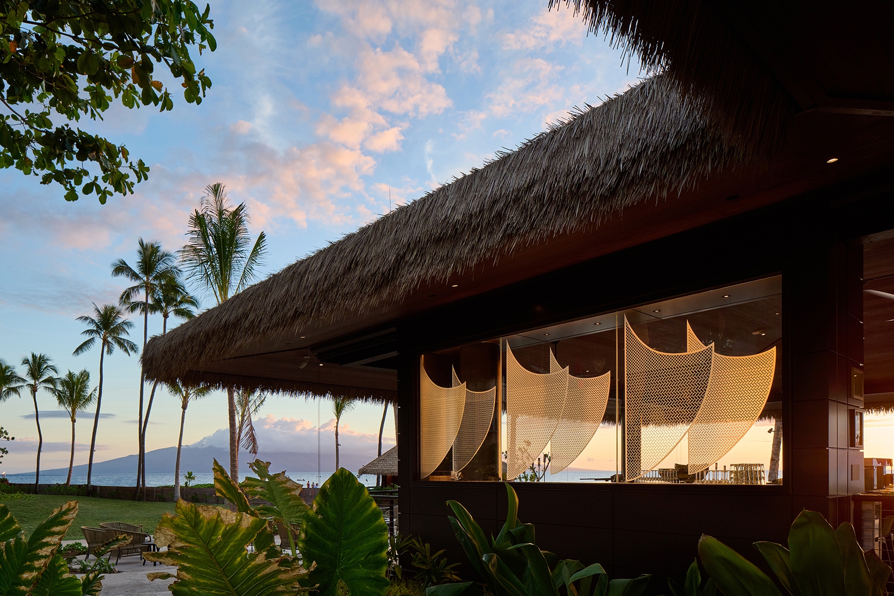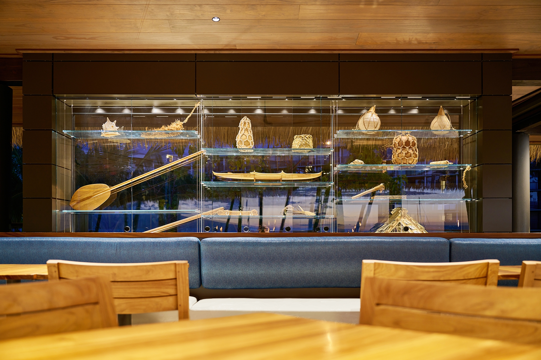 Huihui, meaning “star constellation” or “to join, intermingle, mix”, is a modern interpretation of traditional Hawaiian influences, and helps tell the story of voyaging that is part of the resort’s renowned Po’okela program. Various elements incorporated into the design aid this goal including the artwork, TV display wall, etched-glass sails at the back-bar, night sky inspired lighting plan, and the star-compass patterned performance stage.