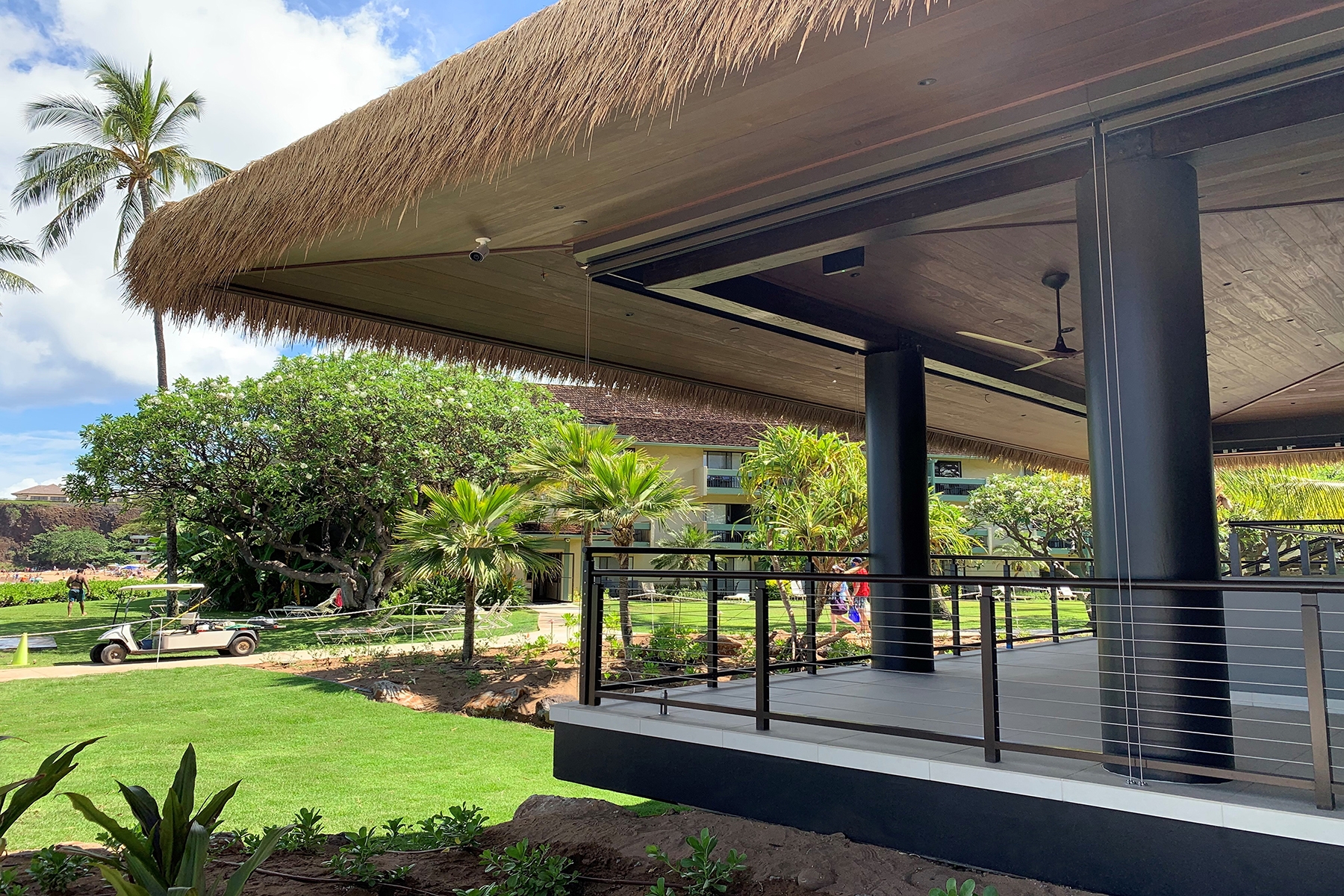 There is an intentional lightness of being with the building floating above the landscape to lesson its impact and create a canoe hale underneath. The building setting, orientation, shape and proportions are a careful balance between programmatic requirements, view impacts to guestrooms, and government requirements. The dark color palette allows the building to recede rather than impose and reduce ocean view sun glare. Seven-foot overhangs foster a sense of enclosure while providing respite from the elements.