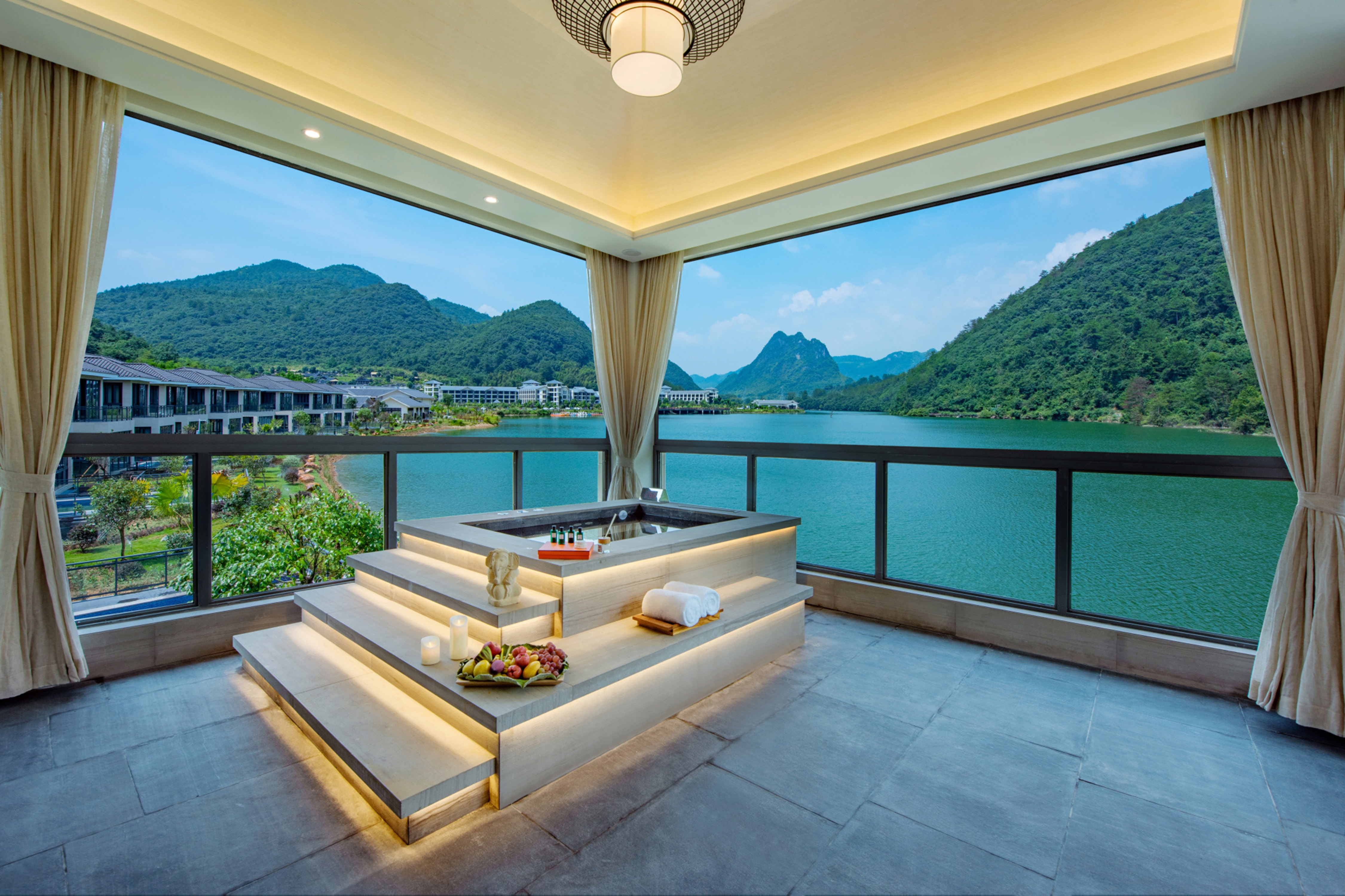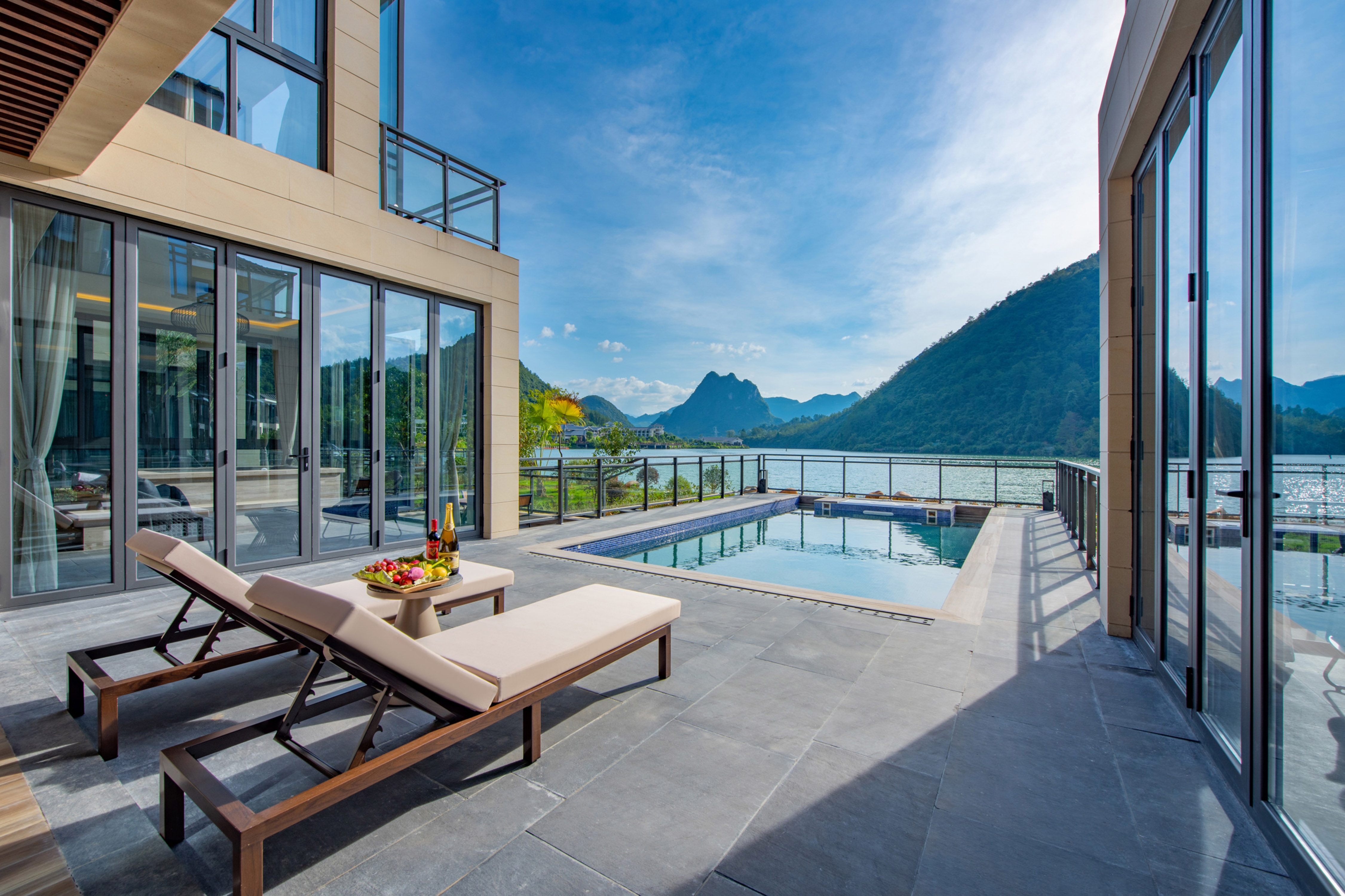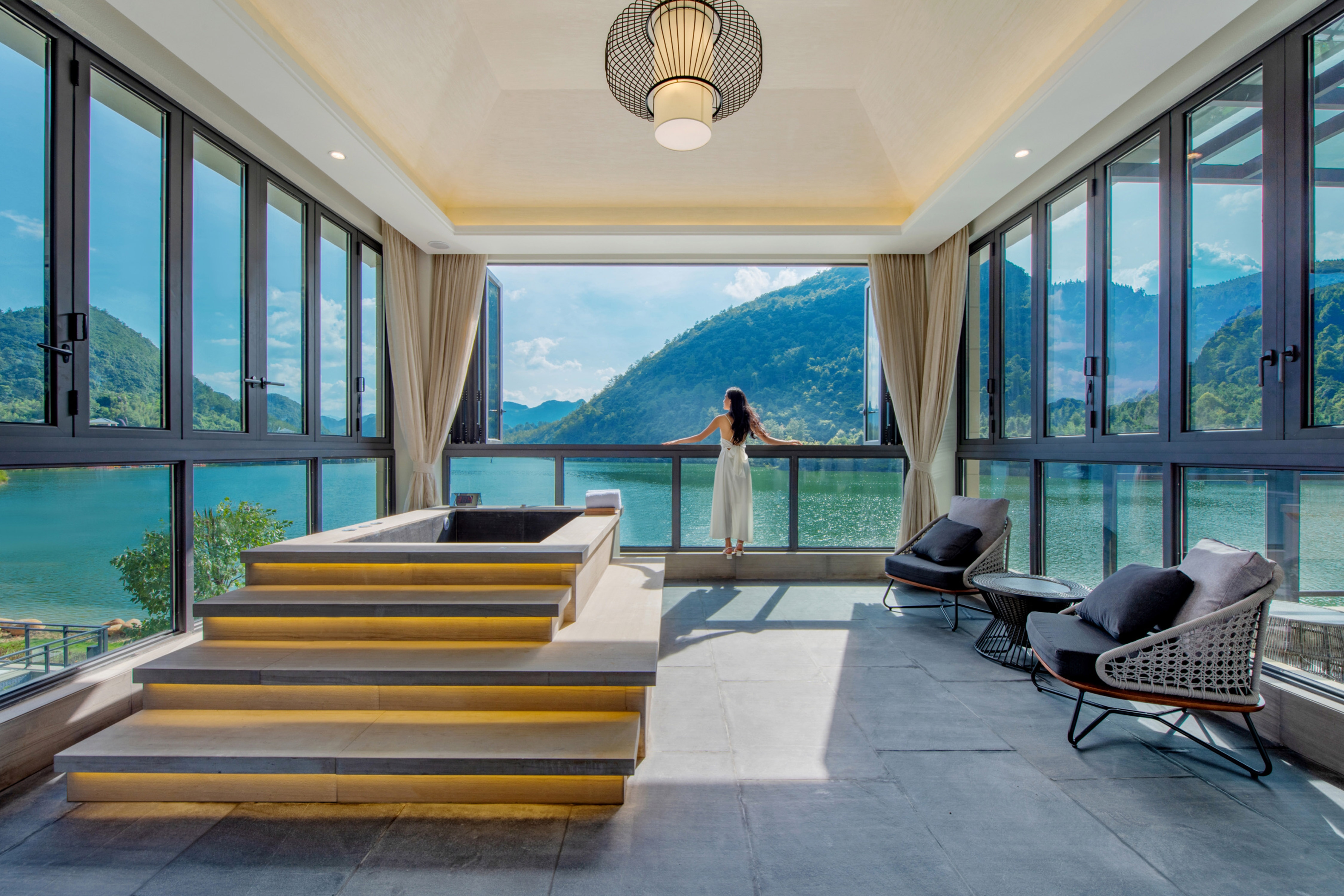 The Mountains and Lakes Villa resort is positioned in the secret area of mountains,it hidden in the wild and integrated into the lake between the mountains and rivers.