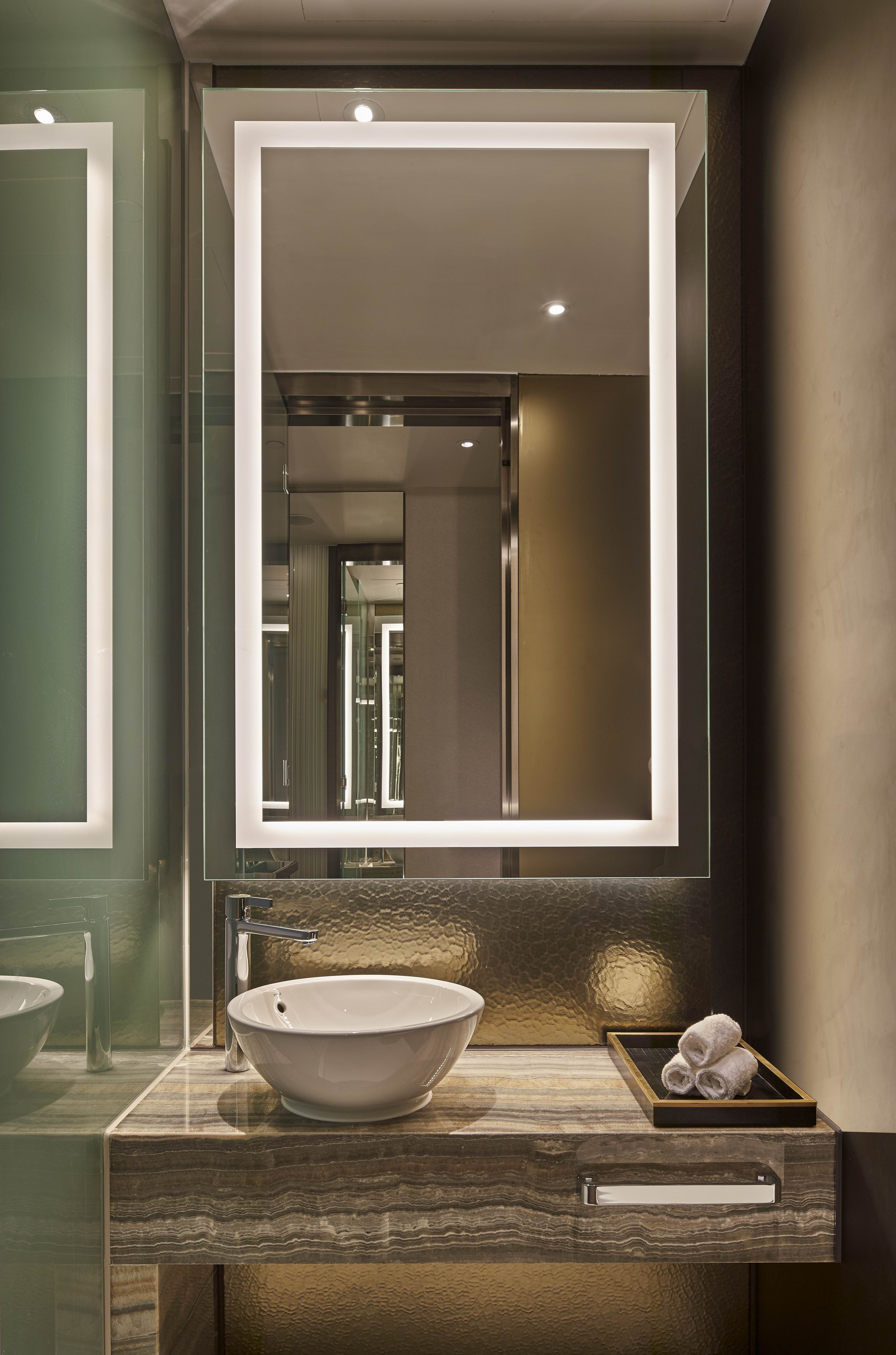 The floor plate varies up the building with 15 rooms on the largest floors. Standard rooms are 212 SF with larger VIP rooms at 300 SF. The upper floors of the hotel have views looking across the harbour towards Hong Kong Island to the south and of the Kowloon Hills to the north.