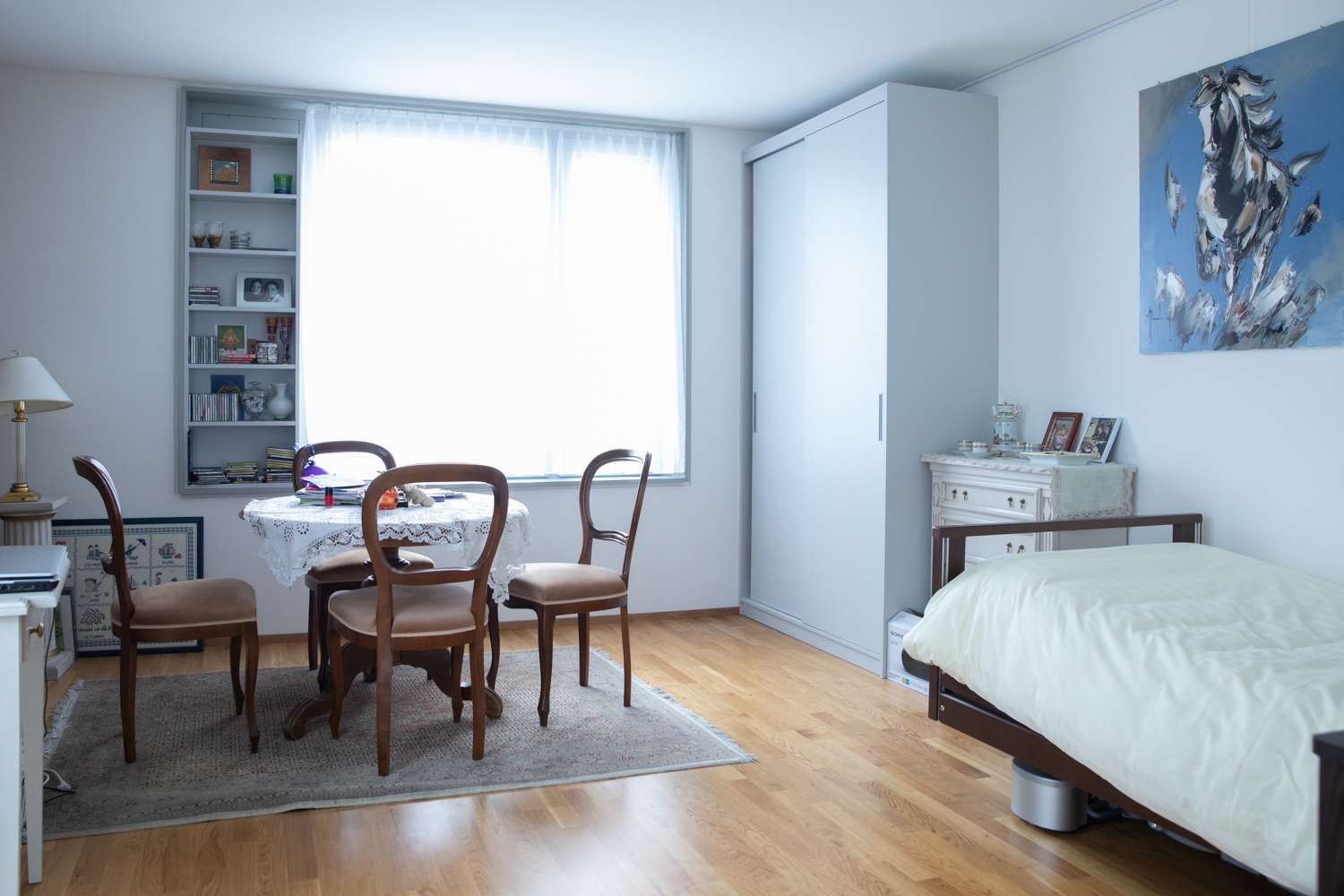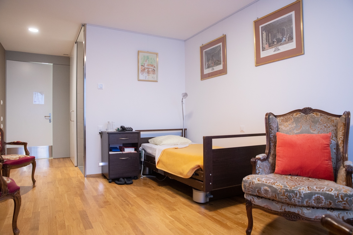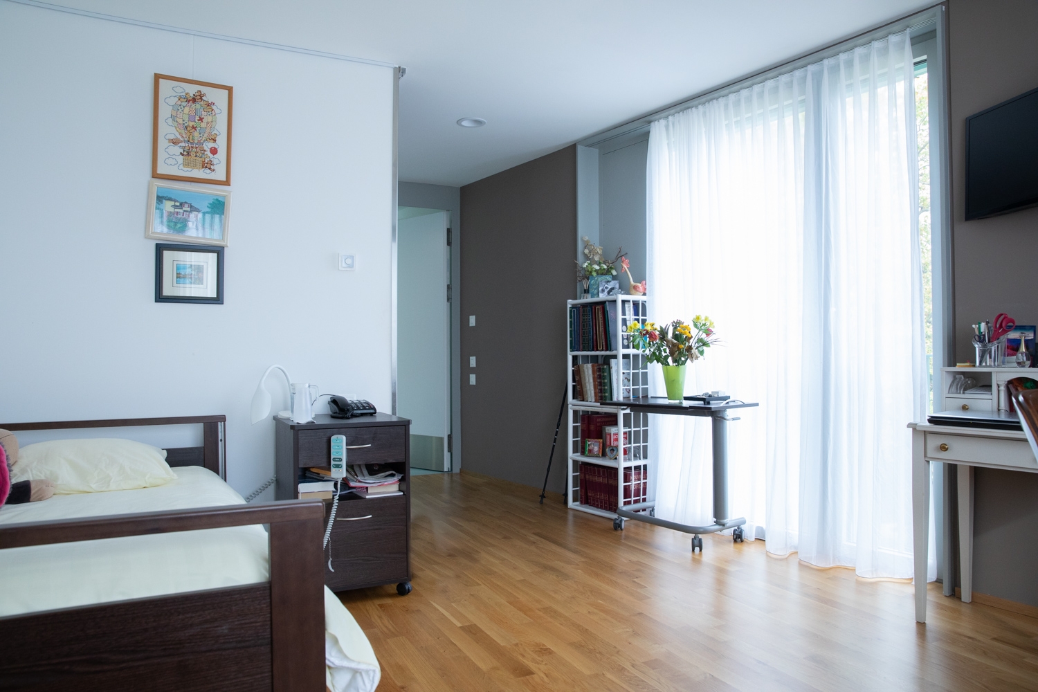 The retirement home is located in this park with the 4 buildings already built and identified by the imperative choice of the green color.