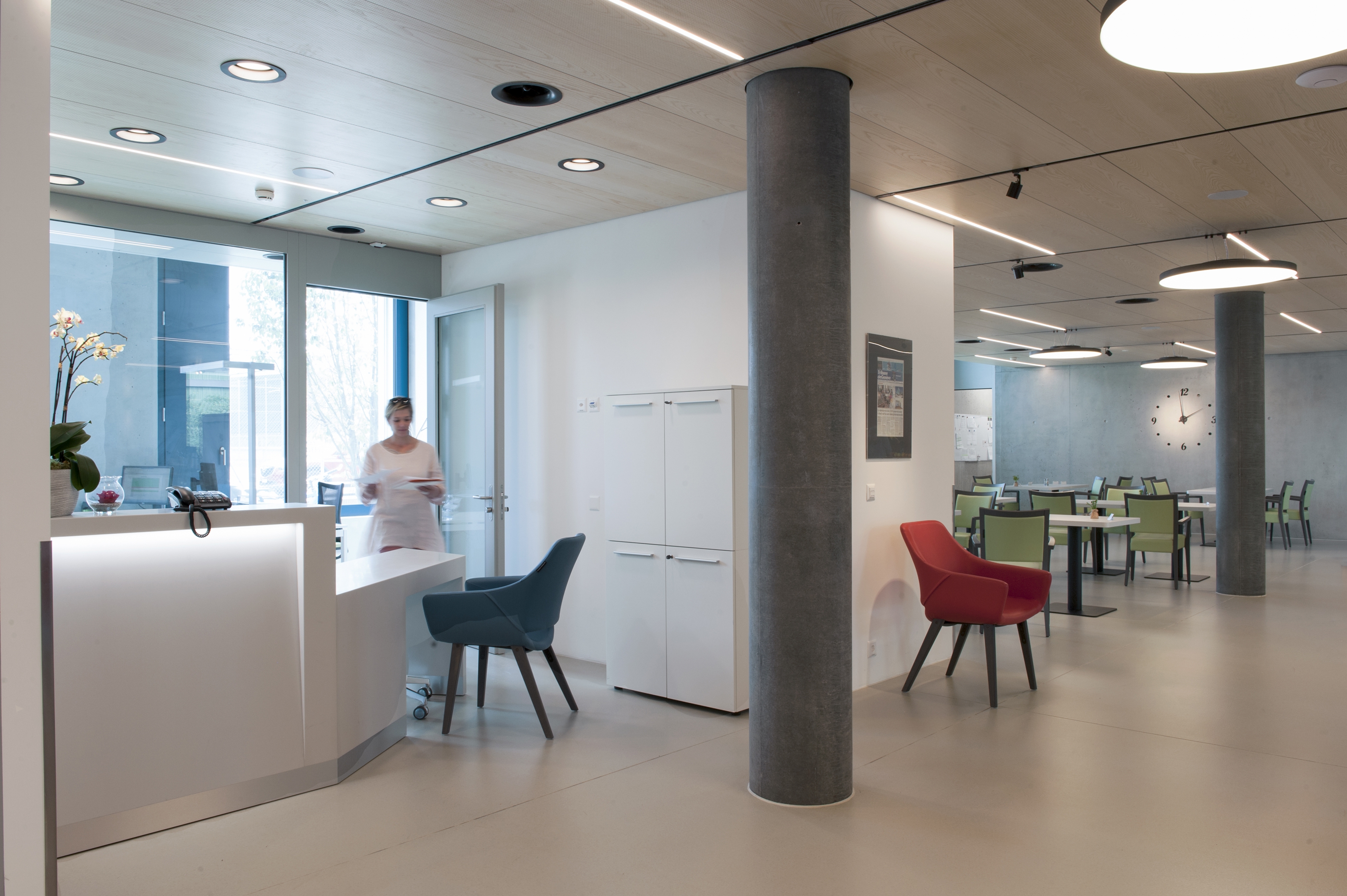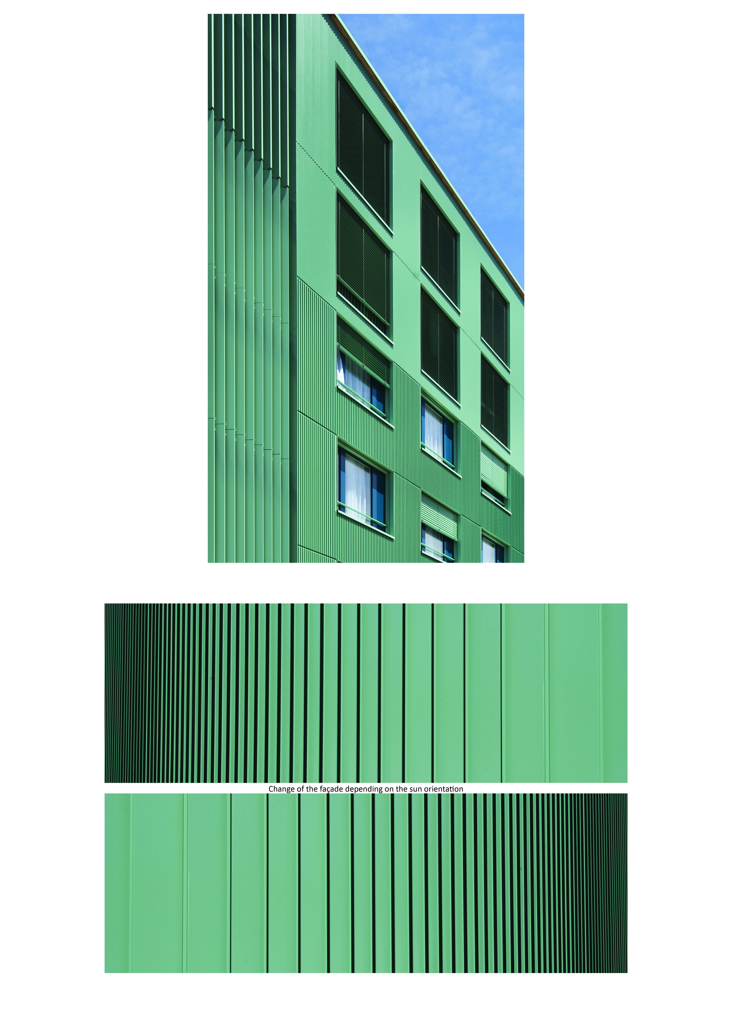 The main facades of the building are composed of 4 horizontal bands inclined in gradation. Its polyphonic quality has the power to restore at all hours of the day the variations of a transformed pictorial resonance.