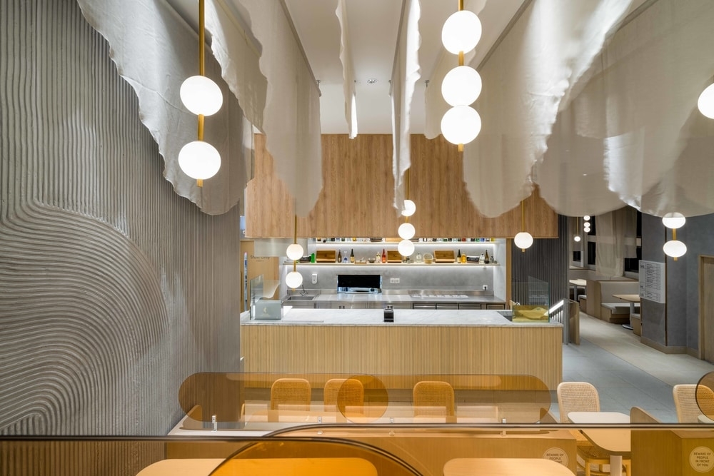 Taking inspiration from the tactile and emotive principles of 'Earth, Wind and Fire', the interior finishes and aesthetics have been carefully chosen to 'gradient upward'. Sushi Kaiyo drew a lot of inspiration from the art, authenticity and craft of Sushi. It brings the mystery of the ocean with the Japanese obsession with purity, perfection and craftsmanship.
