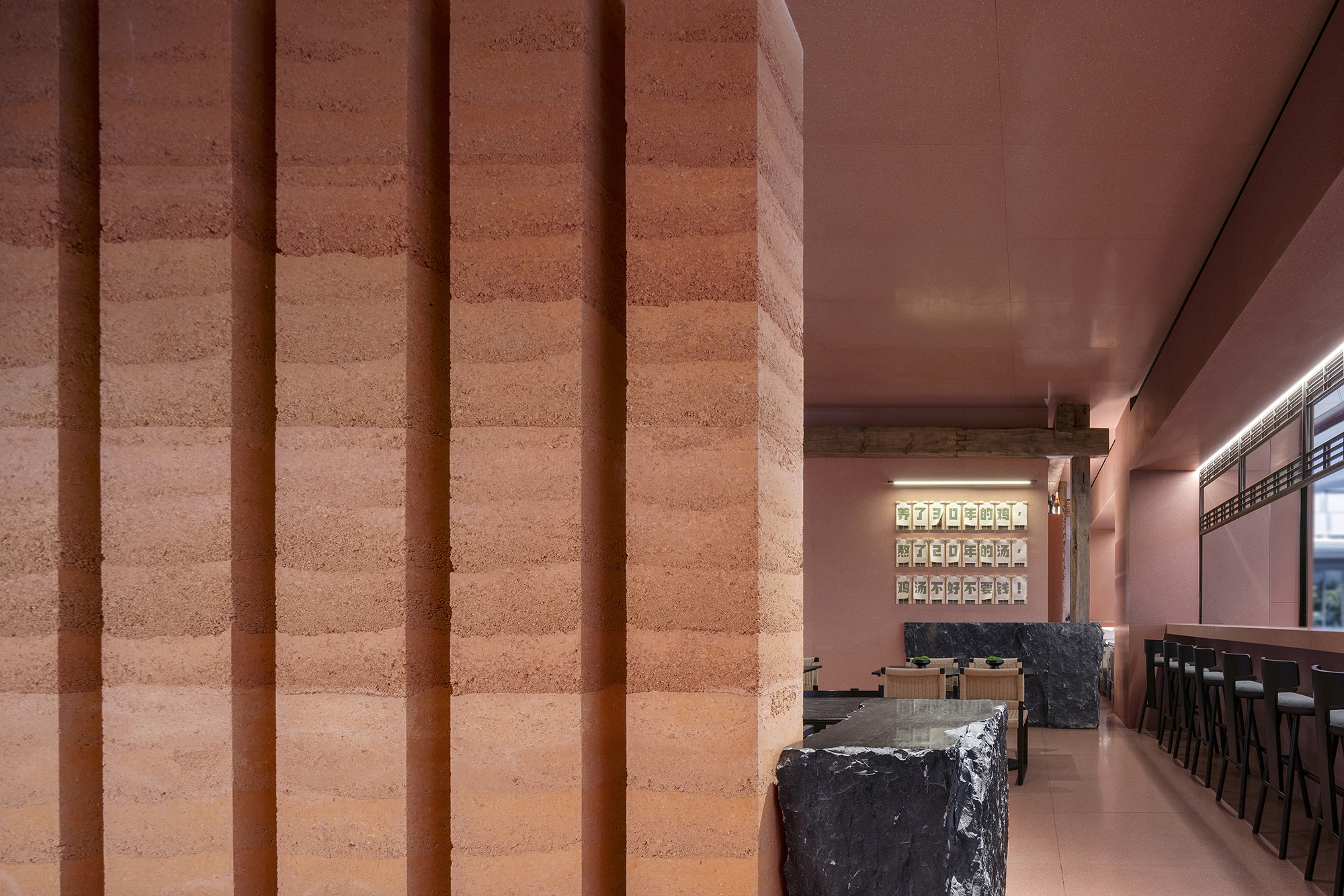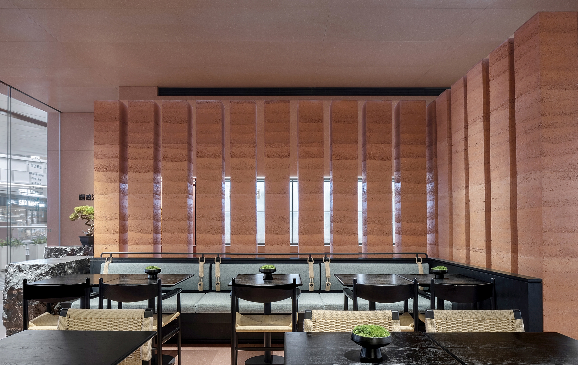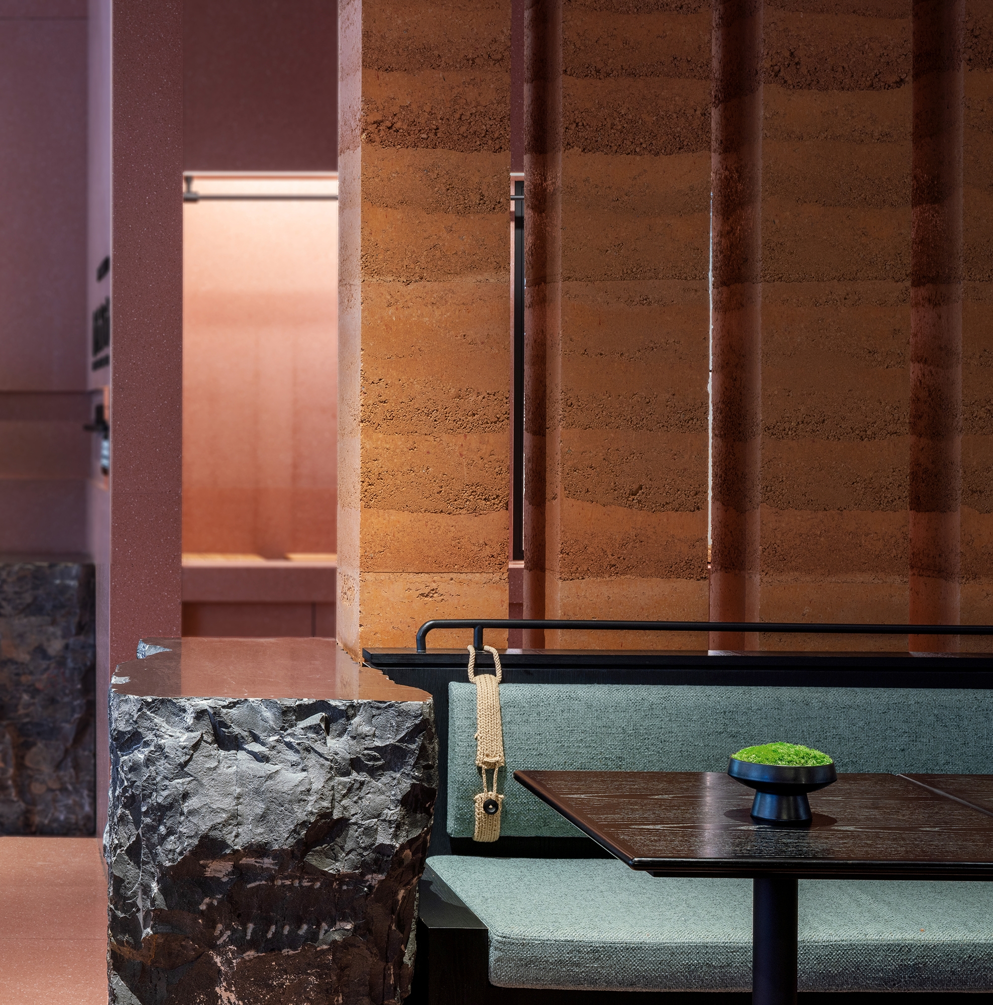 Original Chicken is a mid- and high-end Chinese catering brand that has almost 20 years of history. With consistent dedication to ingredient sources, the brand has pioneered a whole-chain standard of “farm to table” in Chinese fast food sector. It by far has more than 800 restaurants, and its first restaurant in South China is sited in Shenzhen, a young and energetic garden city. The design of this restaurant responds to the brand's philosophy of providing ecological and organic food, and draws inspiration from nature and soil.Located at the corner of the ground floor of an iconic commercial complex in Futian CBD, Shenzhen, the restaurant features the theme of “returning to farm” and explores an experimental reform of traditional Chinese food experience. The designers adopted a low saturated color palette extracted from soil, and applied it to interior surfaces made of natural materials like soil, wood, stone, cotton and hemp, in a hope to lead a new, healthy and sustainable lifestyle and guide people in the bustling city to follow their heart.