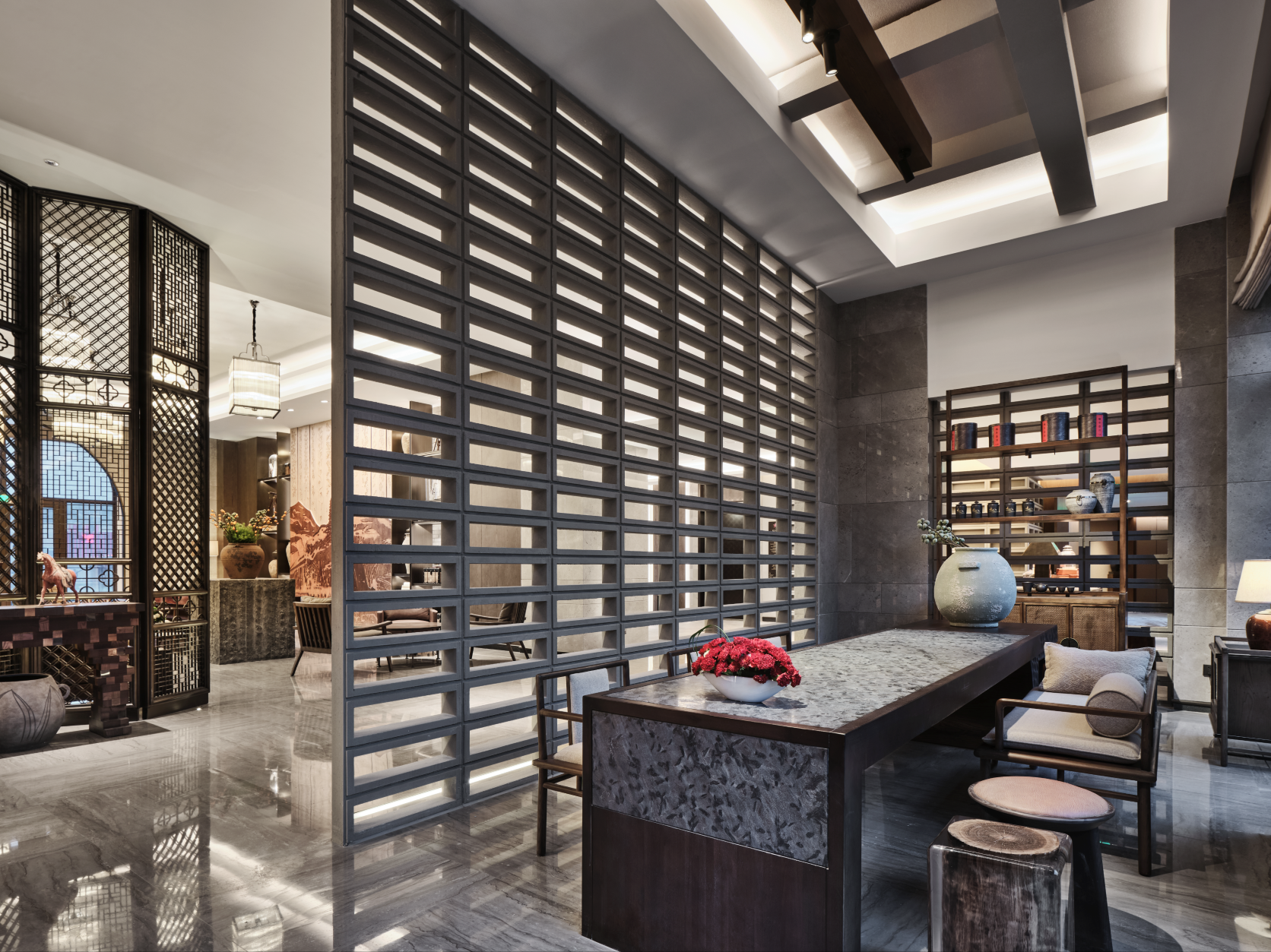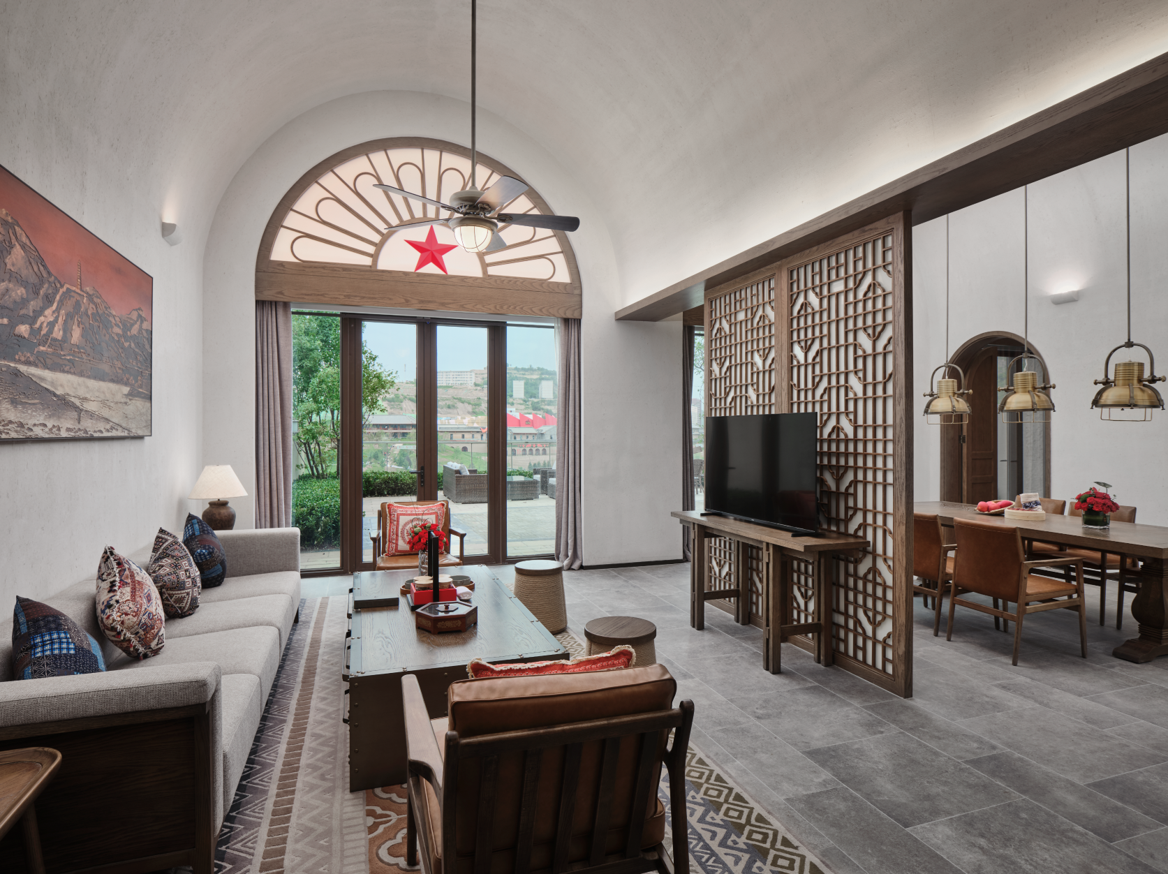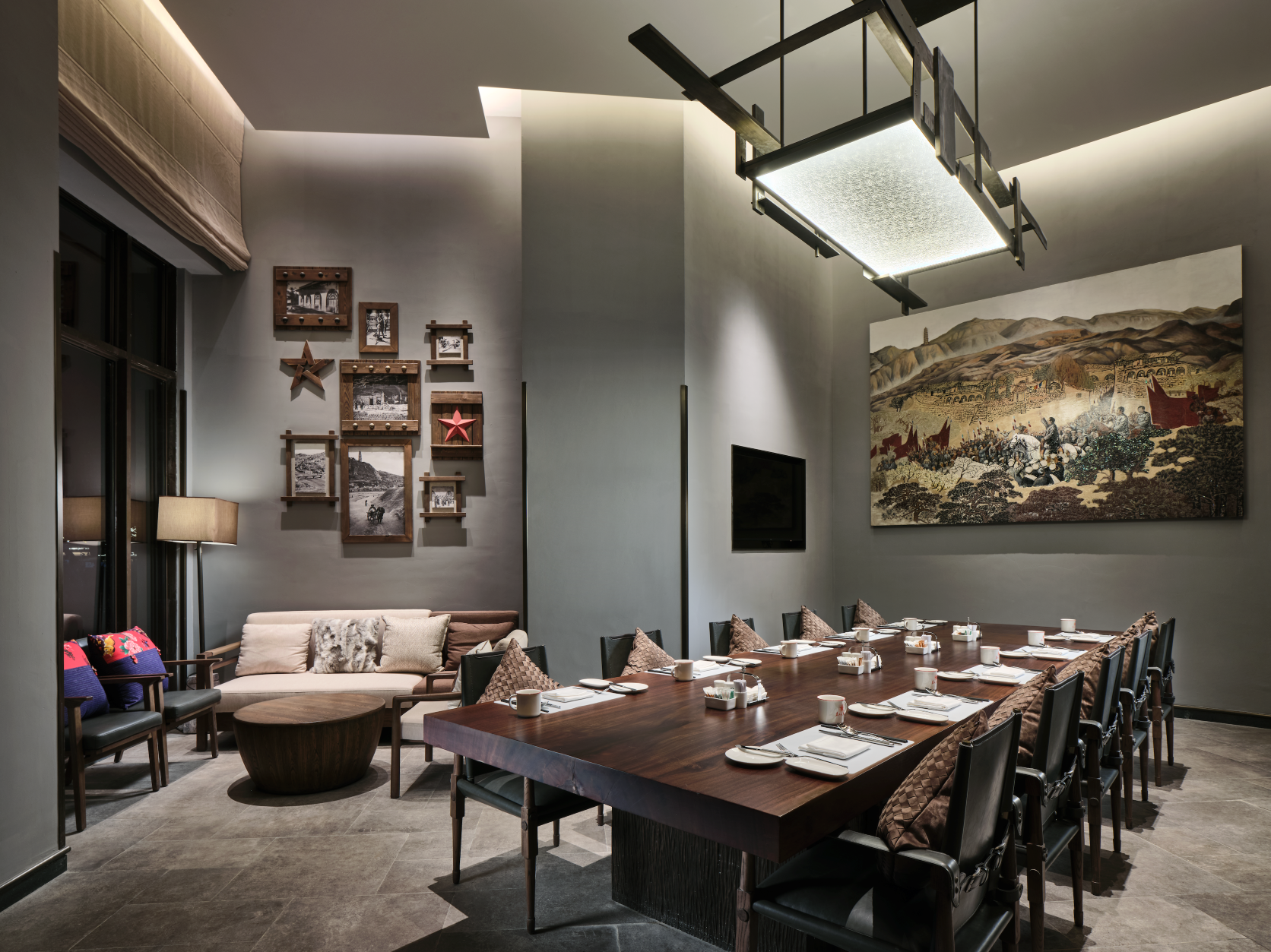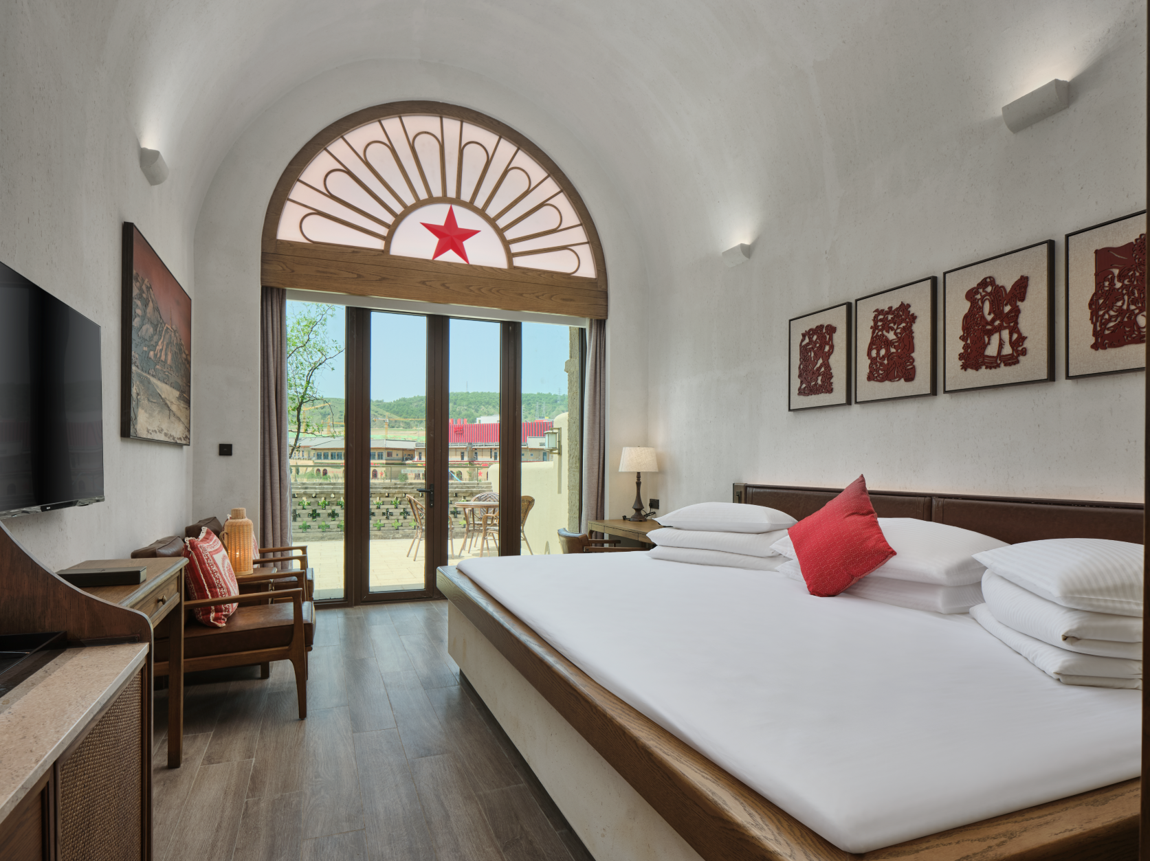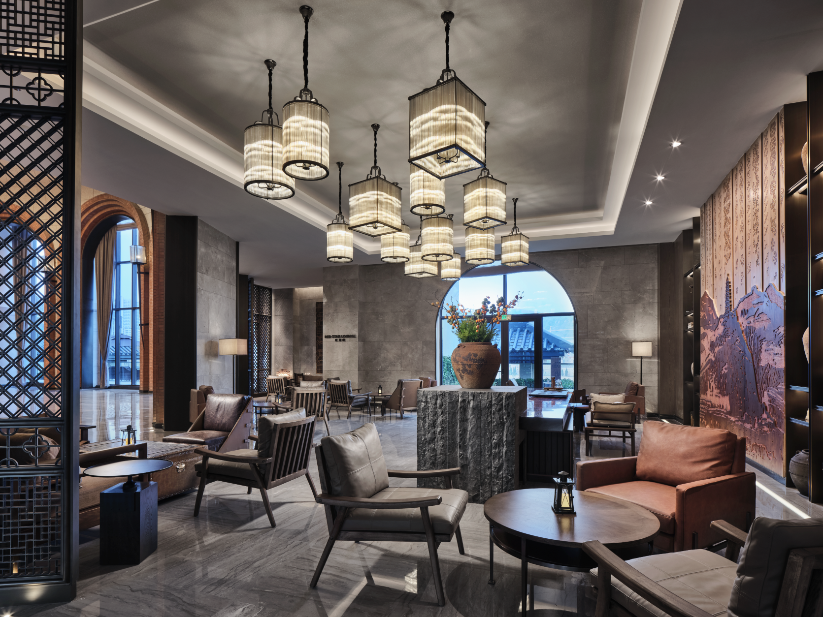 The hotel well conveys the local cultural characteristics of Yan’an, with a theme of the Chinese revolution and the spirit of revolution at Baota Mountain. The three-dimensional space of the hotel is integrated with intricate design and artistic creation, interpreting Yan’an’s red cultural spirits to modern people. The excellent traditional revolutionary virtues are characterized by positive beliefs, lofts ideals and morals, as well as reverence for hardship and frugality.