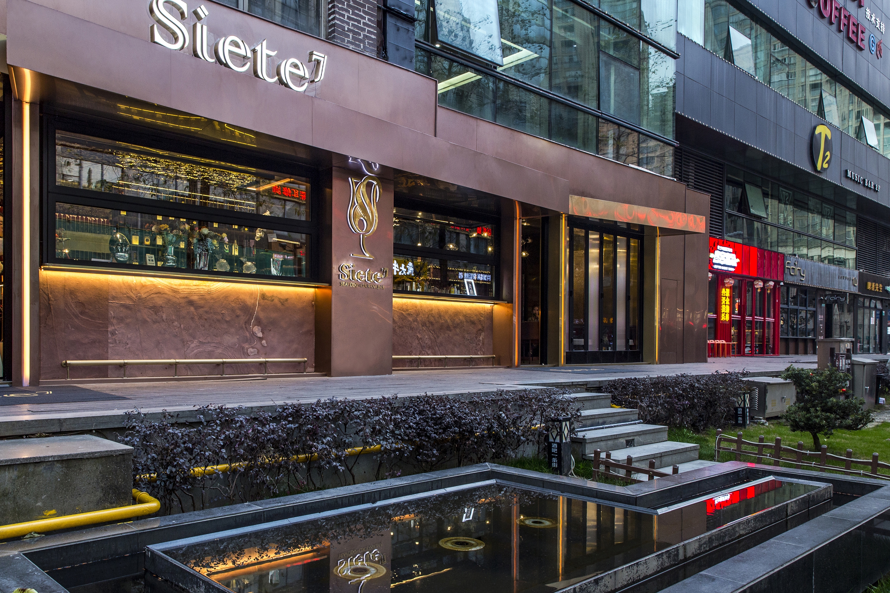 Siete7, a newly opened seafood restaurant and bar in Yuecheng District of Shaoxing, seeks for a resolution for a co-existing F&B space that inaugurate a spatial dialogue between them.