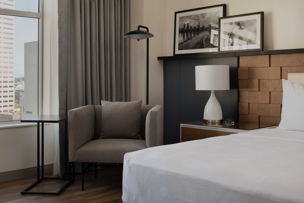 Guestrooms were designed to capture a more Nordic flavor with light woods, white walls and organic natural textures and colors. A contemporary attitude with the warmth of hand-woven wool area rugs and end-cut headboards expressed in a minimalist and fresh application.