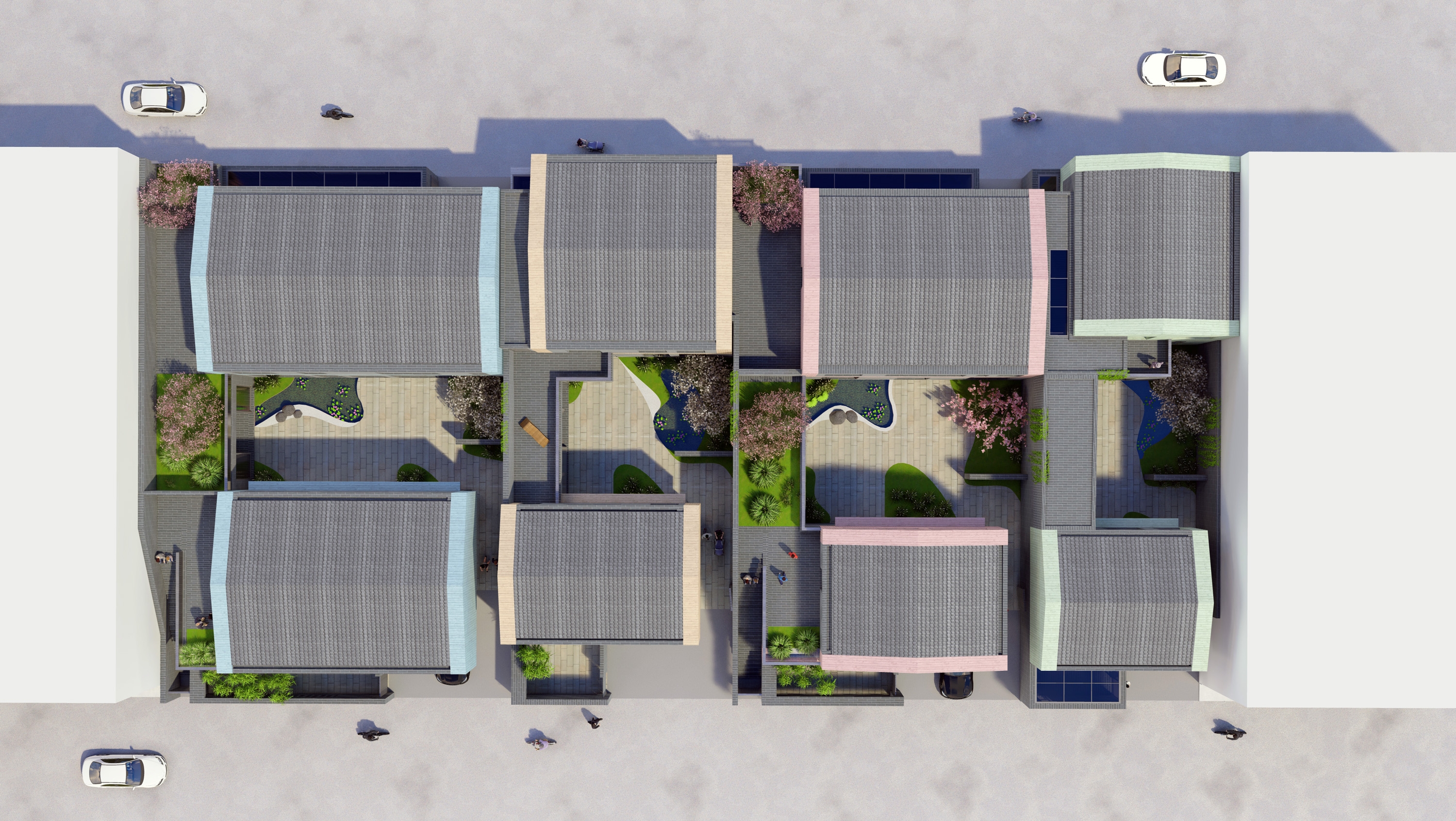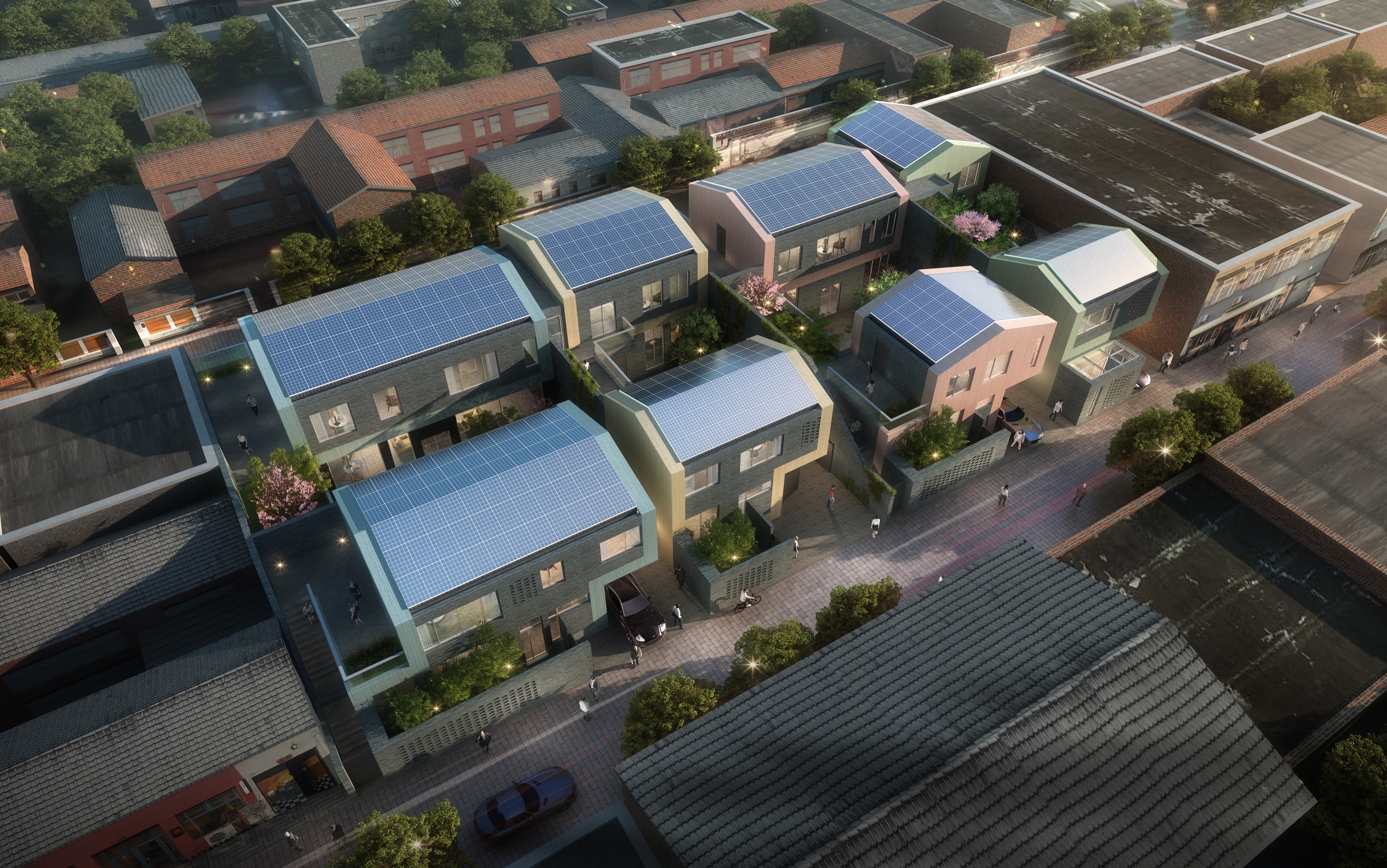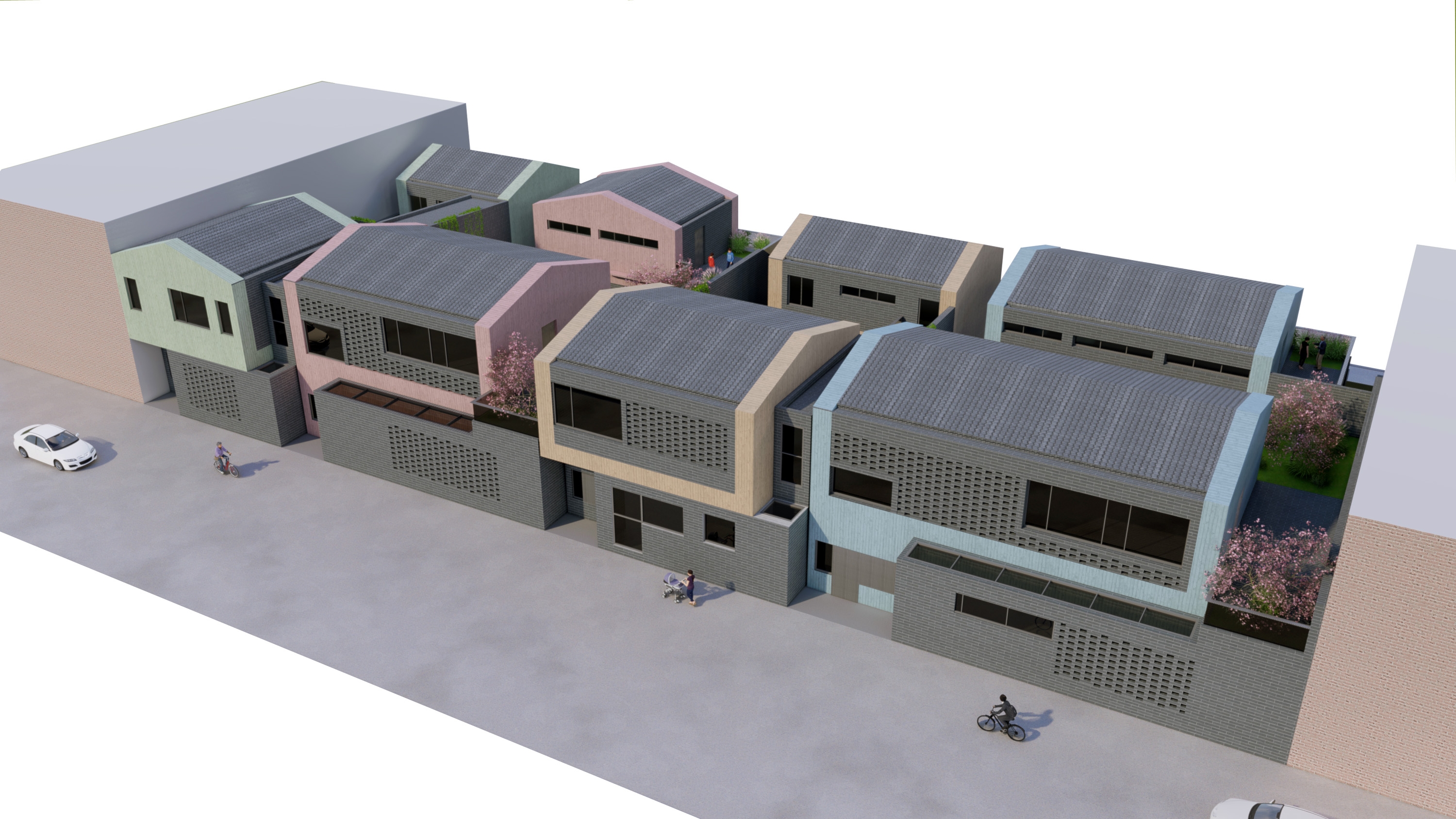 Known as the Painter’s Village, Xiaopu has undergone a series of changes in the process of urbanization in the past two decades. When an art community is naturally formed, it will bring business opportunities, so the community begins to evolve into a labeled “Art District”. In the process, the neighbourhood will lose its pristine quiet and low-cost environment that is critical to nurture creativity. As the entire area becomes commercialized, artists will gradually move away. The space thus freed up will be used by operators of arts or practitioners of emerging industries. These are the potential occupants of the homesteads regeneration. The traditional courtyard layout and gray brick walls were applied. The characteristics of the original village - sloped roofs - have also been retained, but in photovoltaic panels instead of traditional tile. The gables of each building is applied with concrete slabs of different colors, outlining the individuality of each household and enhancing openness of the main entrances along the street. Color is a remembrance of the natural painter's village, and it is also the hope of recalling a gradually lost temperature in the Internet age.
