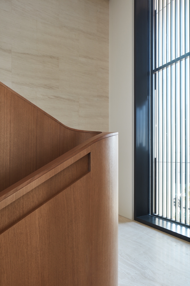 The careful selection of materials reinforces the seamless nature of the house. Cool white travertine floors, white oak timber and white walls accommodate the family's extensive artwork collections.