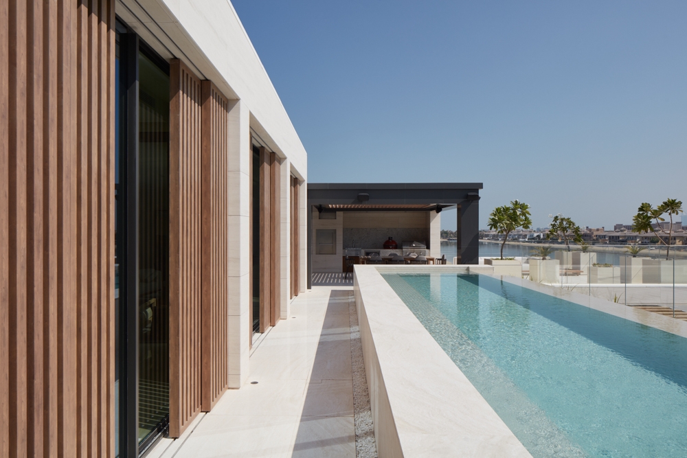 KJ Villa is an elegant family home on Palm Jumeirah. It is conceived to maximise the potential of its sought-after location whilst providing a contemporary family environment and fluid living space.