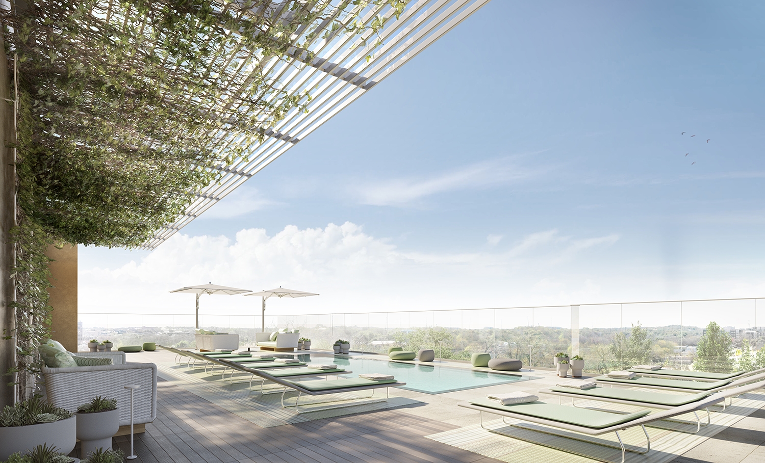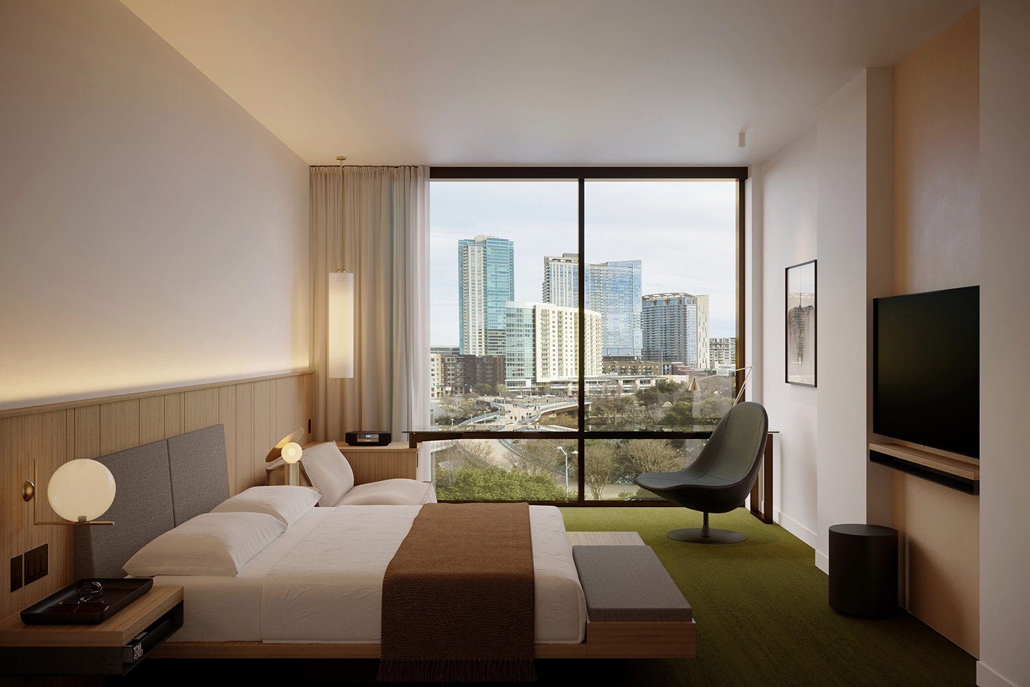 The Loren at Ladybird Lake is a premier hotel and residential project at the urban intersection of Riverside Drive and Lamar Boulevard in Austin, Texas. This mixed-use project features 108 luxury hotel rooms, 24 residences, an interior event space, a rooftop restaurant, and a pool. The 5-star luxe hotel is uniquely situated between nearby nature trails, parkland, and the ultimate convenience of proximity to downtown Austin. The hotel and residence portions are bridged together horizontally and split with a paseo and an open-air passage. The limited height of the building allows for a more intimate scale of the interiors to bring warmth to a sophisticated space designed with local craftsmanship and built-in furniture that steps away from a typical hotel stay and into a boutique yet comfortable hospitality experience. Recently topped out in July of this year, the Loren at Lady Bird Lake is set to open in 2022.