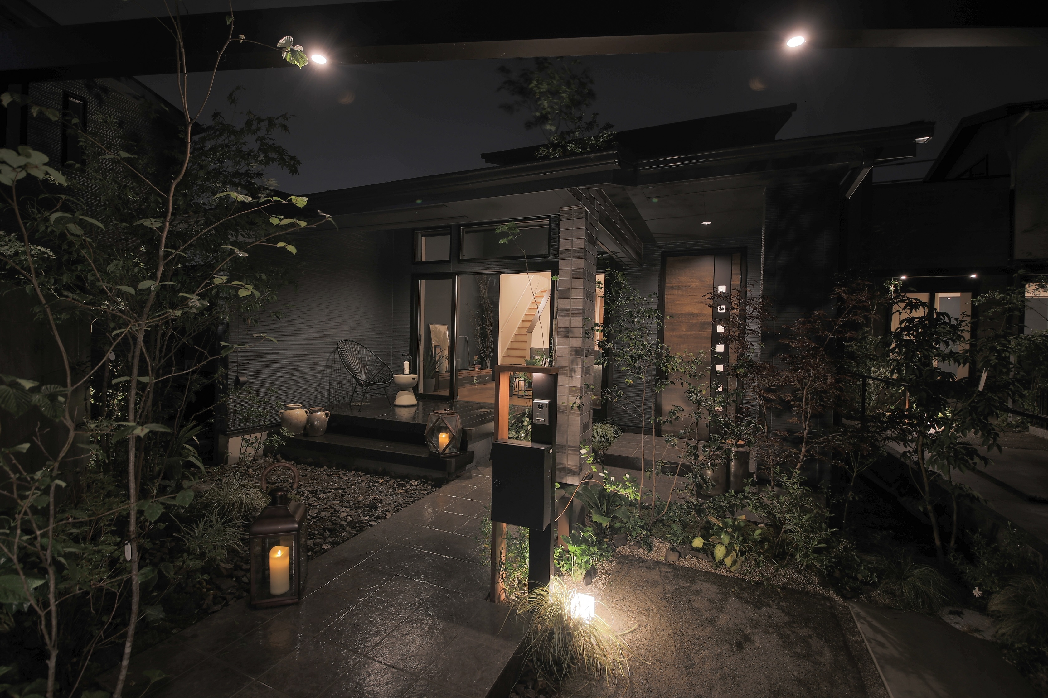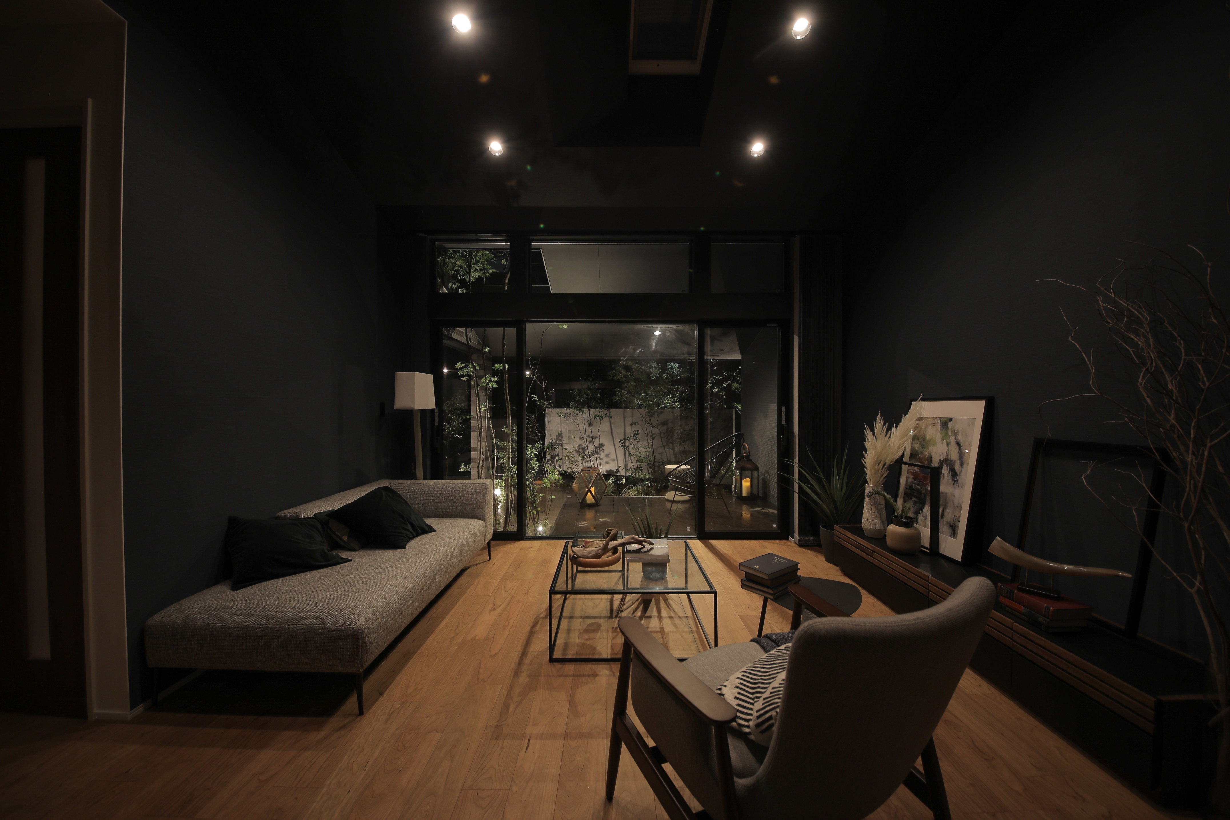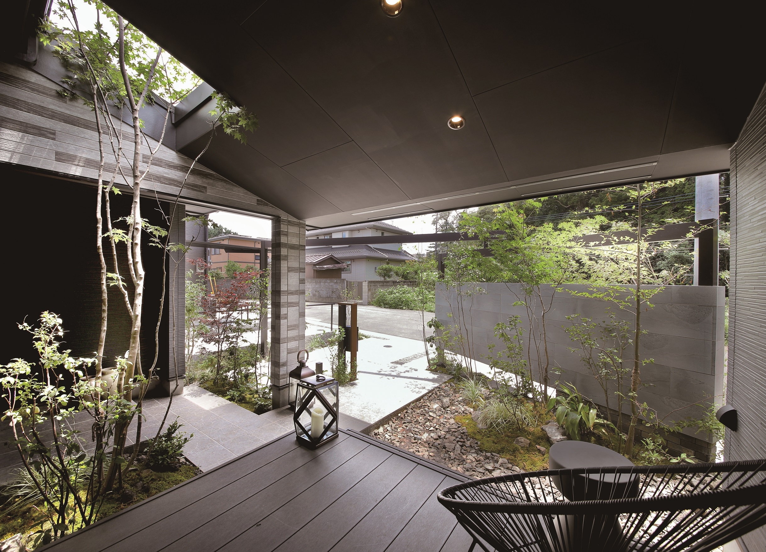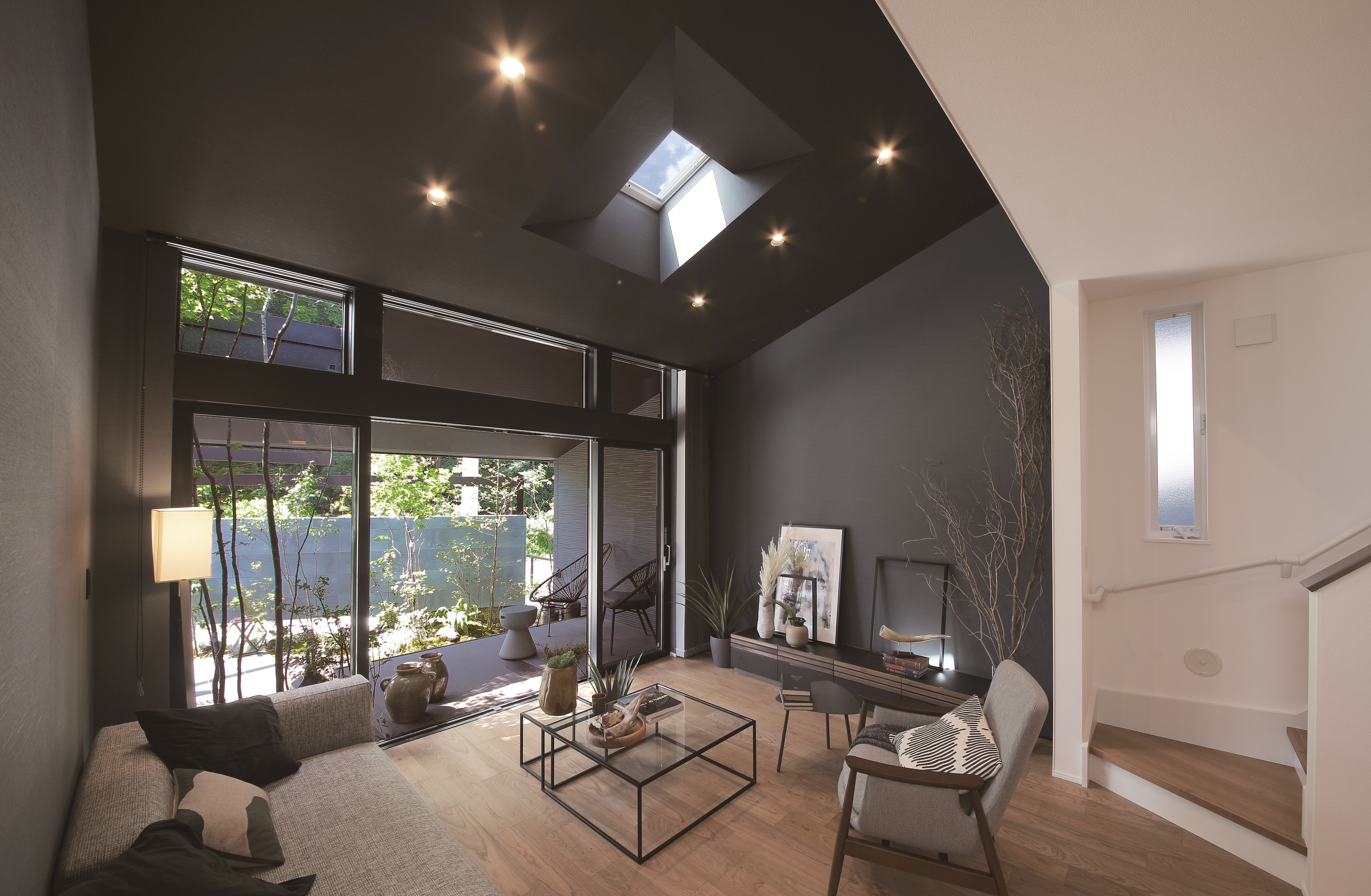 This is a four-lot house for sale adjacent to a land readjustment site. The garden and living room were planned as one unit, creating a "SORA-IMA" where the boundary between the inside and outside is ambiguous and one feels close to nature. The living room is surrounded by the open space of the garden, and the garden is enclosed and arranged in a way that allows the residents to enjoy a new place to live. We proposed a new form of suburban residence that blends in with the city while maintaining a sense of privacy.