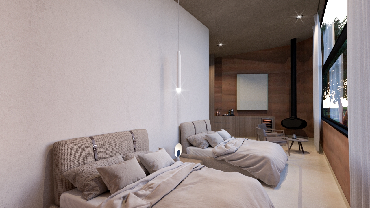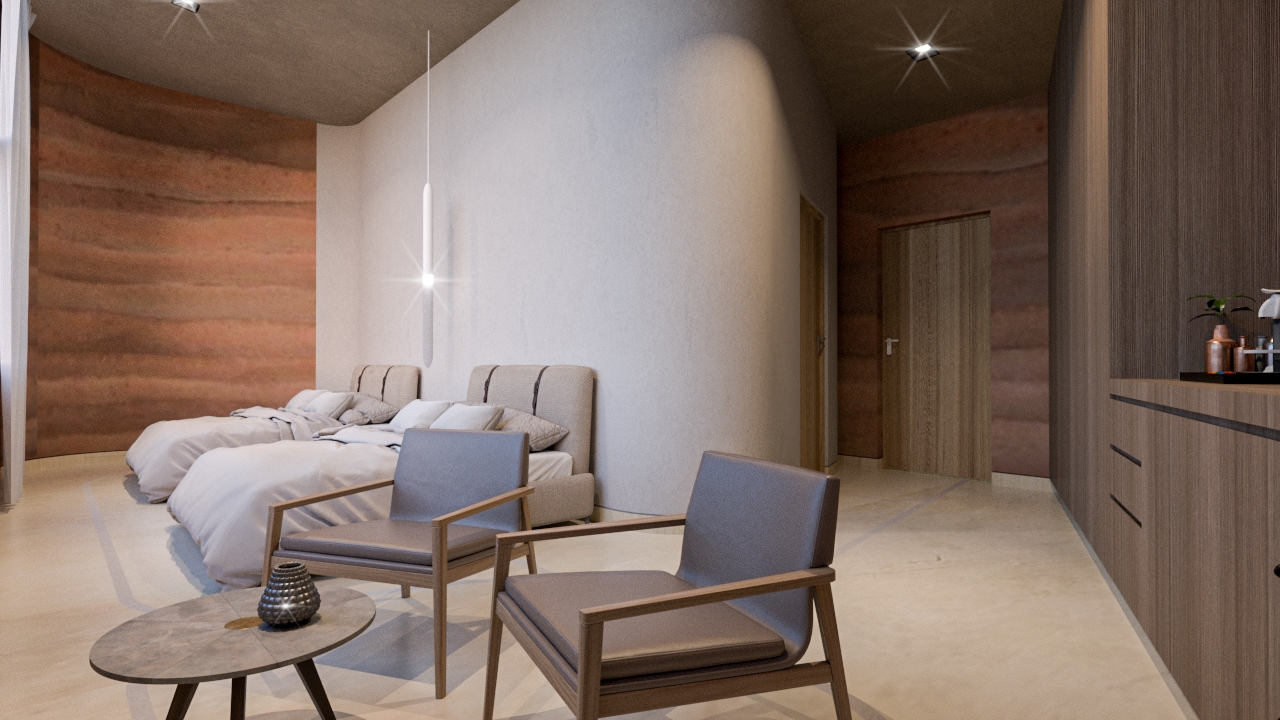 The project seeks to develop lodging spaces where will have an intimate connection with nature through architecture and interior design, generating personal well-being by inviting them to immerse themselves in the landscape. Sustainability was taken into account, implementing methods and techniques, having a lower environmental impact. The process was developed taking into account different important aspects, such as the understanding of the place, user, design guidelines and feasibility.