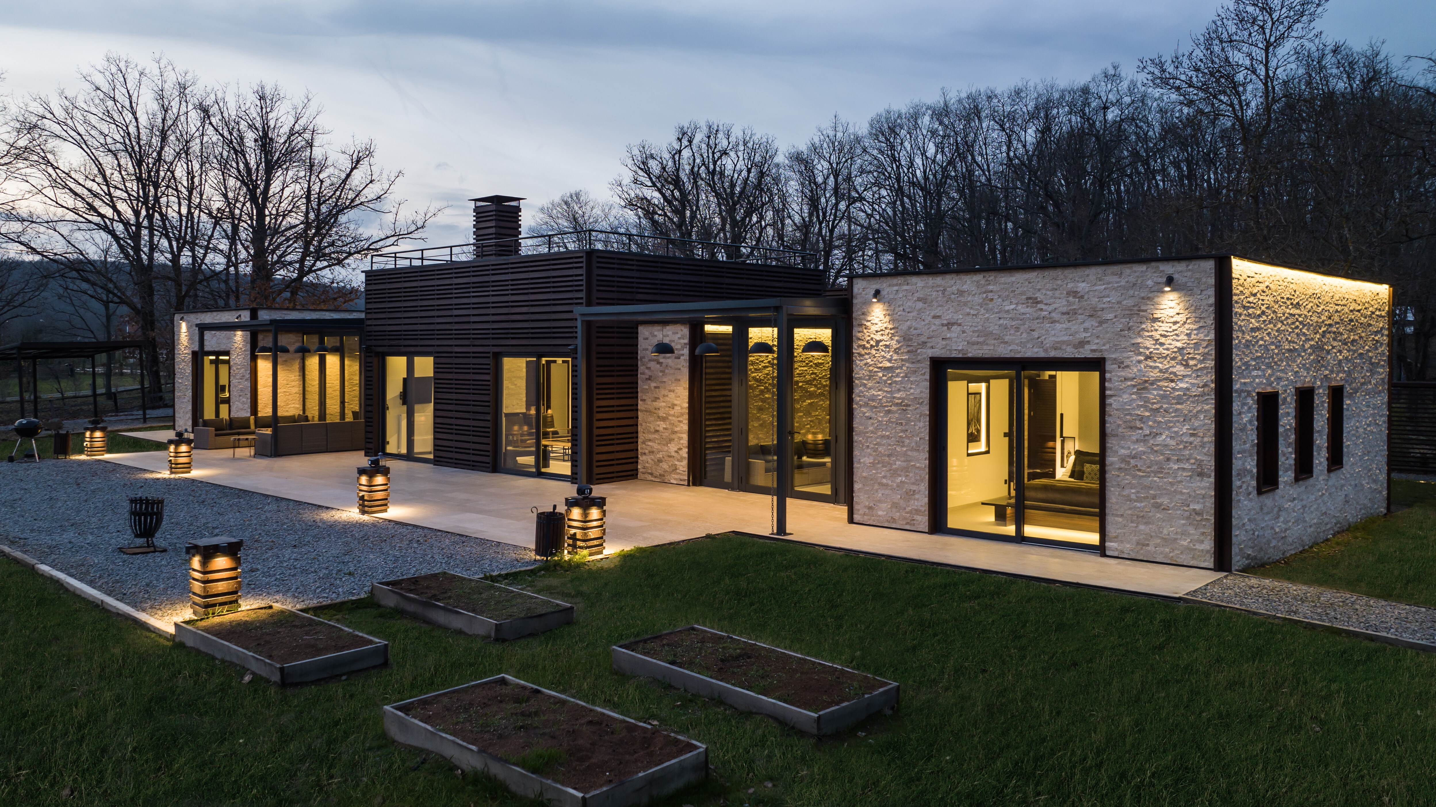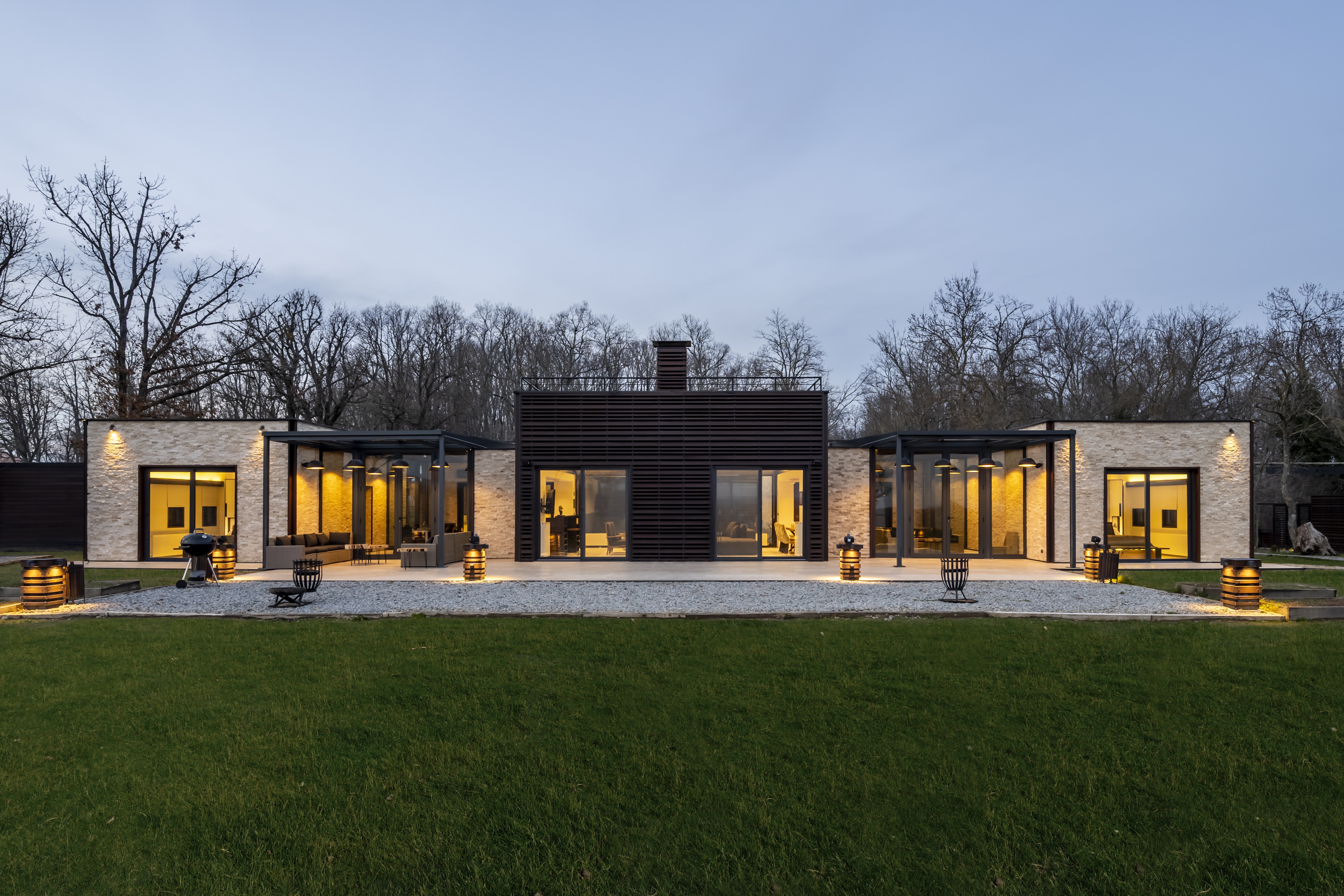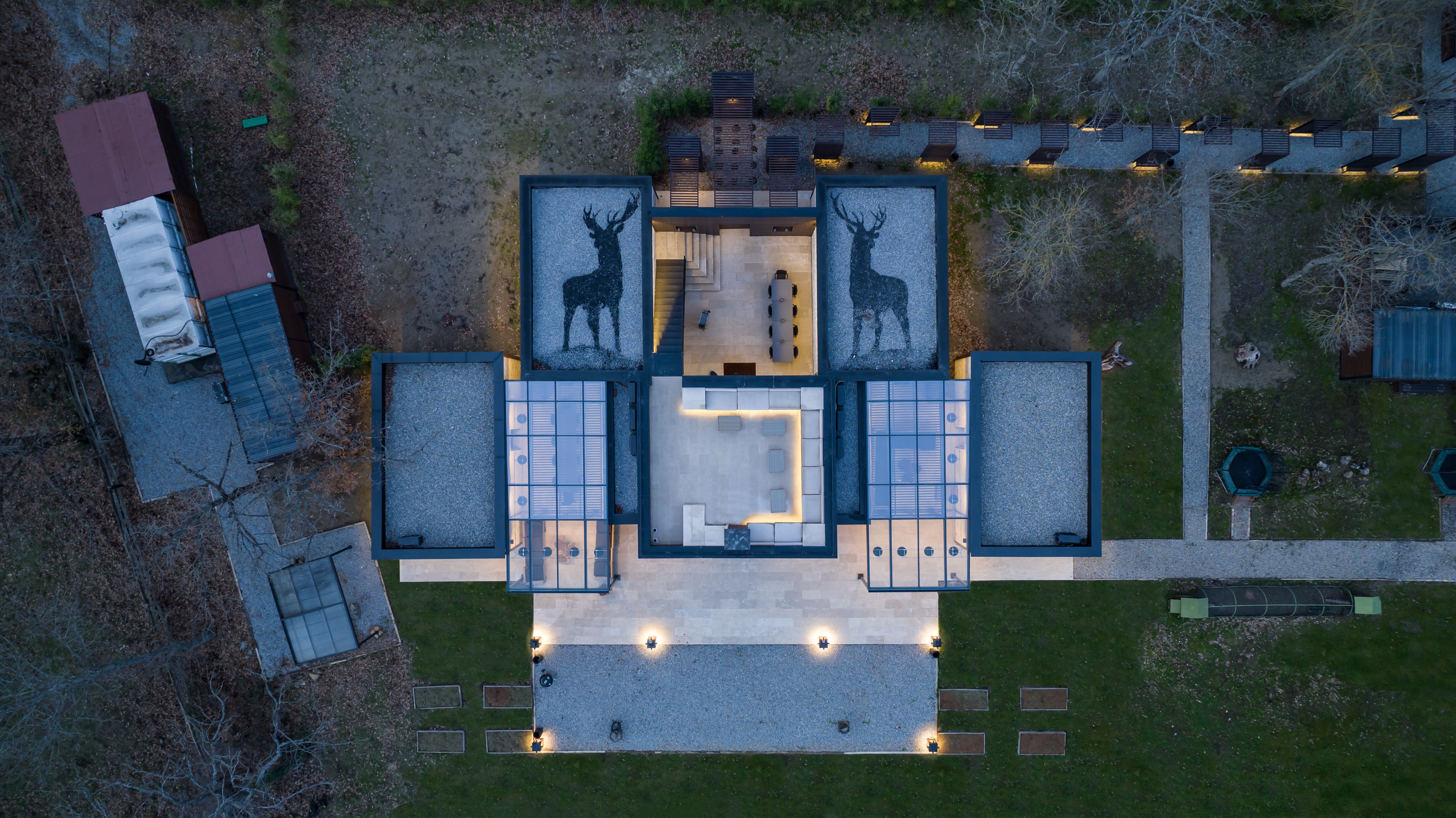 The Lucky Deer Club House is a farm house located on a picturesque 10-acre farm. The property is designed to provide guests with a luxurious and relaxing accommodation experience, surrounded by the natural beauty of the countryside. The main house is a perfect blend of rustic and modern design elements, creating a warm and inviting atmosphere for guests to enjoy. The building's exterior features a combination of wood and stone, which blends seamlessly with the natural surroundings. The use of natural materials gives the house a sense of connection to the land and creates a sense of harmony between the building and the environment. One of the main highlights of the main house is the open-plan living room, which is centered around a cozy fireplace. This space is designed to be the heart of the house, where guests can gather to relax and socialize. Large windows provide ample natural light and stunning views of the surrounding nature, creating a sense of indoor-outdoor living. The main house has four bedrooms, each with its own bathroom, providing ample space for families or groups of friends.