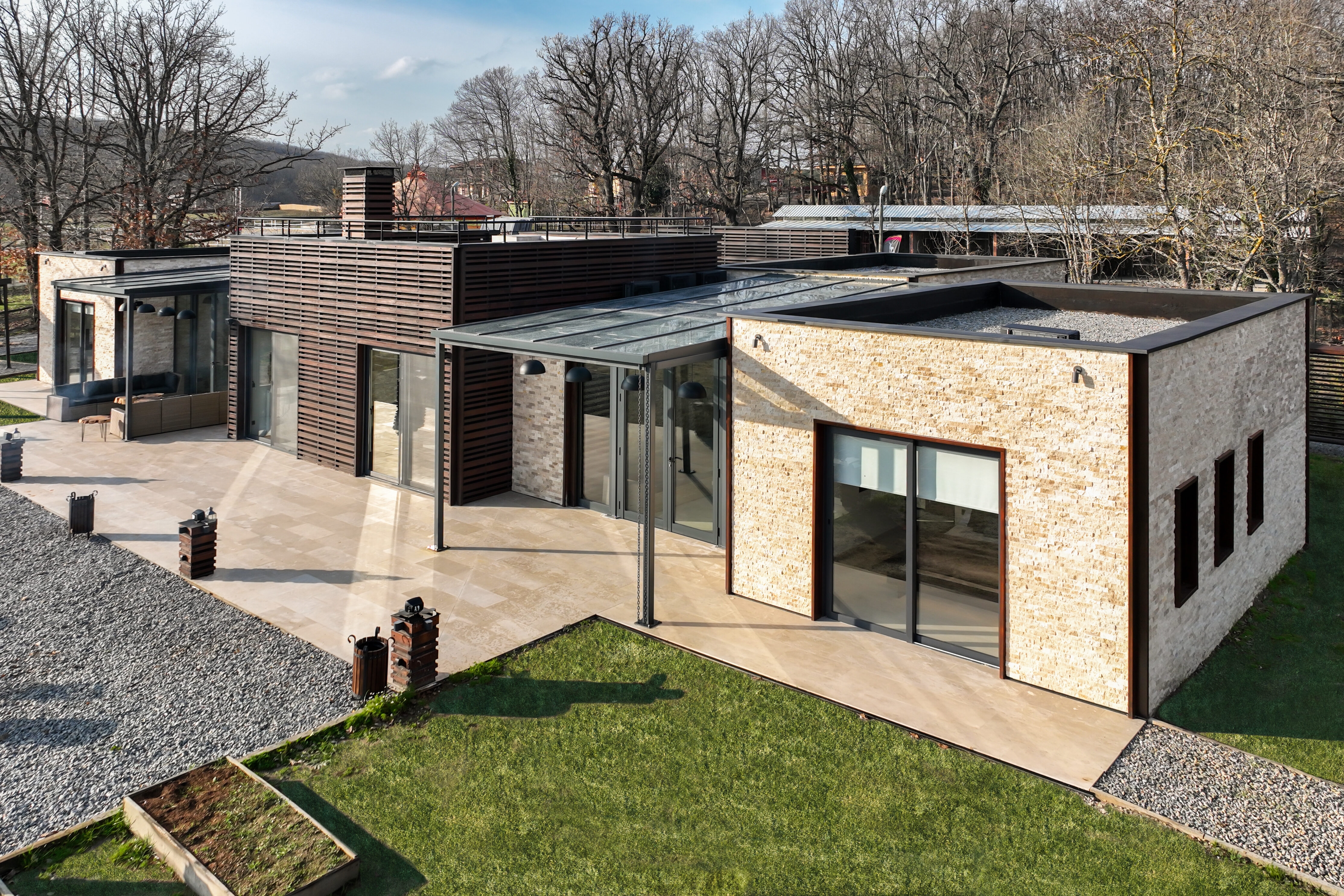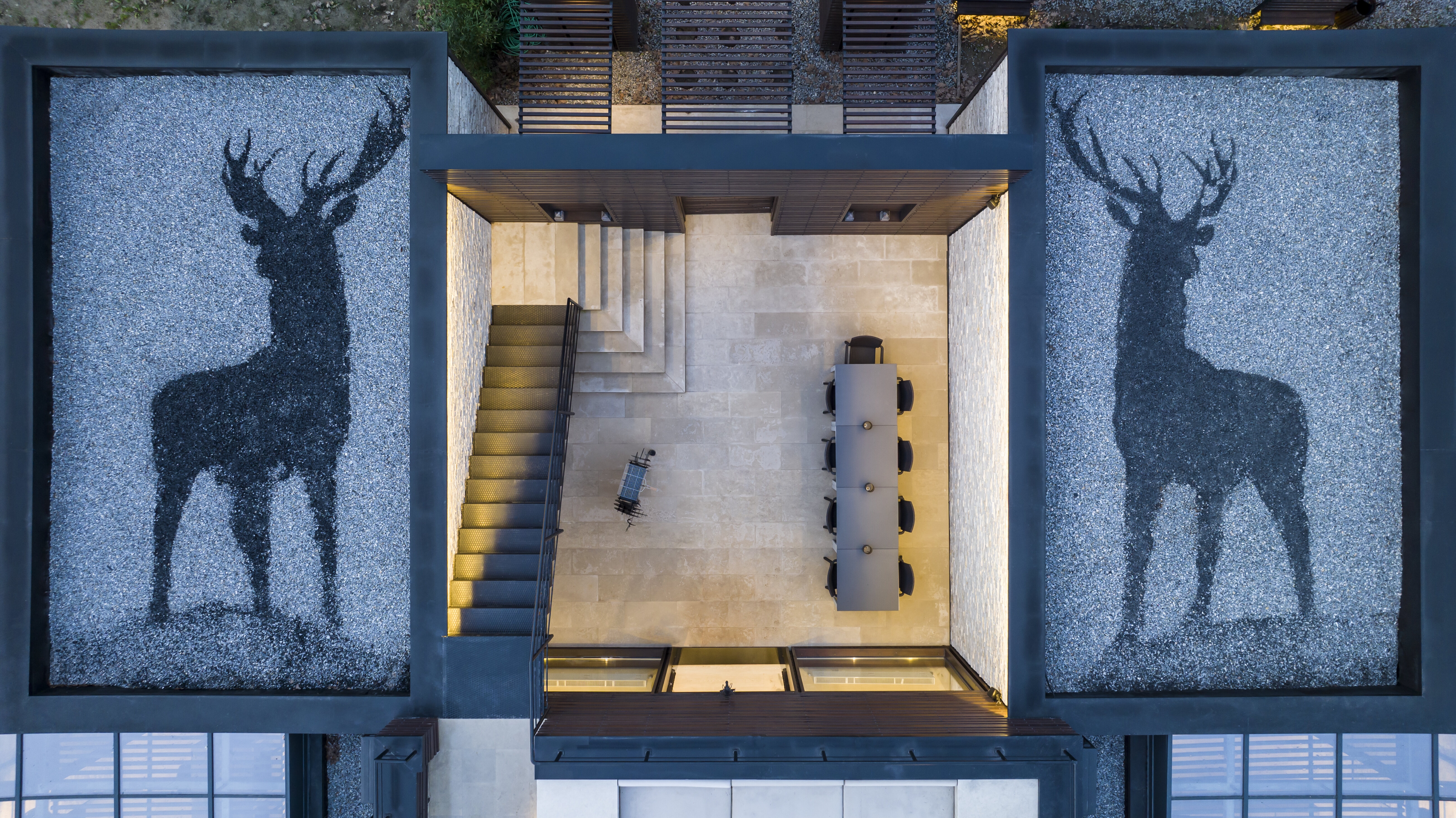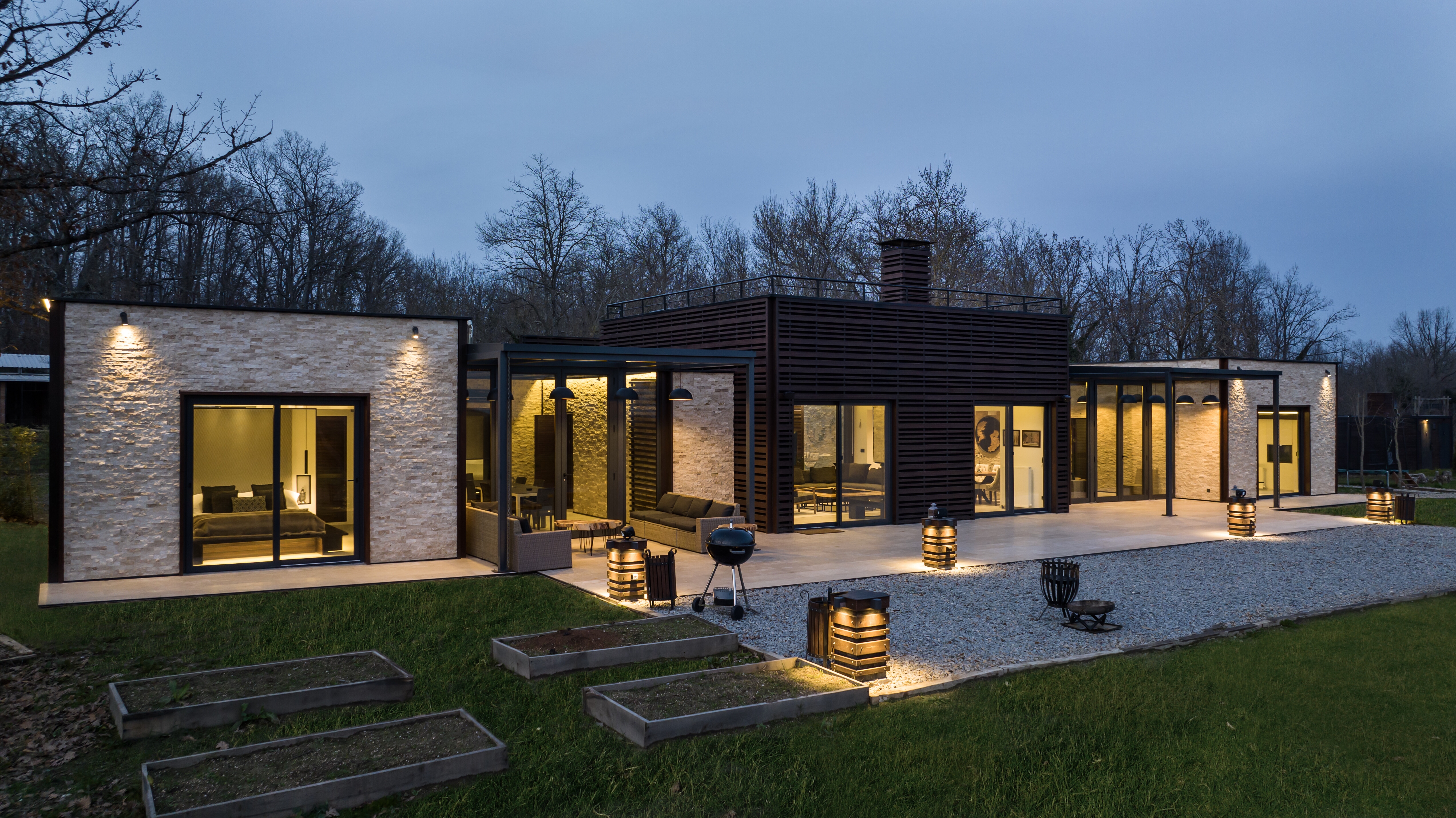 The Lucky Deer Club House is a farm house located on a picturesque 10-acre farm. The property is designed to provide guests with a luxurious and relaxing accommodation experience, surrounded by the natural beauty of the countryside. The main house is a perfect blend of rustic and modern design elements, creating a warm and inviting atmosphere for guests to enjoy. The building's exterior features a combination of wood and stone, which blends seamlessly with the natural surroundings. The use of natural materials gives the house a sense of connection to the land and creates a sense of harmony between the building and the environment. One of the main highlights of the main house is the open-plan living room, which is centered around a cozy fireplace. This space is designed to be the heart of the house, where guests can gather to relax and socialize. Large windows provide ample natural light and stunning views of the surrounding nature, creating a sense of indoor-outdoor living. The main house has four bedrooms, each with its own bathroom, providing ample space for families or groups of friends.