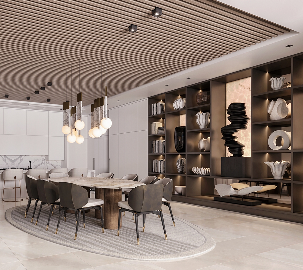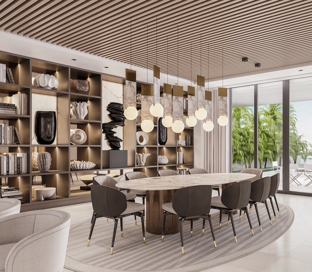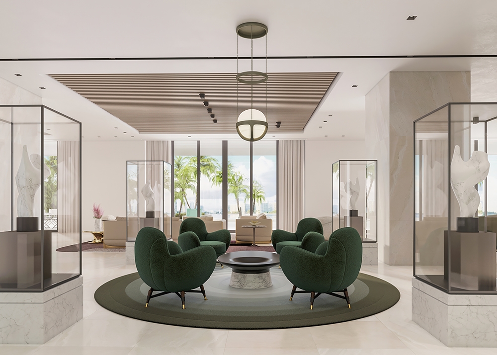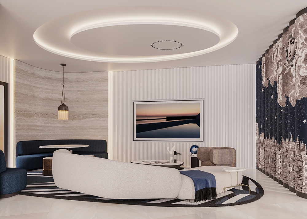 STAR ISLAND is a 9500 sqft waterfront home located in Miami Beach, Florida. Our team is designing the interiors of the new-construction home, paying special attention to the needs of our clients who are avid art collectors & wish to showcase their collection. We have helped them edit their collection--reinterpreting it to maximize impact & help it work in harmony with the interiors. This concept-driven design will feature a custom wall divider by Fornasetti that will provide an art-focused transition from "day to night." We have also concentrated on the importance of lighting the space, including moving walls & incorporating the latest lighting technology. Our team also recognized the need to create a monumental staircase in the double-height foyer--opening up the existing closed staircase to bring in additional light & grandeur. The structure is being reinforced to accommodate the changes.
