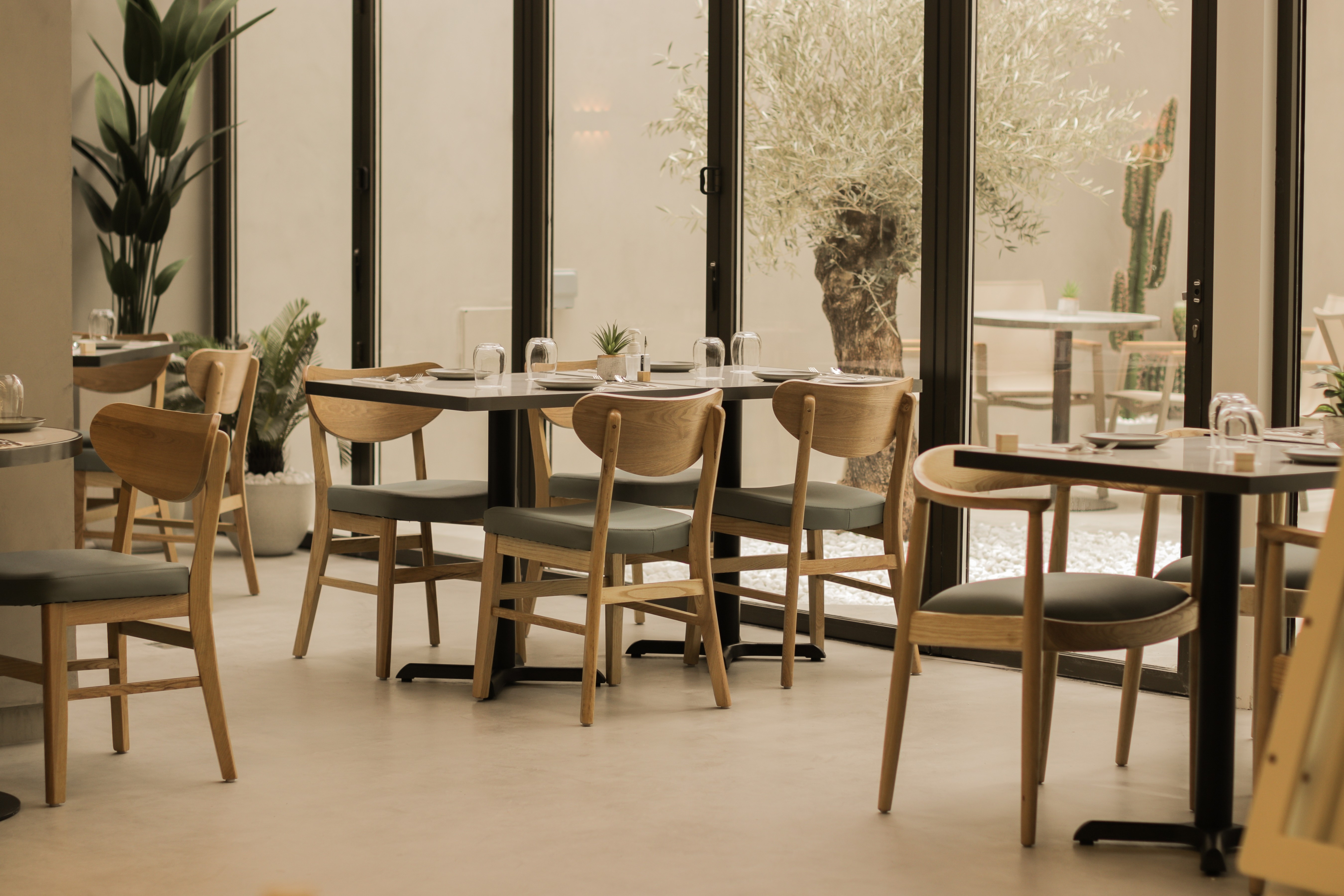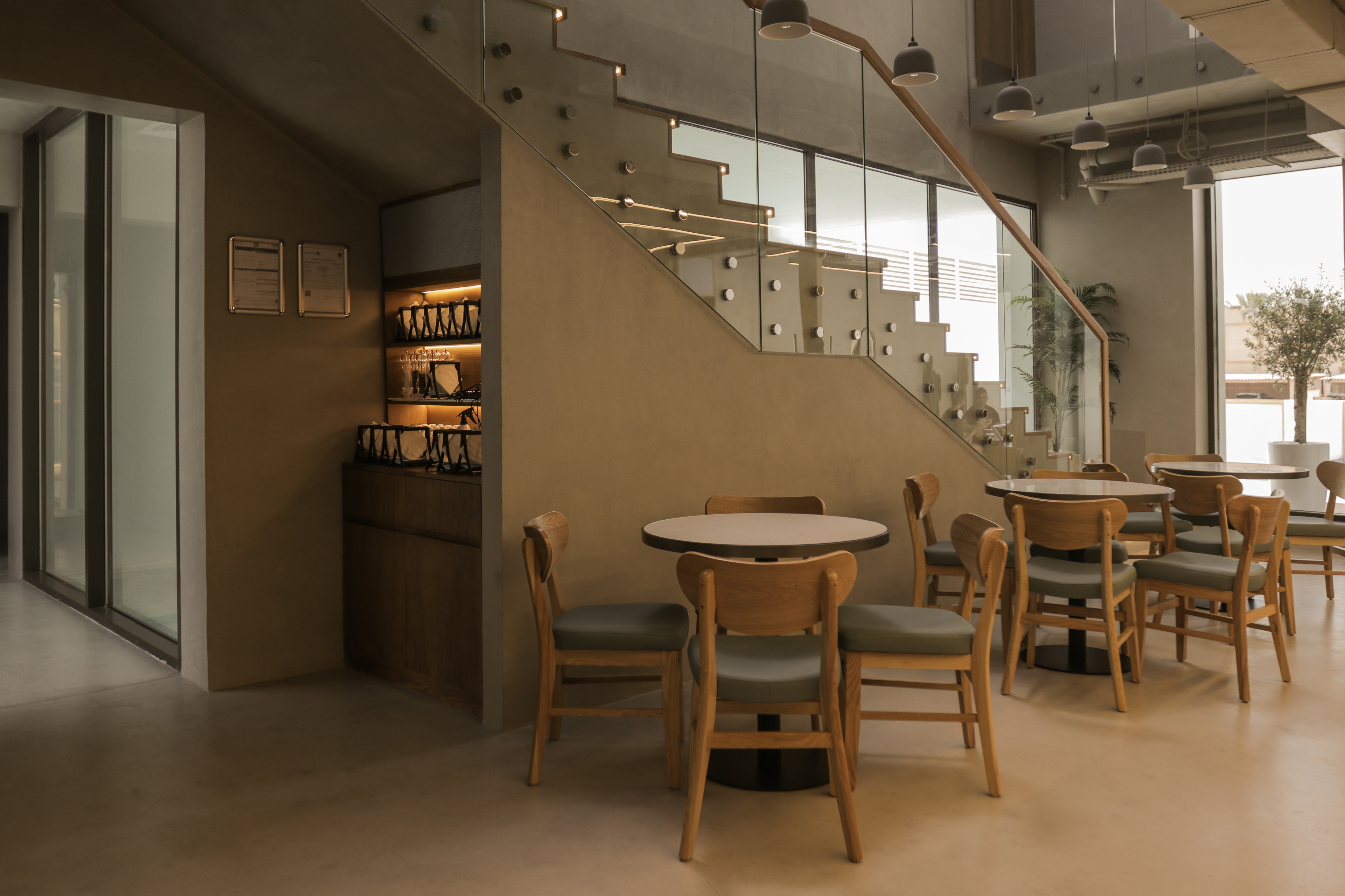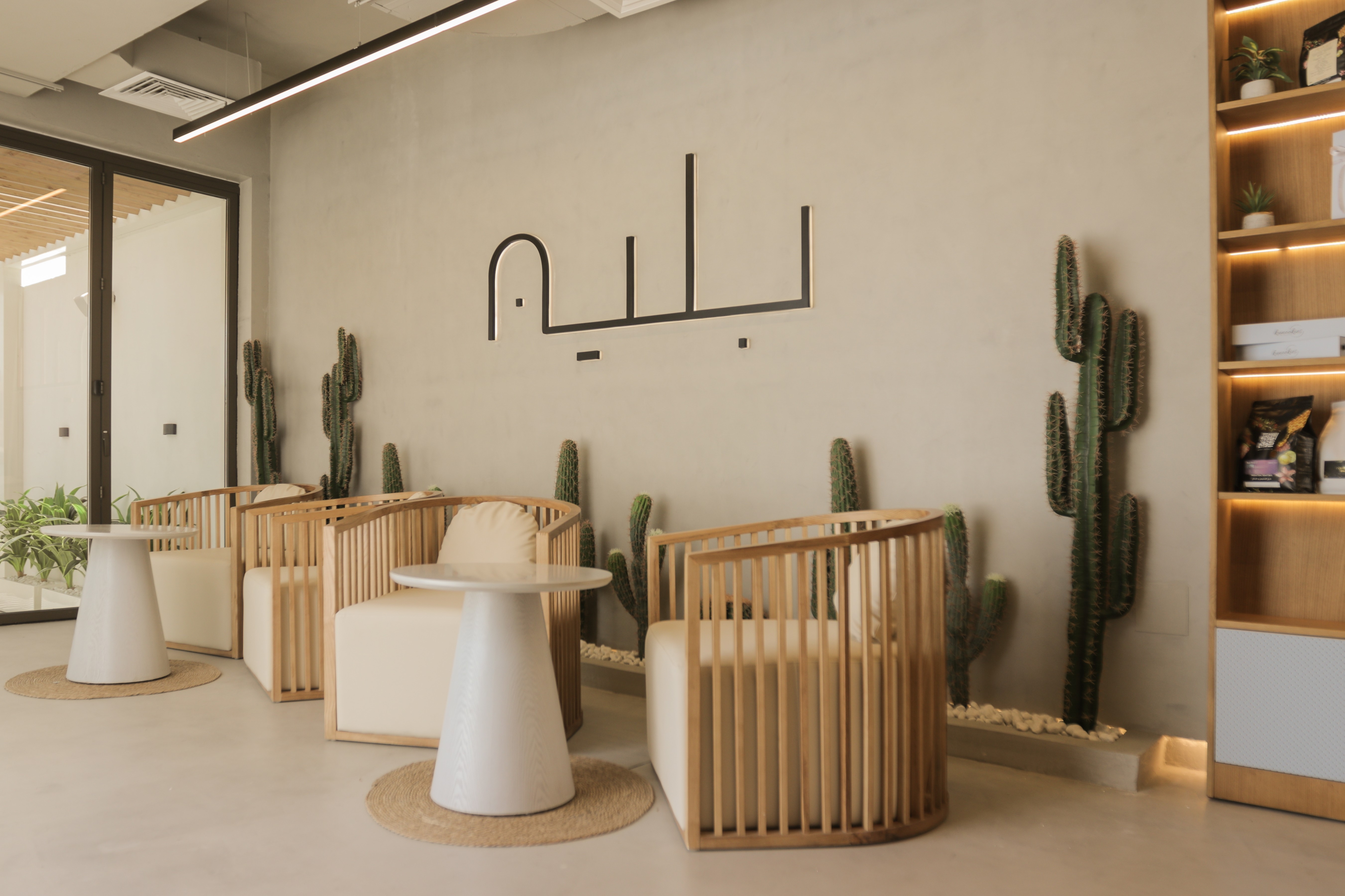 Originally a villa; Plain Dessert now embraces a minimalist design philosophy with a light colour palette that creates an airy and inviting atmosphere with a sense of tranquillity. The team of designers have carefully selected materials with warm wood and micro cement finishes. Micro cement is used extensively throughout the café, encompassing the internal and external floors, ceilings, and walls. The material uniformity creates a seamless visual flow adding a touch of modern sophistication to one of the newest dining destinations in Jumeirah.