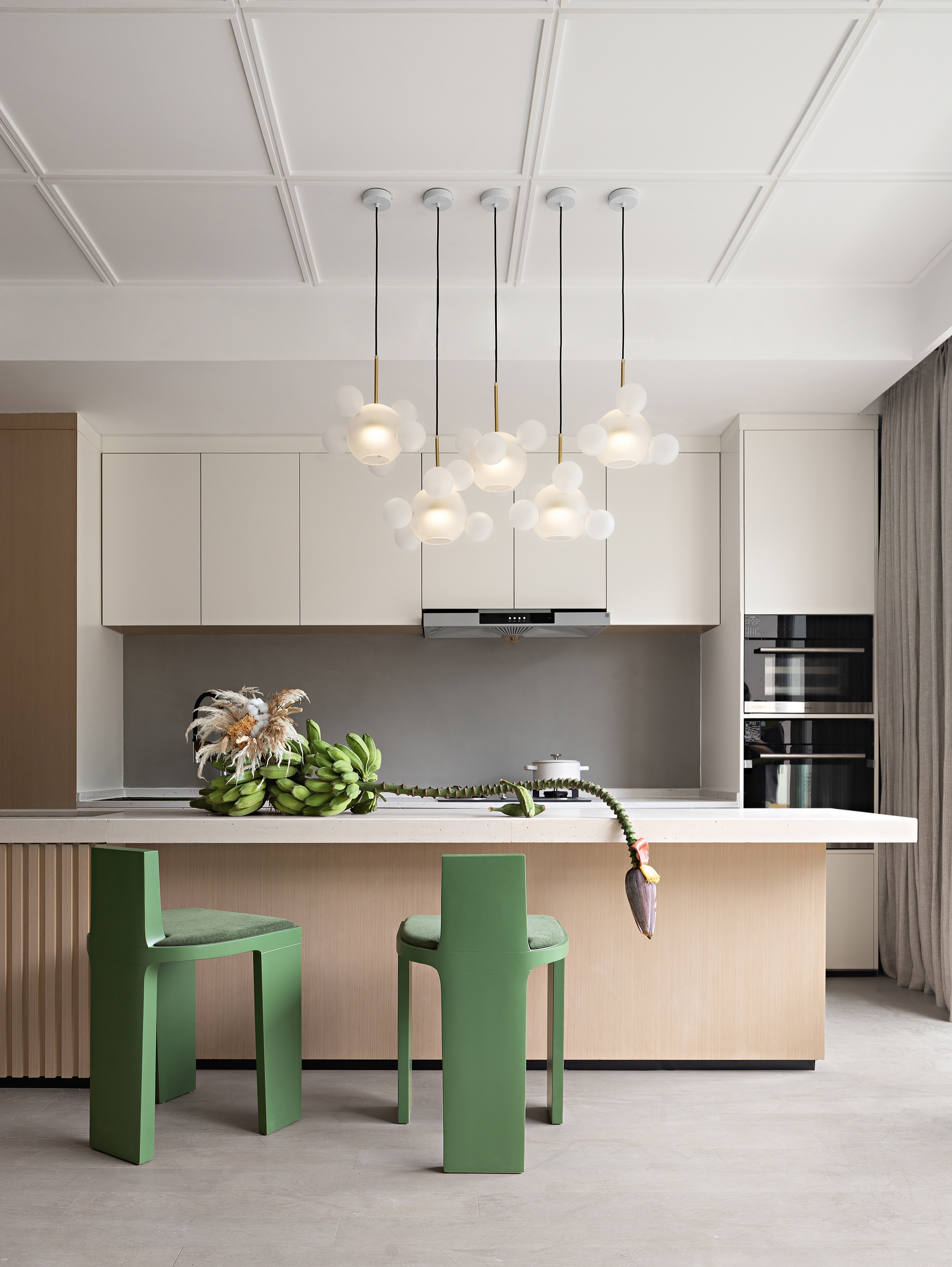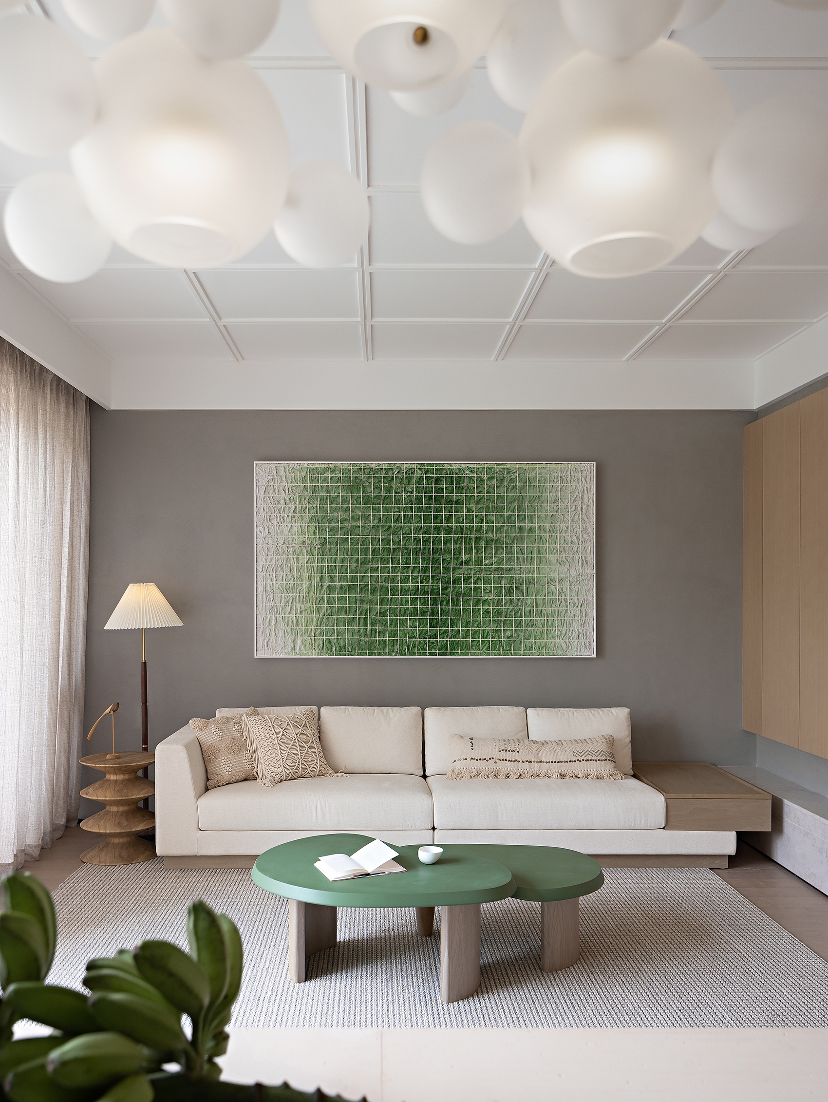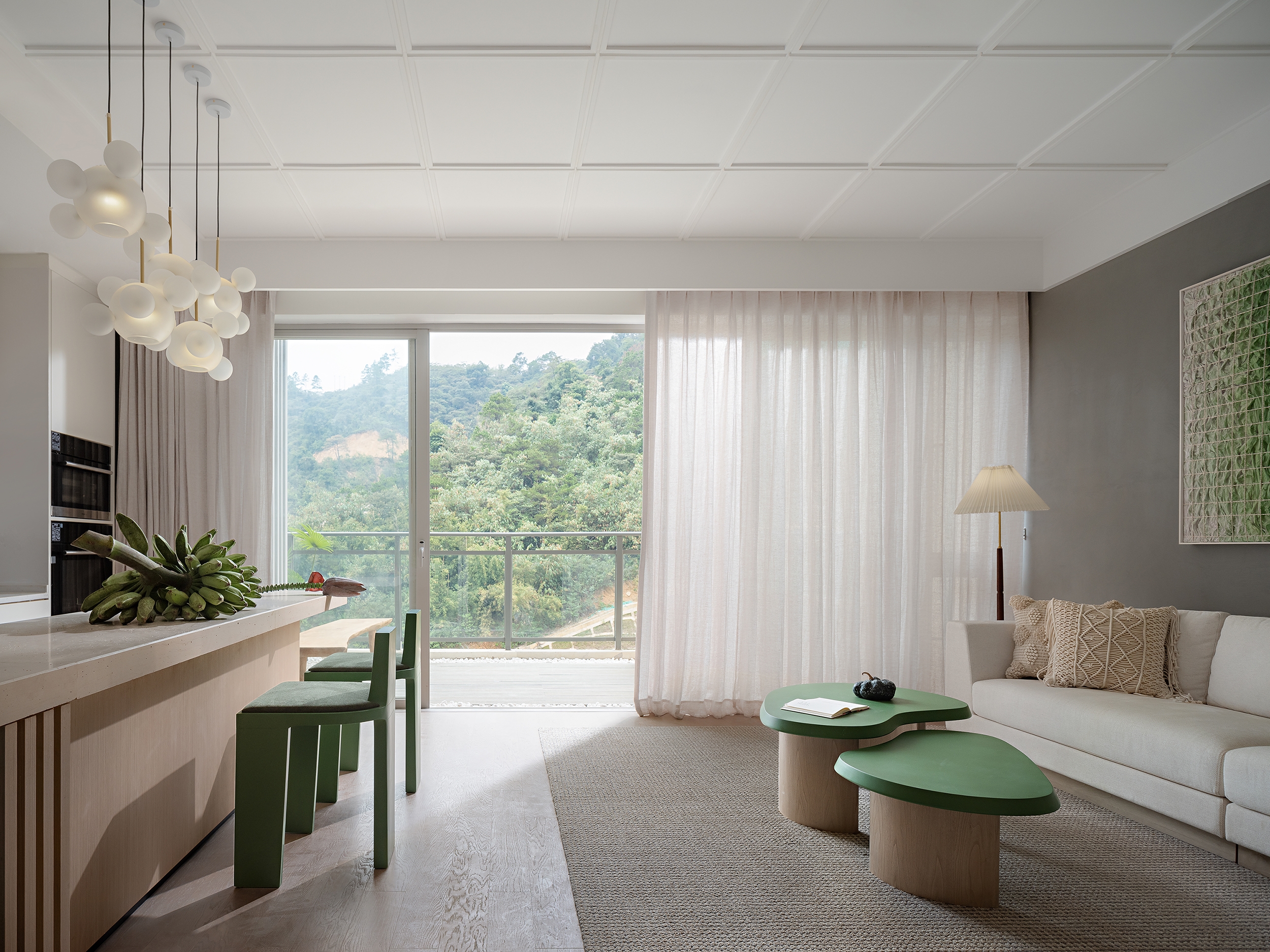 So, to add a dynamic life force to daily living, a tinge of green is introduced. People may roam in the stream or forest, intoxicated by the pure air, with the warm wood art and the fresh flora.