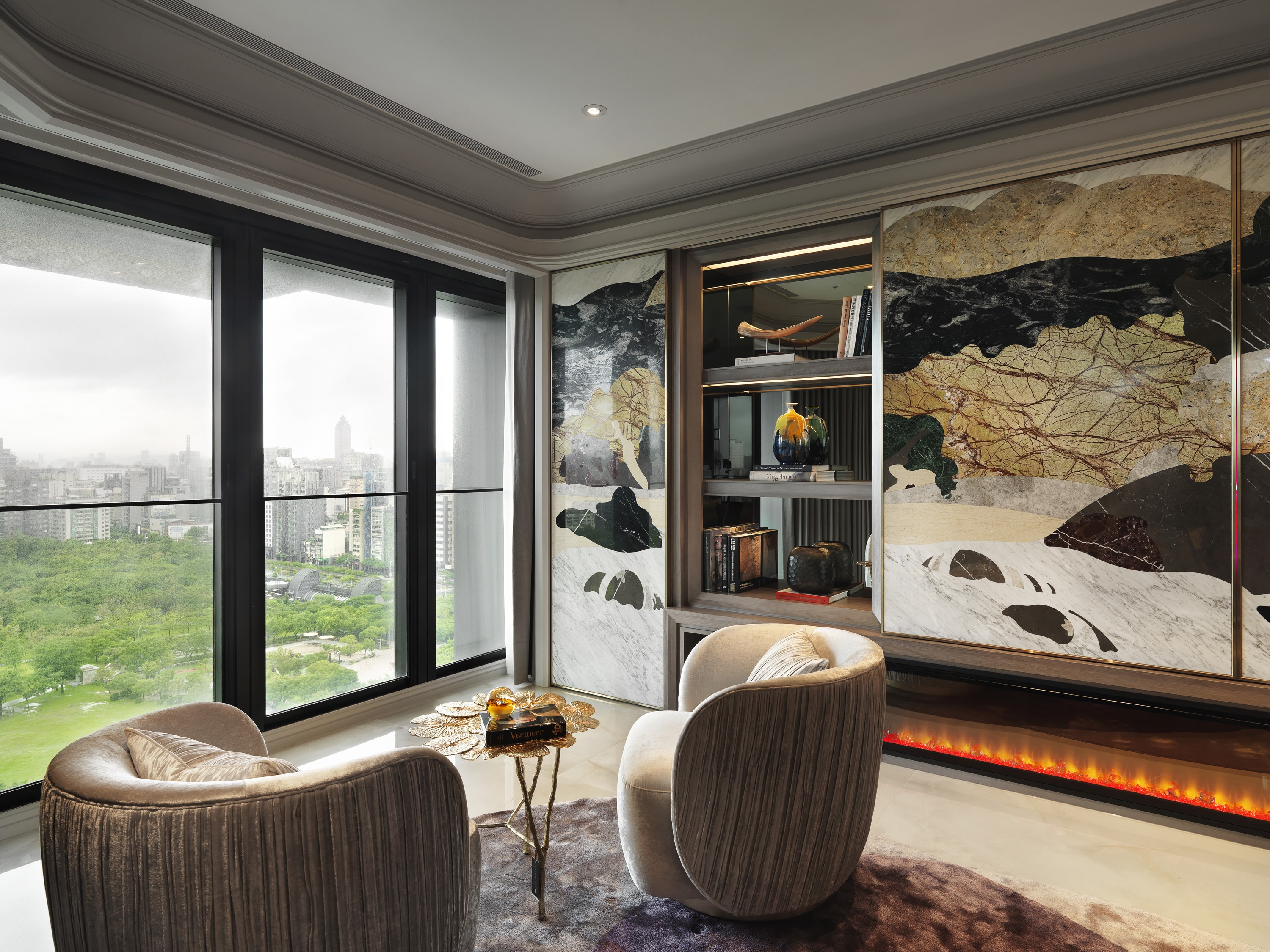 Influenced by natural beauty and Art Nouveau style, the design synthesizes pragmatism and diverse aesthetics. It crafts a luxurious milieu that fuses humanistic art and natural elements, creating an aesthetically pleasing art scene with a harmonious interplay of colors and layered materials.