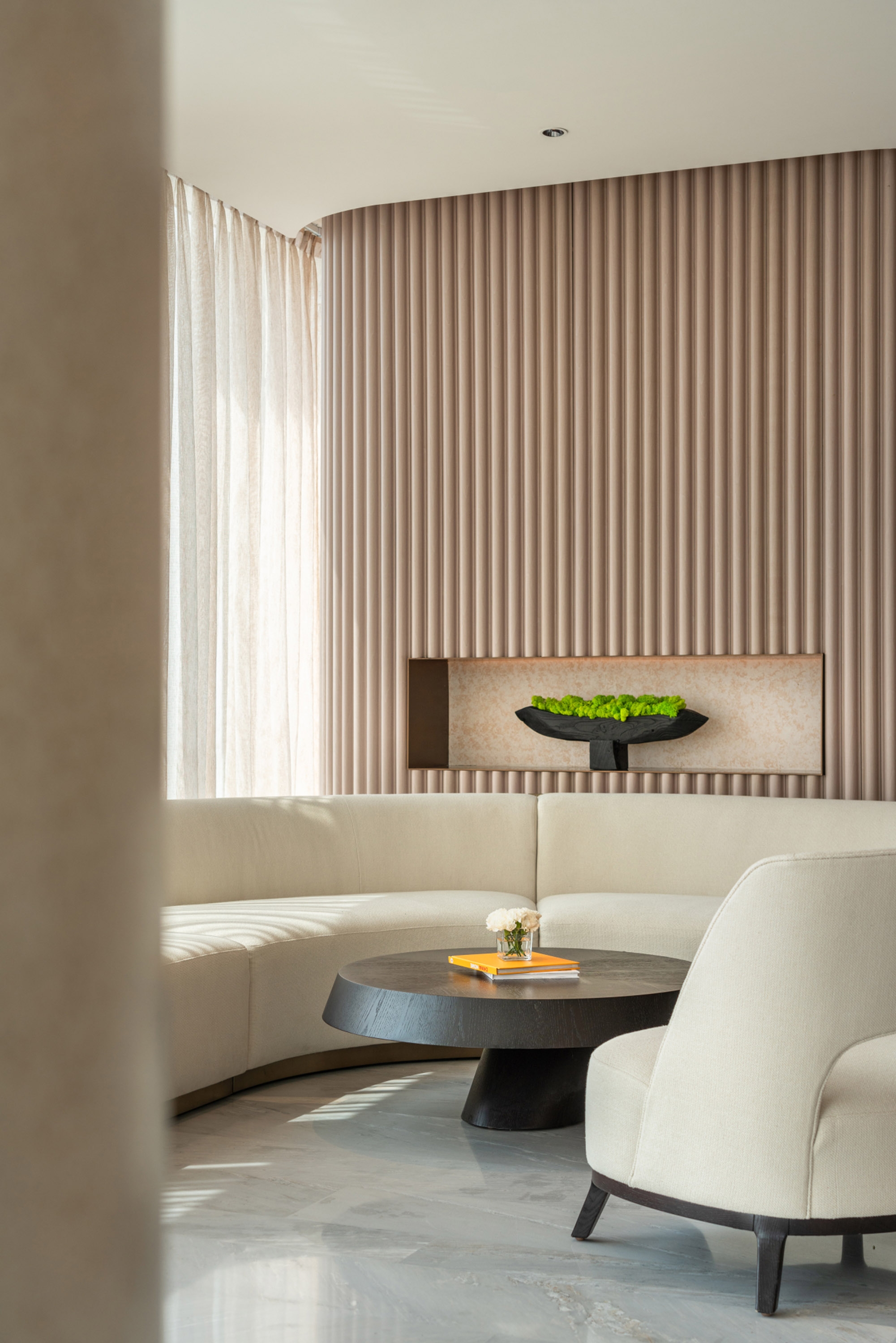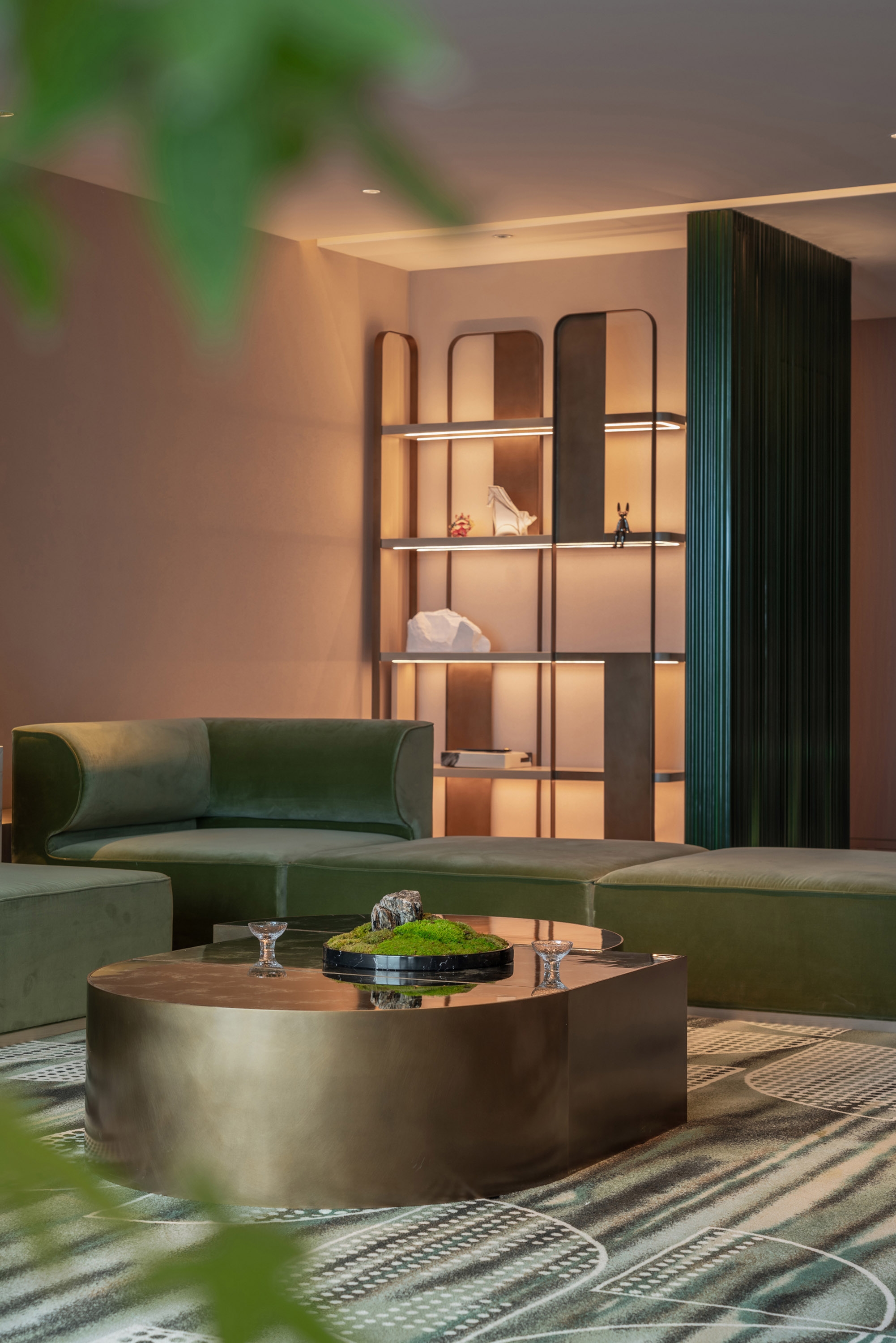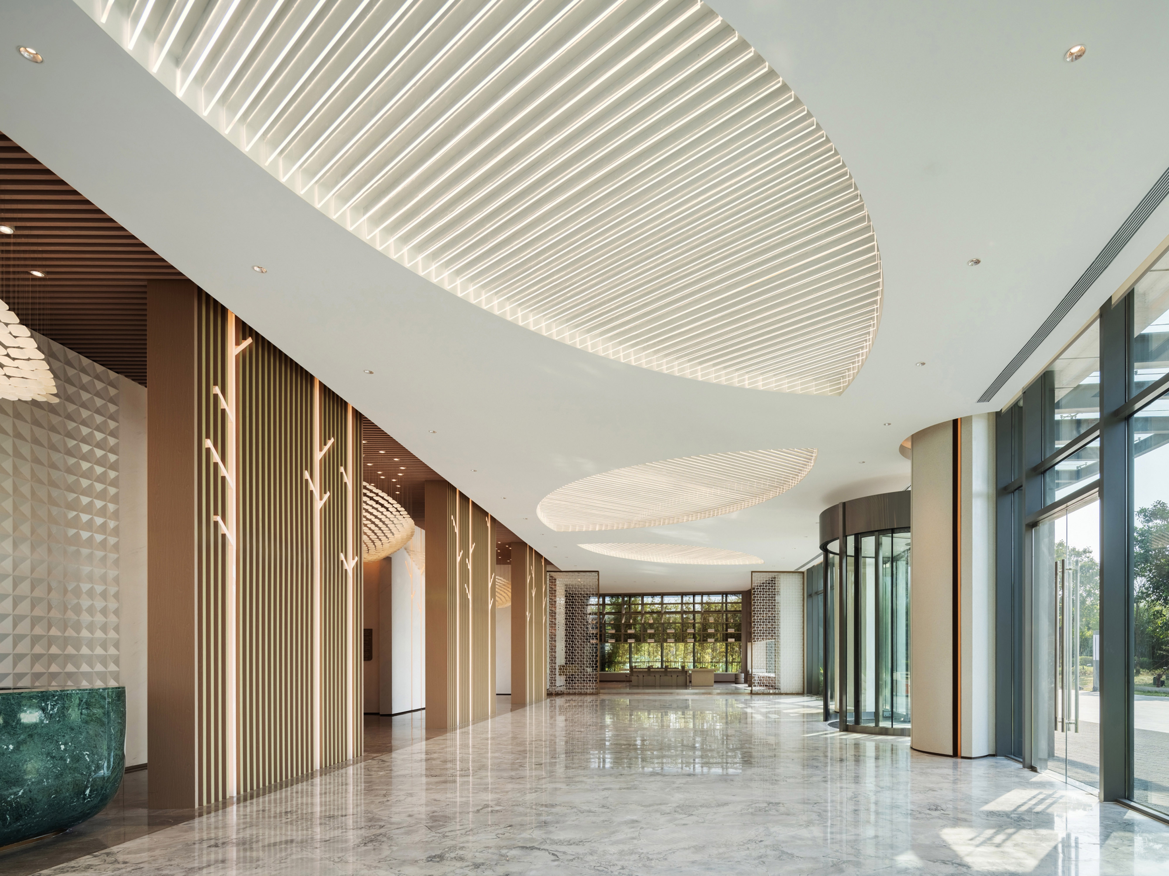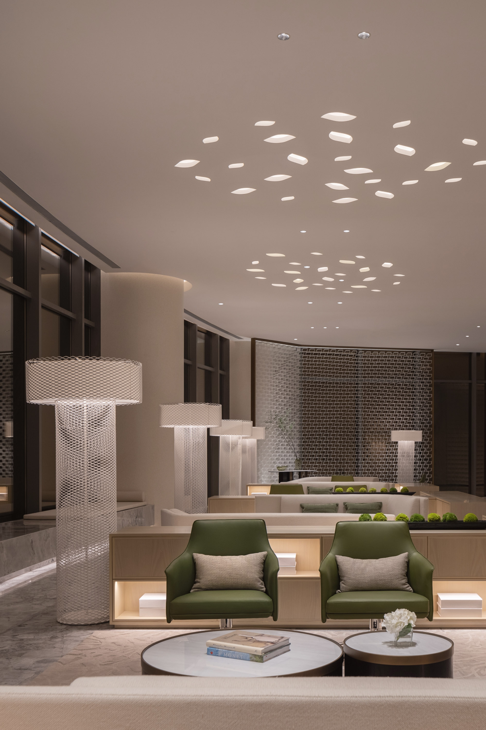 In order to experience the natural scenery indoors and to develop a story sequence around the 3 Trees corporate culture of "Taoism and Nature", designer had several rounds of discussions with the client's design team to apply the natural themes of water, wood, earth, light and leaves to different space designs, echoing the spirit of the tree born of nature. 80% of the products used in the design are 3 Trees products, and the application of environmentally friendly materials makes the project ready for occupancy immediately after decoration. The walls are made of 3 Trees's characteristic art texture paint, faux stone paint, faux metal paint, high-end art paint and faux glaze paint, and the wood finish and flooring are made of 3 Trees Science and Technology Board. With high-end and fashionable materials such as imported stone, white copper, Plexiglas and glass tiles, the application of sustainable design is realized by replacing traditional materials with high-tech materials, inheriting the green gene of 3 Trees enterprise in this project and creating beautiful life concept with technology.