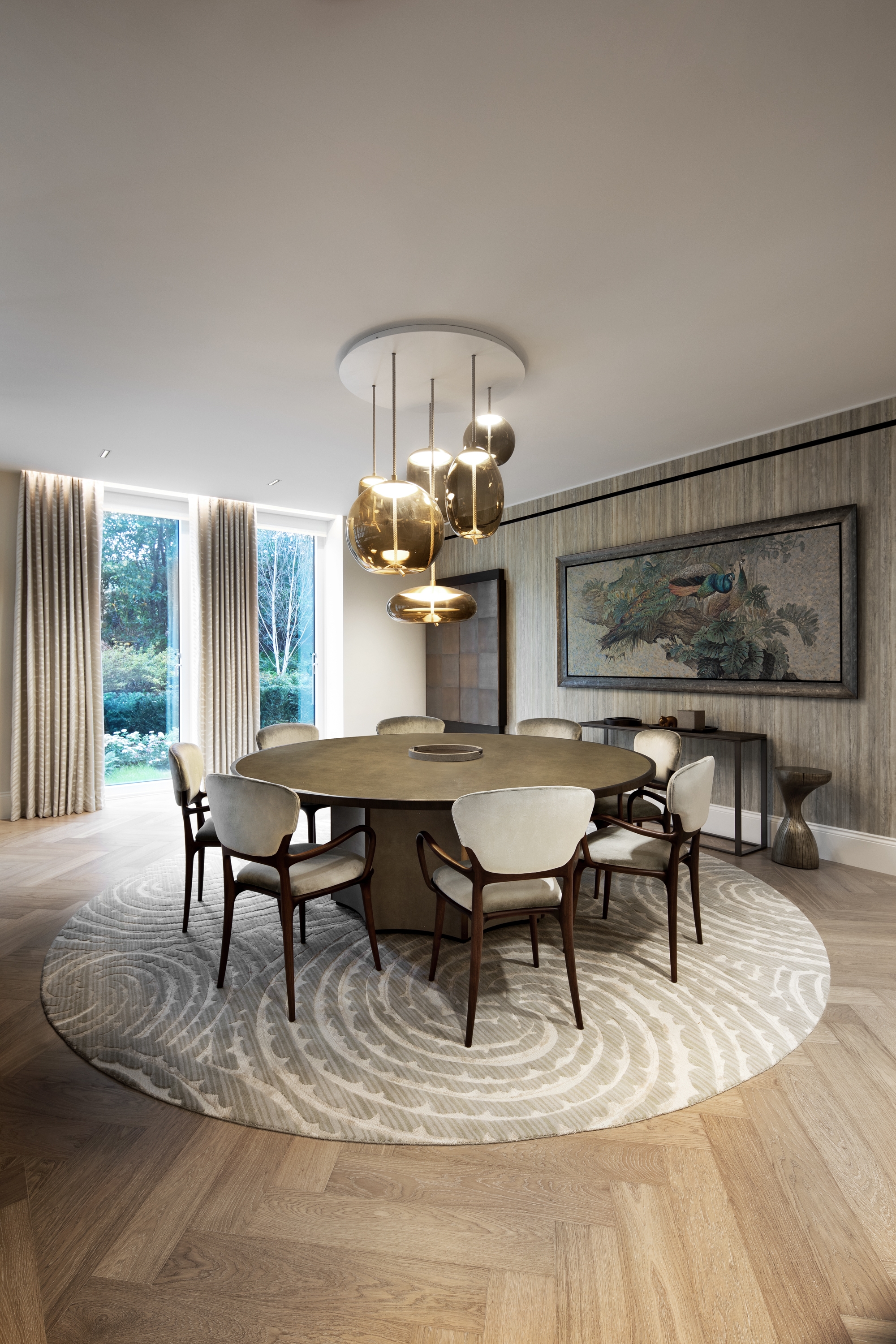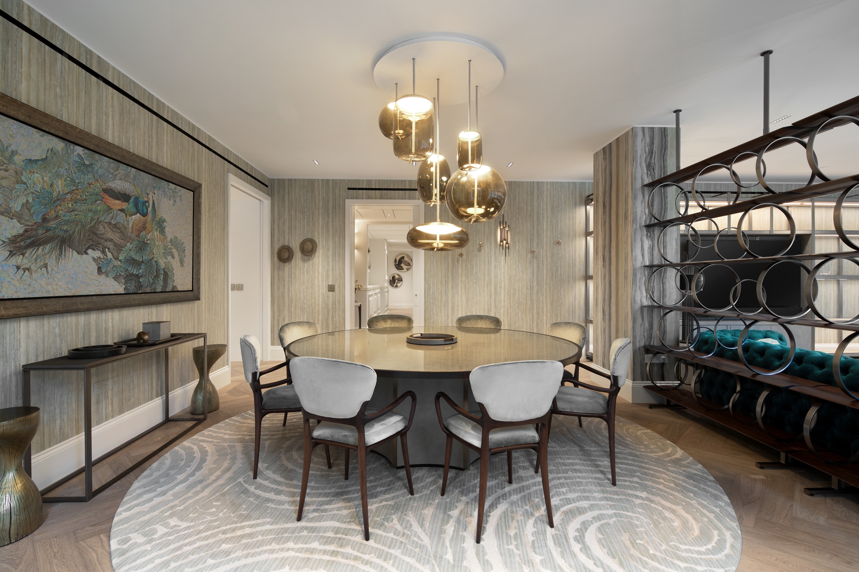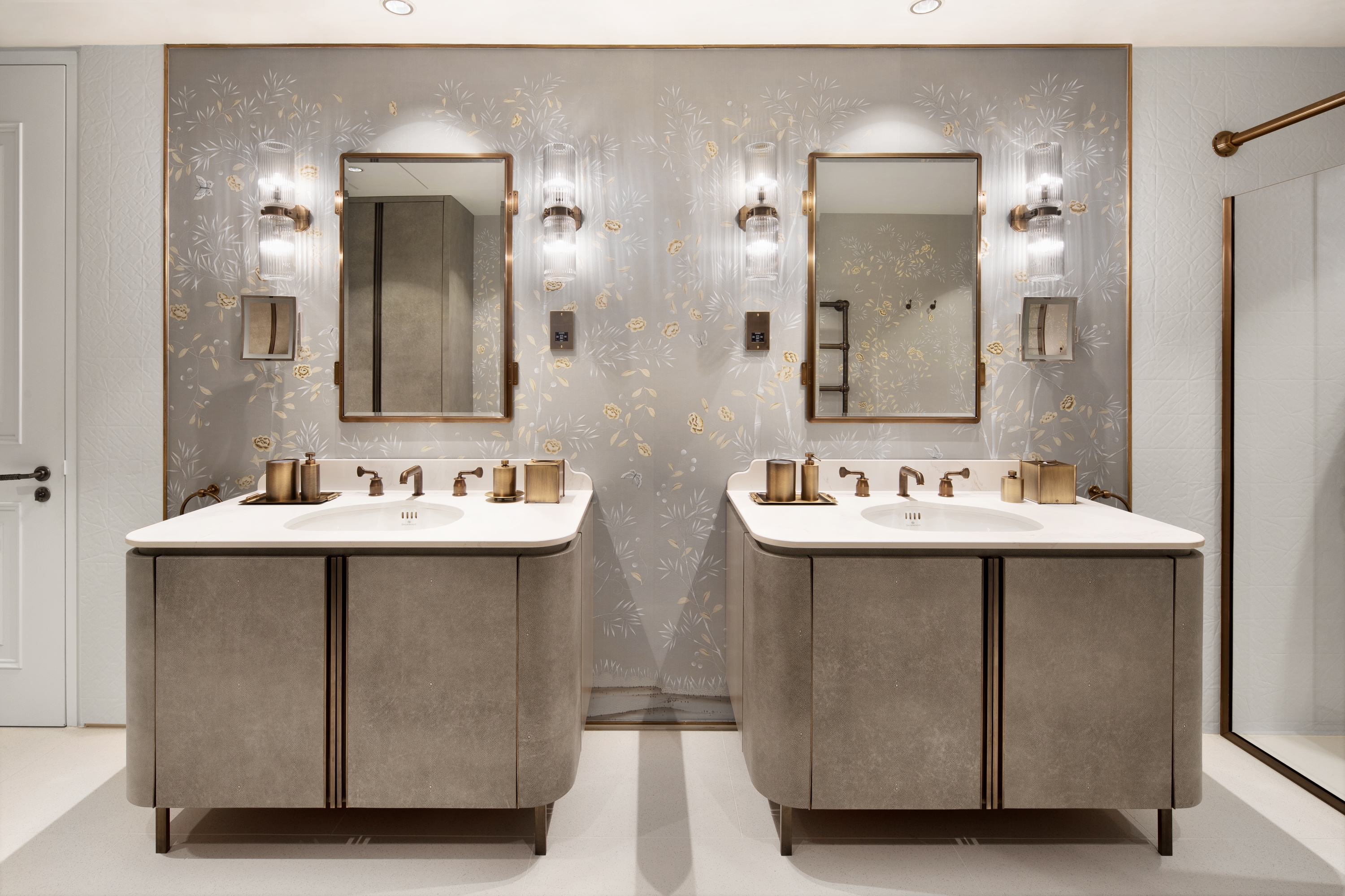 The implementation and combination of multiple textures, accents of nature are balanced with characteristic of each material that maintains a luxury resort feel. In addition, Bespoke items, handcrafted wallpapers and classic bronze hardware are paired together to create a unique signature style.