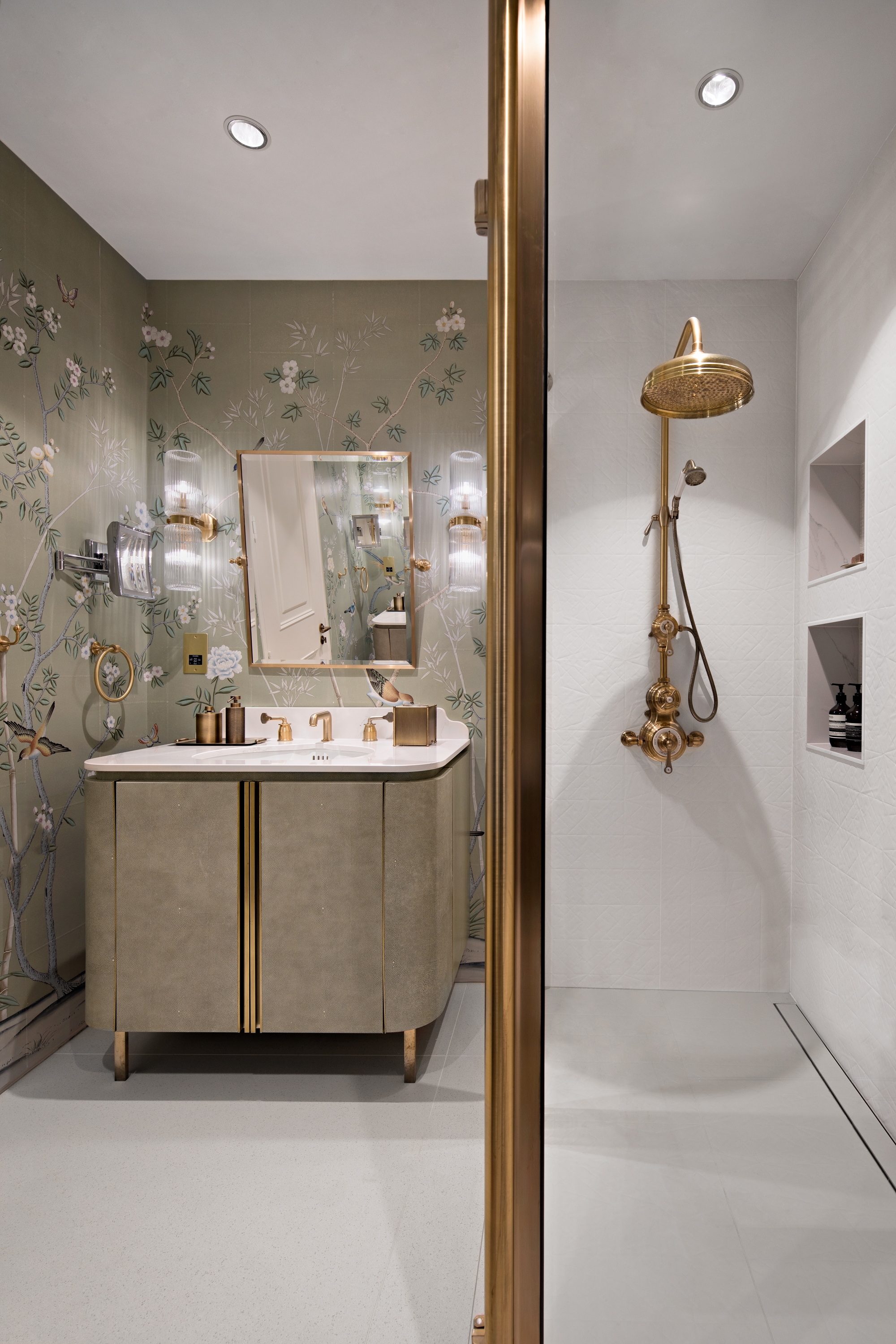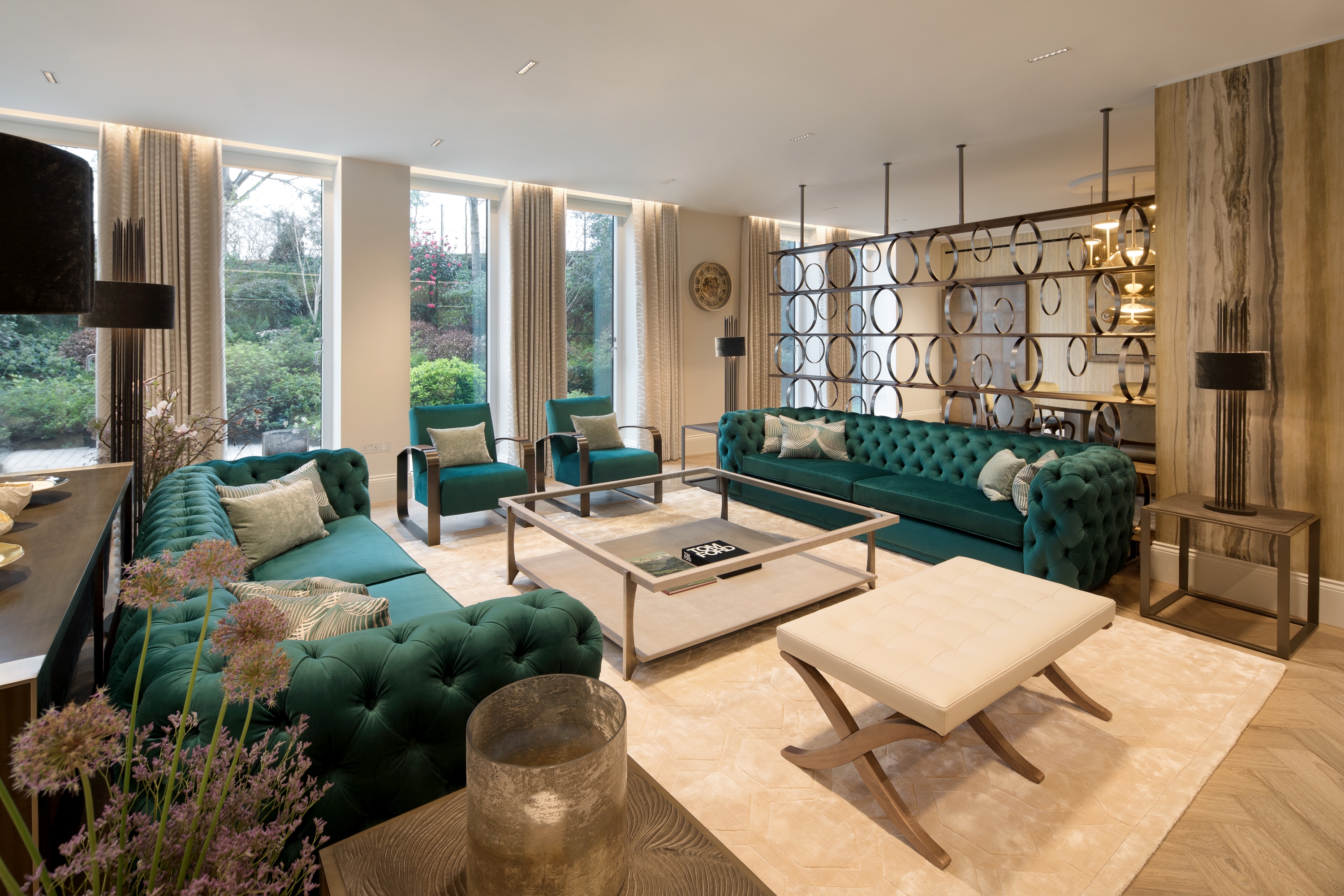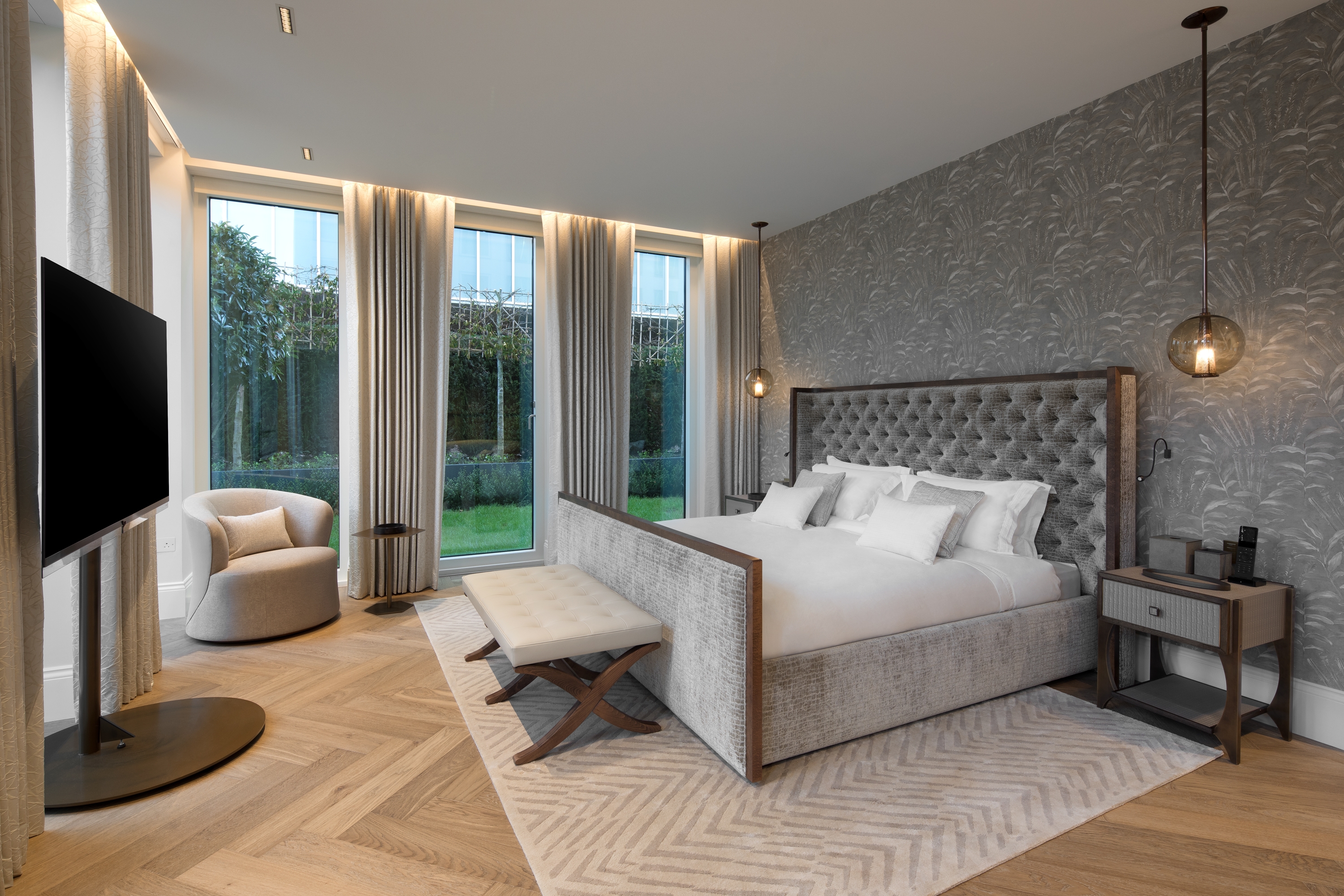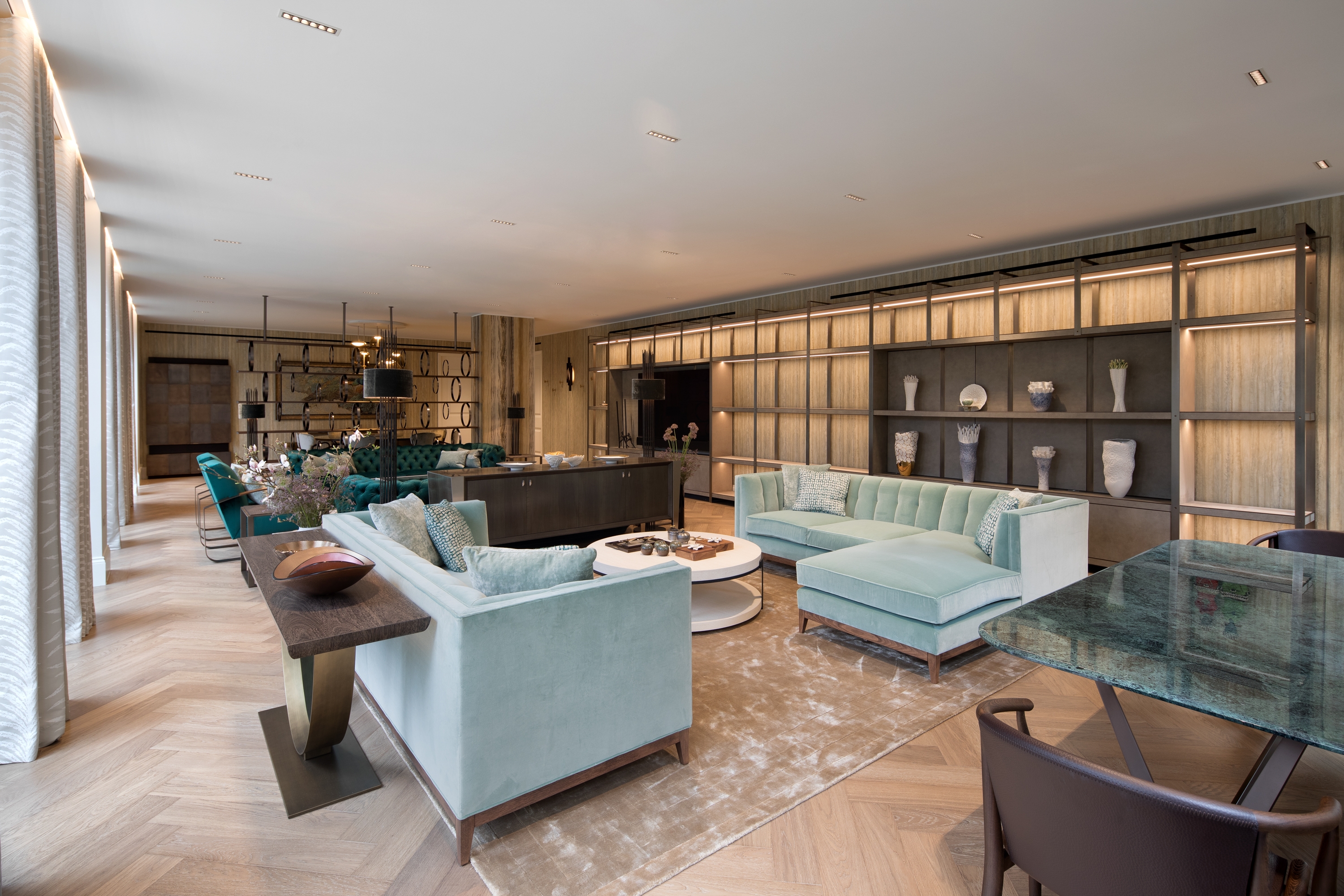 The implementation and combination of multiple textures, accents of nature are balanced with characteristic of each material that maintains a luxury resort feel. In addition, Bespoke items, handcrafted wallpapers and classic bronze hardware are paired together to create a unique signature style.