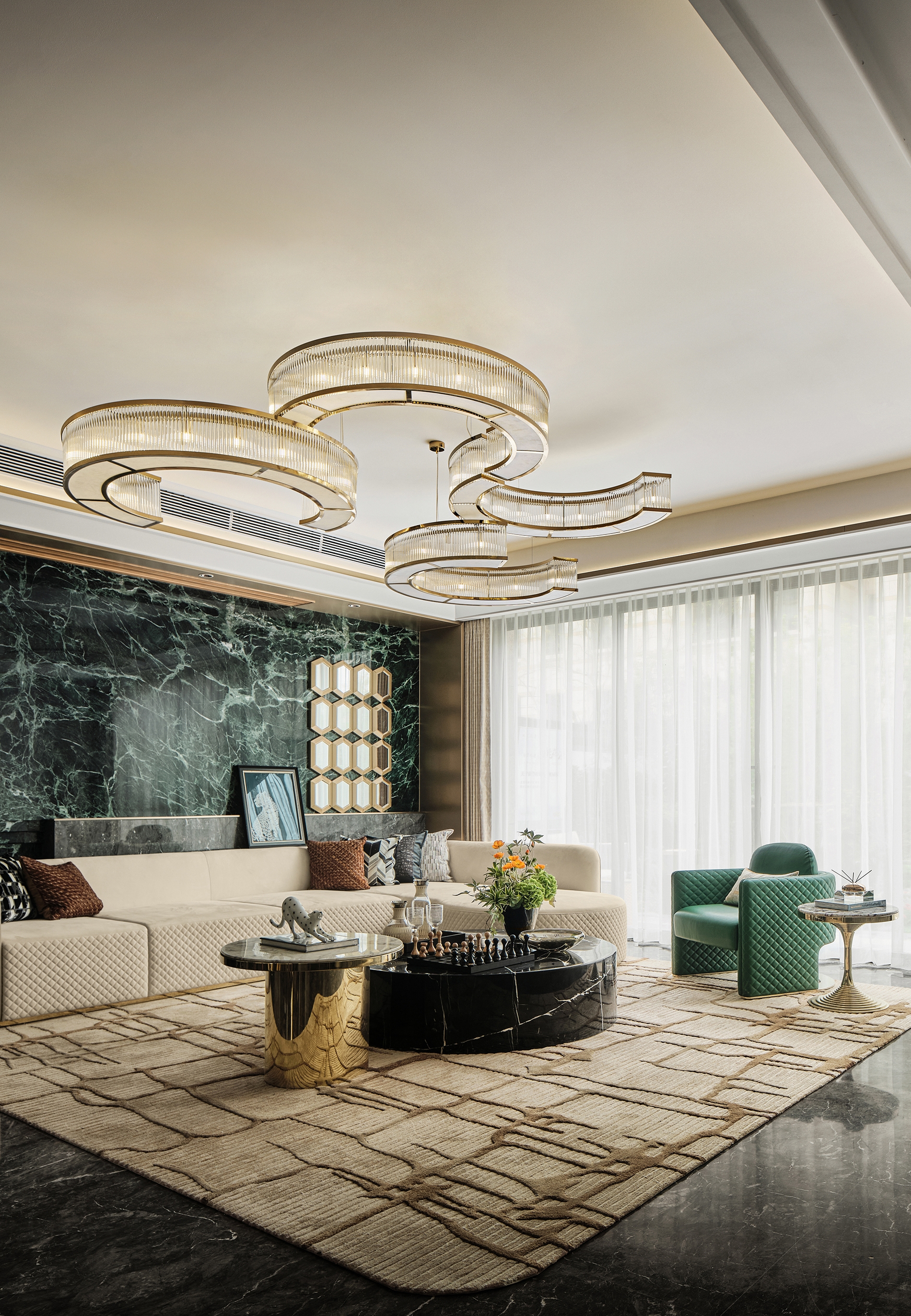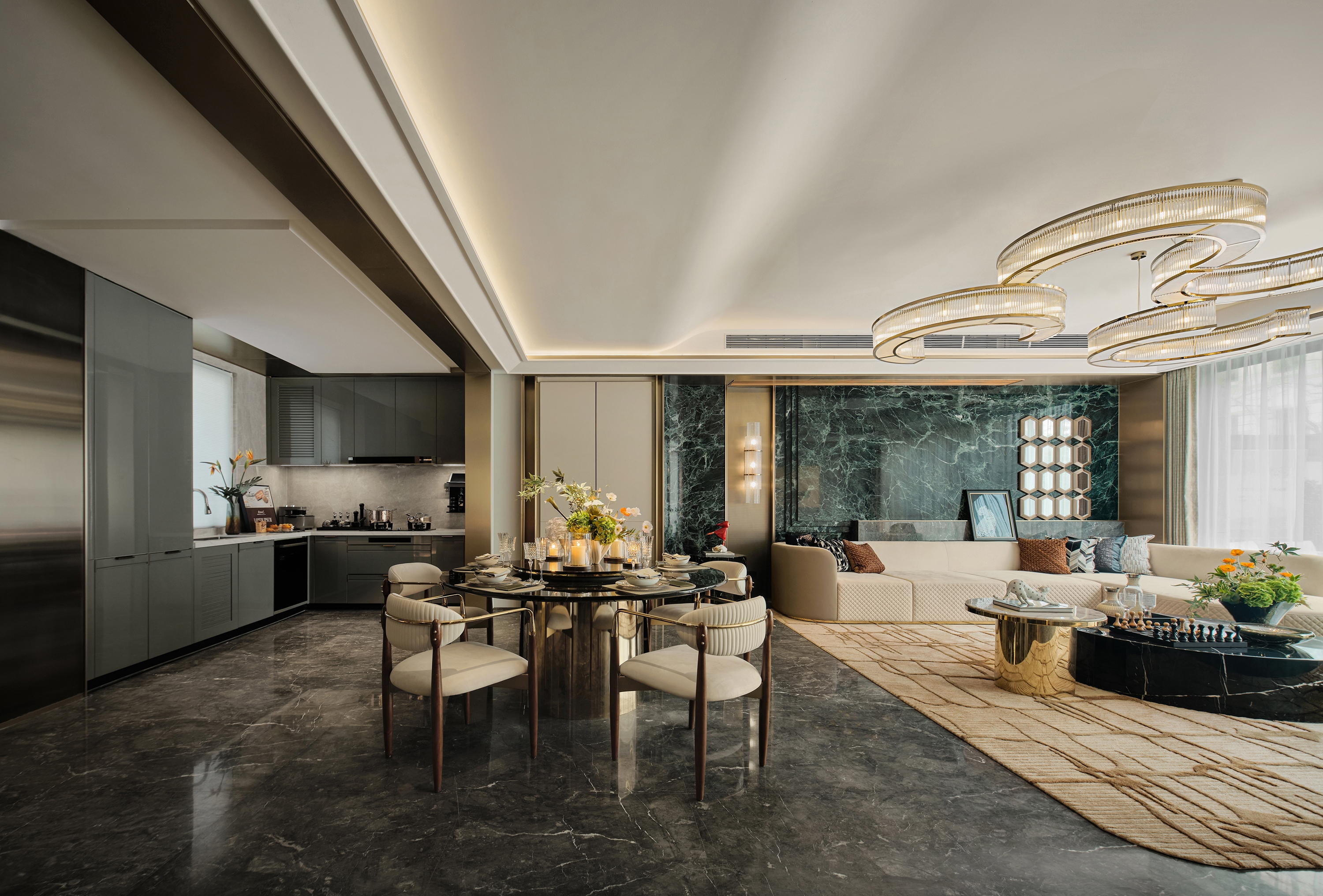 With the goal to create a space that is both functionally convenient and aesthetically pleasing, the designers blend eastern aesthetics with modern and western elements, and use luxurious materials to give residents a noble feel.
