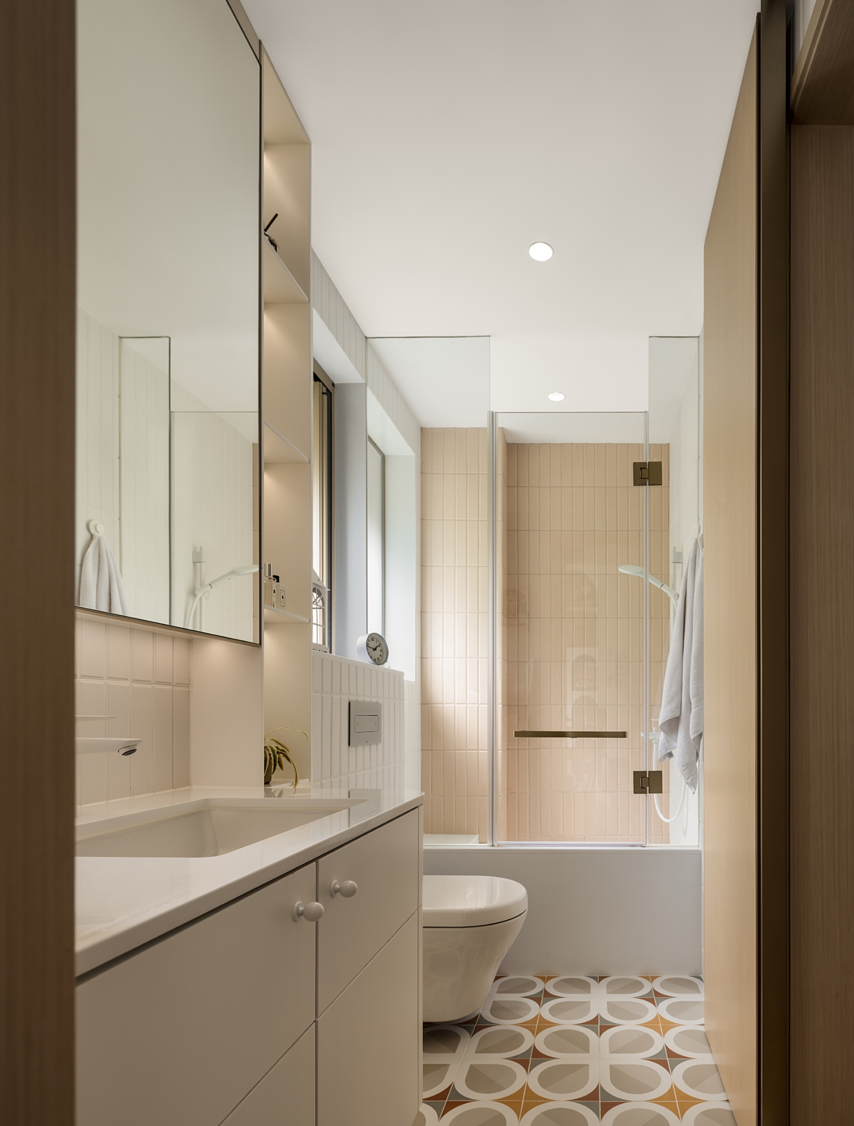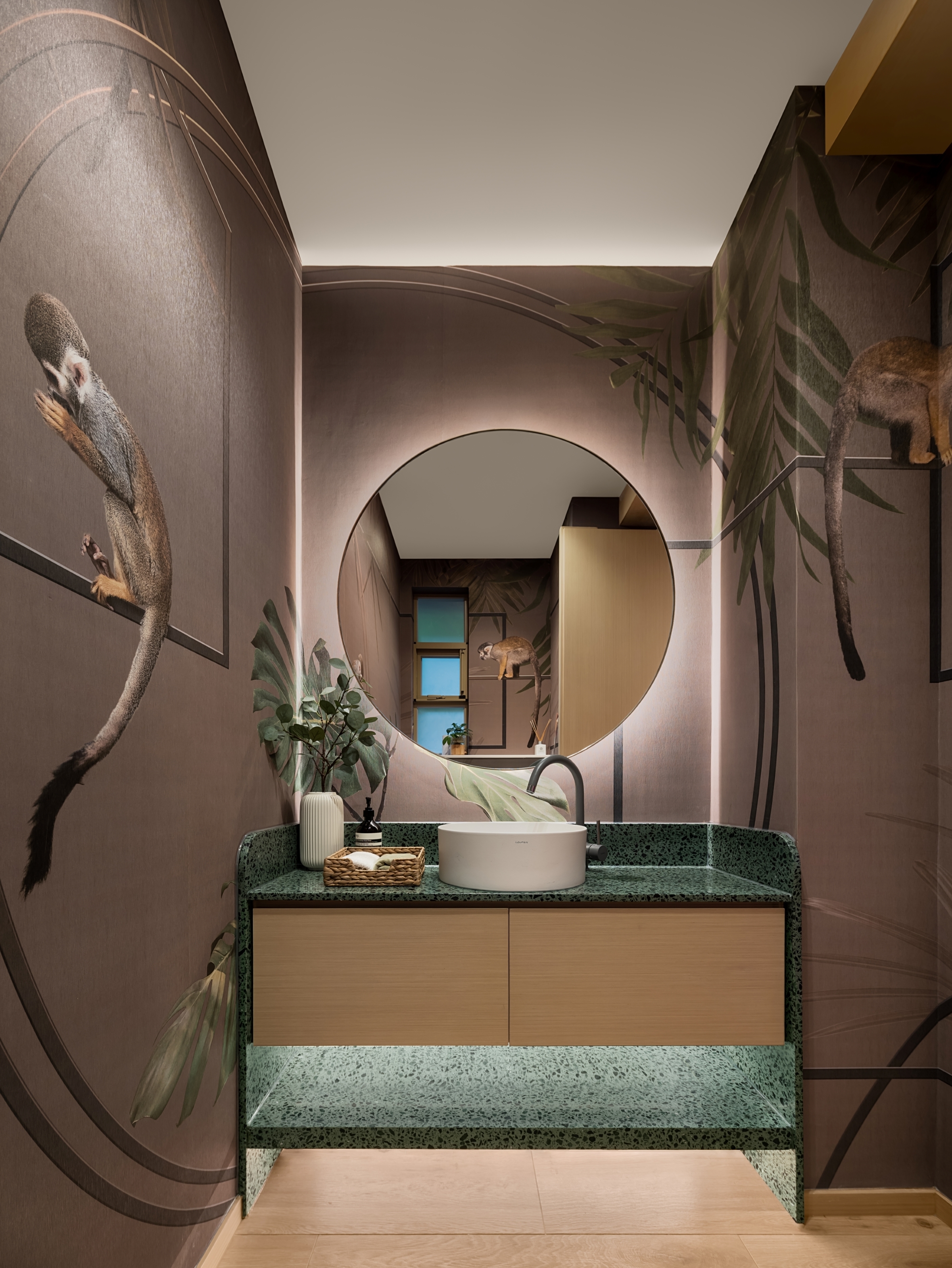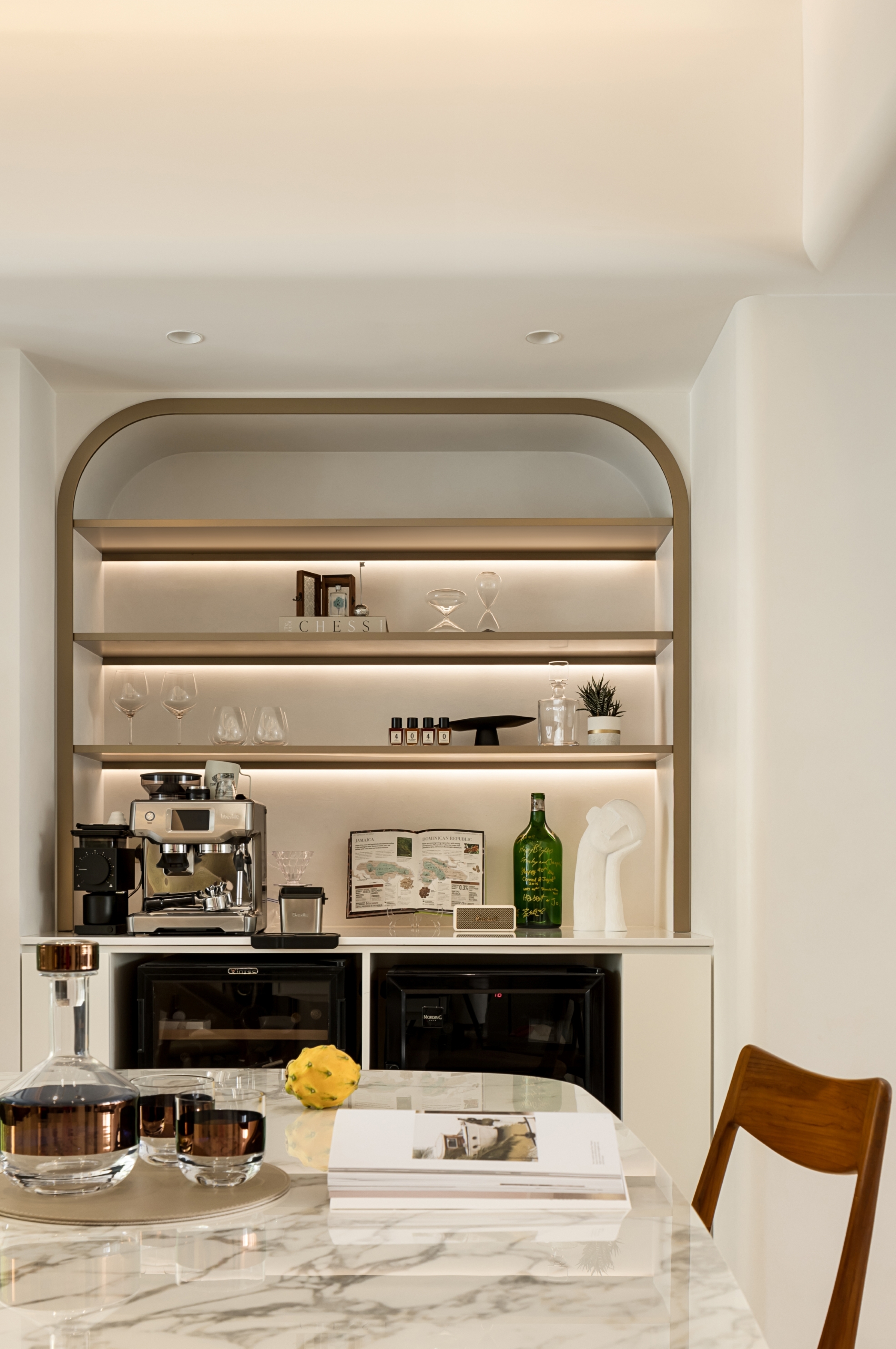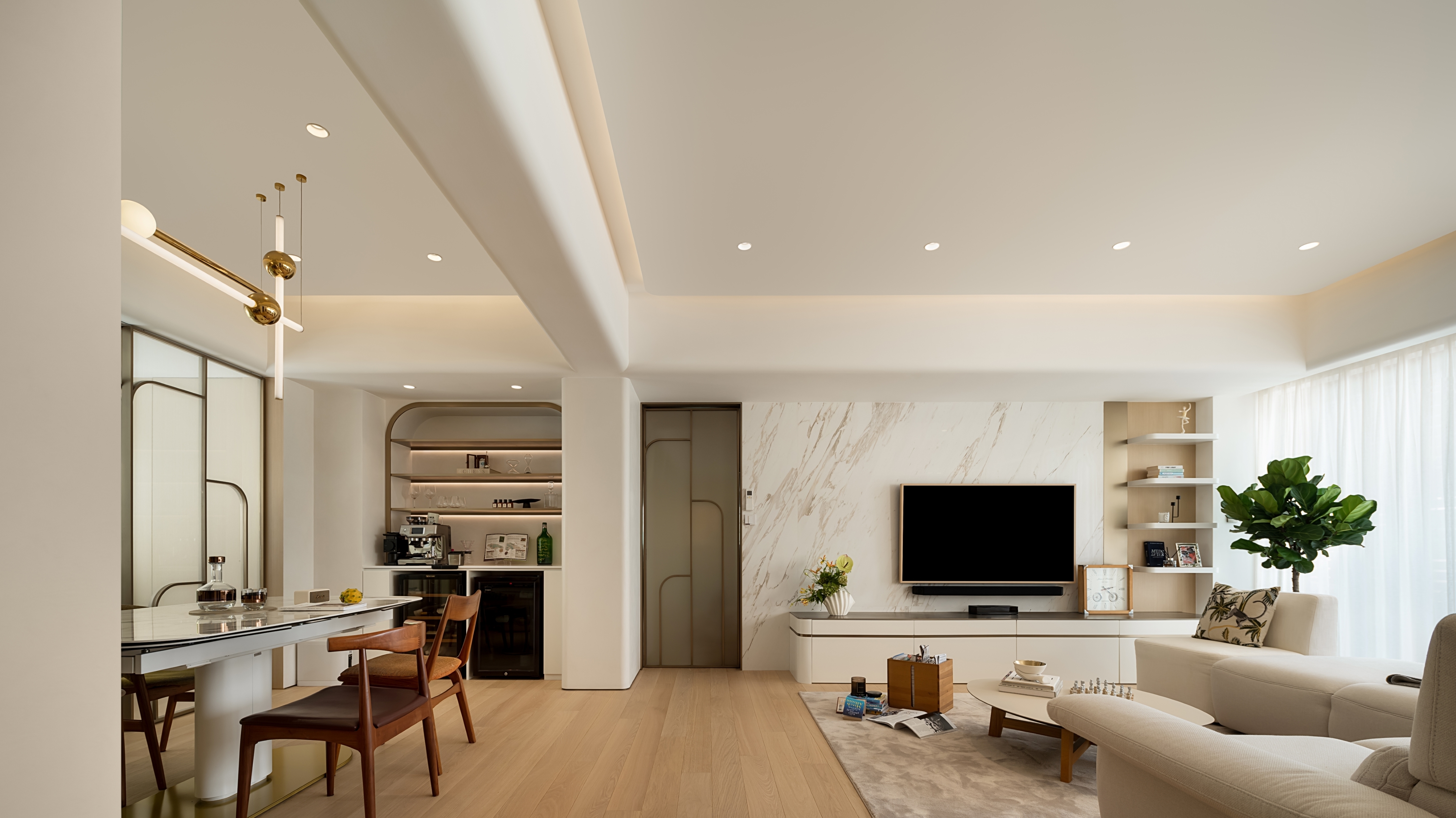 This residential project blends earthy tones, calming ambiance, and rounded silhouettes to create a peaceful living space amidst the urban landscape. The color palette is inspired by nature, with shades of beige, soft greys grounded by oaks and accented with muted blush and amber. The statement silhouettes and botanical wallpaper accentuates the owners’ taste in their abode, while also being durable and children-friendly. We create a calming atmosphere through the seamless flow between rooms, the rounded shapes in furniture, panels and space also soften rigid lines of this restful sanctuary.