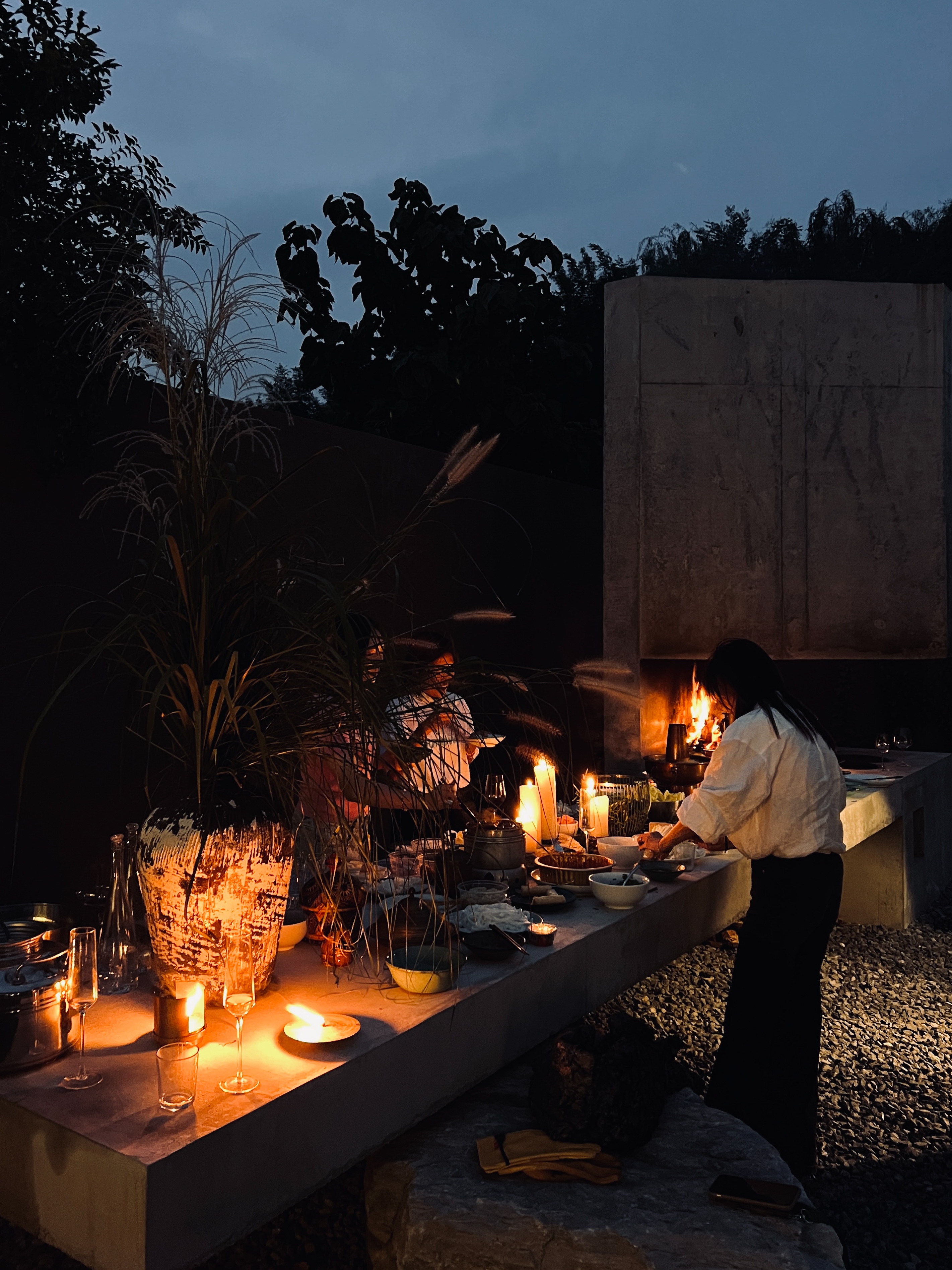 Located on the grounds of a private house 35 km northeast of Beijing's city center in the district of Shunyi, the architects added an open-fire kitchen to a backyard. "We wanted to create a place for fire, where people gather and cook."