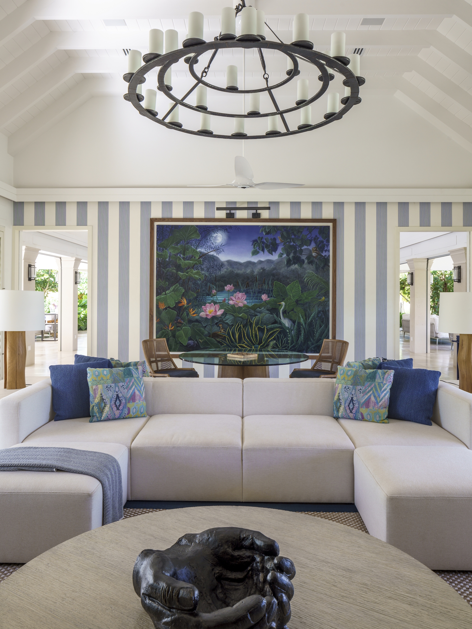 The interior design of this private estate has an inclination toward the local and regional influence of artwork, oceanic and environmental stories, and other natural and organic inspiration. Blurring the lines between interior and exterior living gives the home a sense of place. The firm captured the essence of island living in this idyllic location while collecting every luxury and creature comfort to suit the wishes and requirements for this family home and rental property.