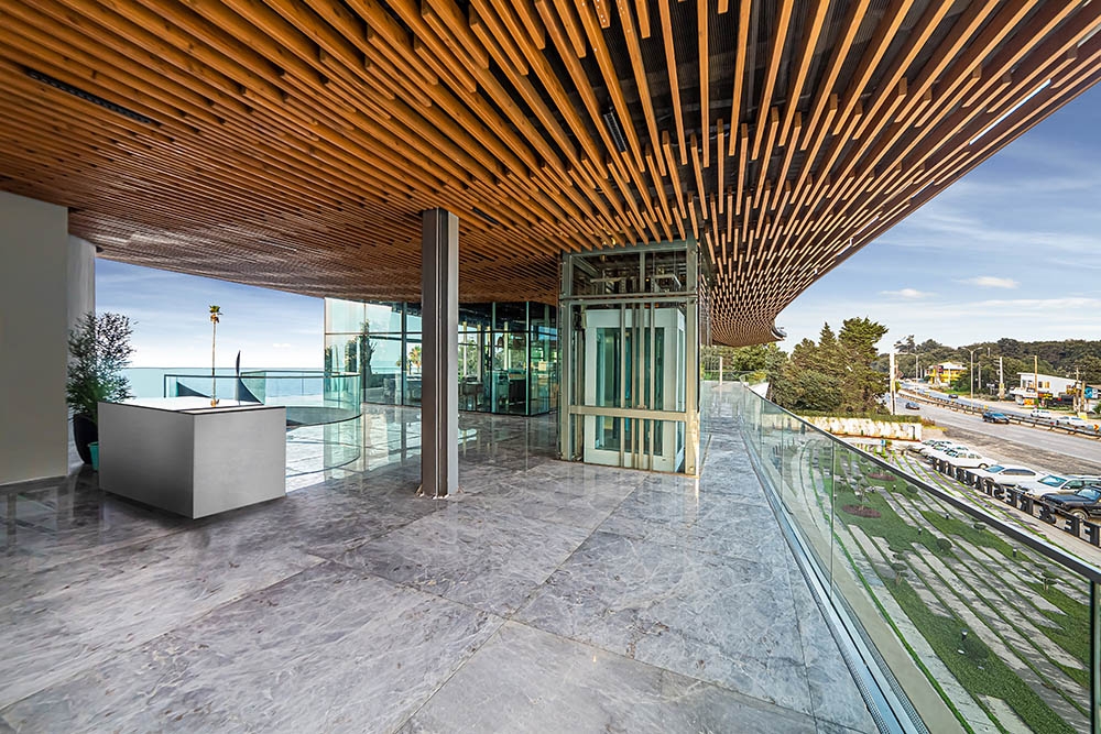 Construction was only possible on 15% of the southern land due to the sea and road boundaries. This constrained the building's occupation possibilities, limiting the building's freedom in defining its footprint on the site.